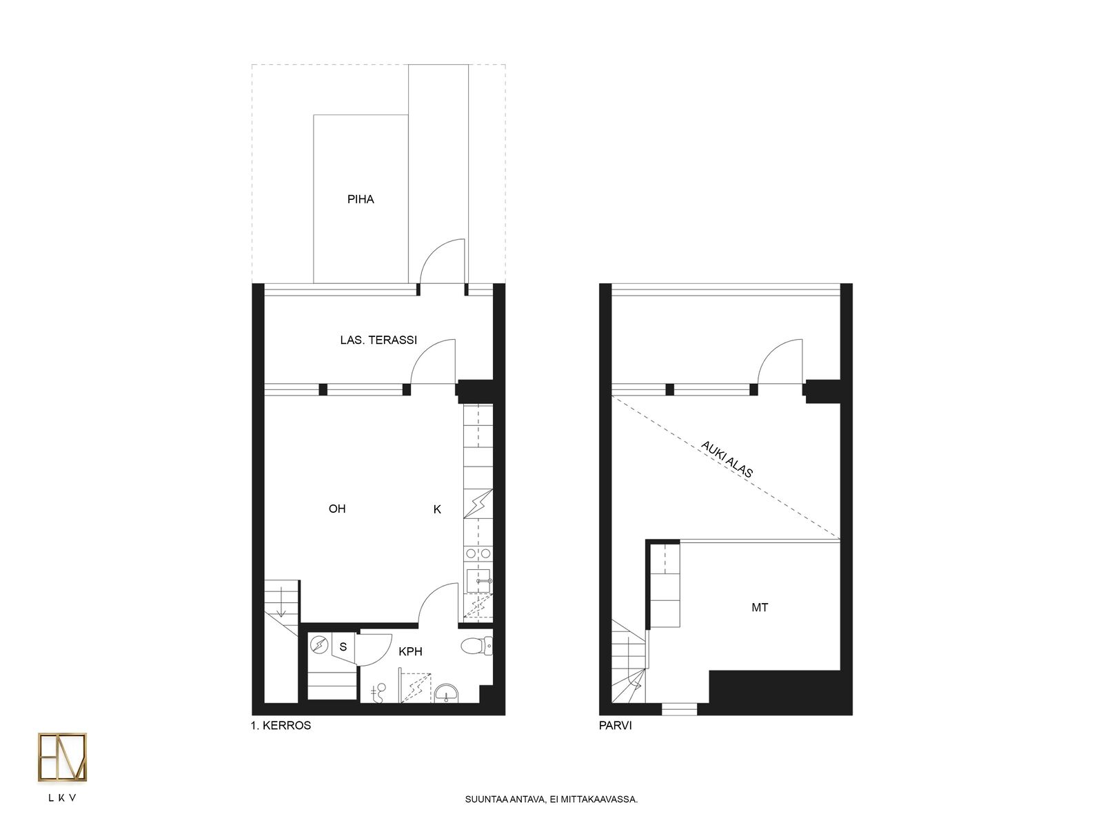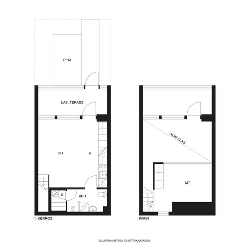 1 h, parvi, k, kph/wc, s, lasit. teras., piha, 27,50 m²