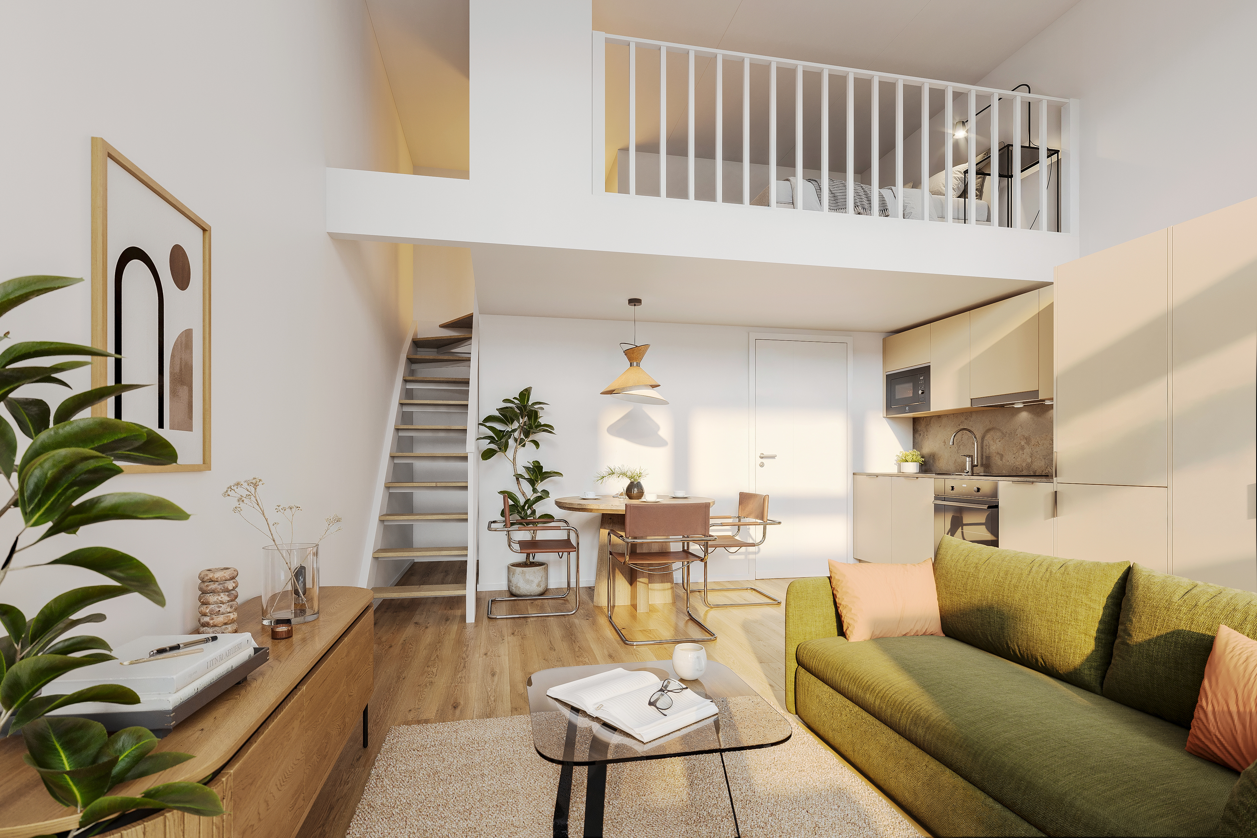 Asuintilan lisäksi asunnolle kuuluu parvi. Asunnolla on myös oma lasitettu terassi ja piha-alue. Keittiössä tarvittavat kodinkoneet. Varustelutason kruunaa tyylikkään kylpyhuoneen lisäksi oma sauna.