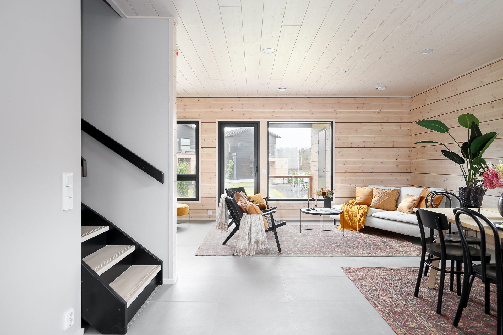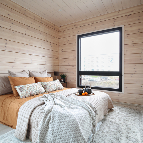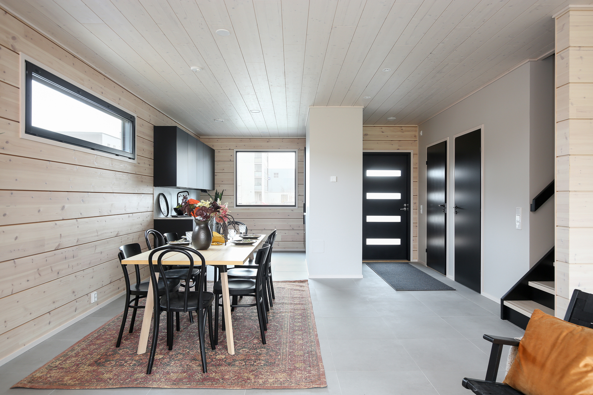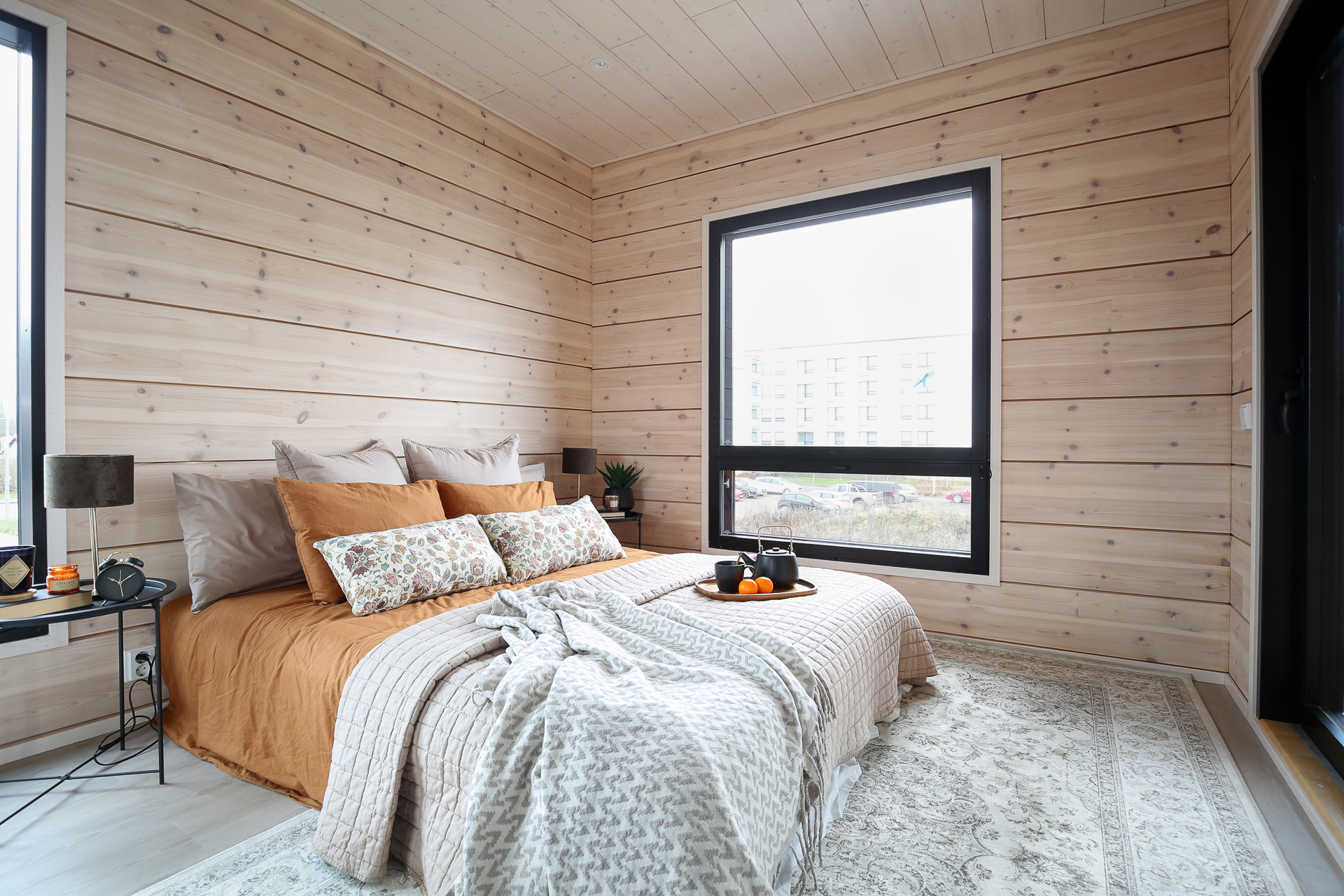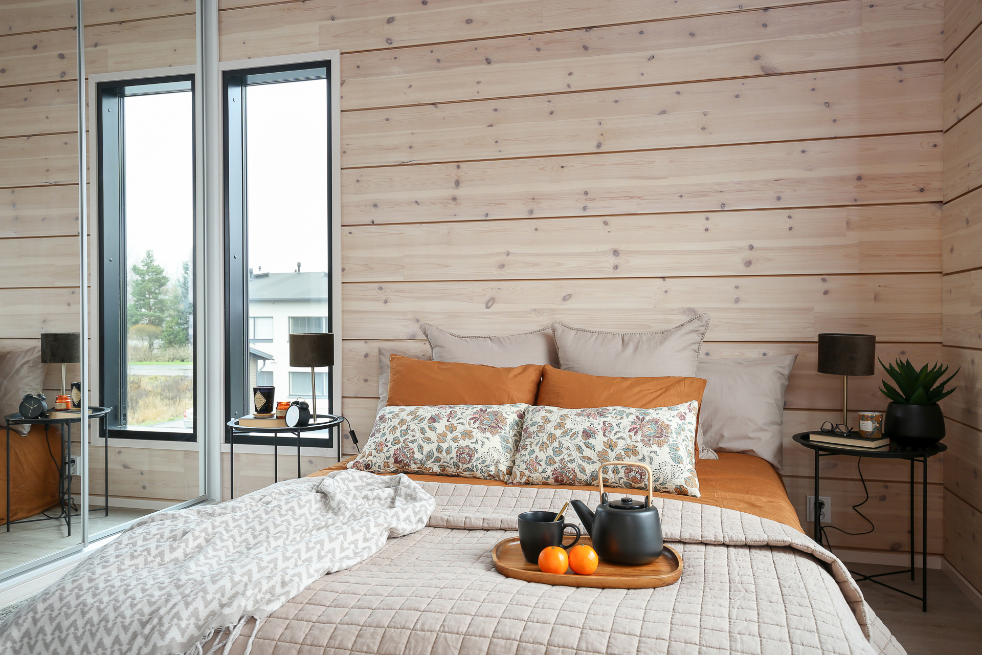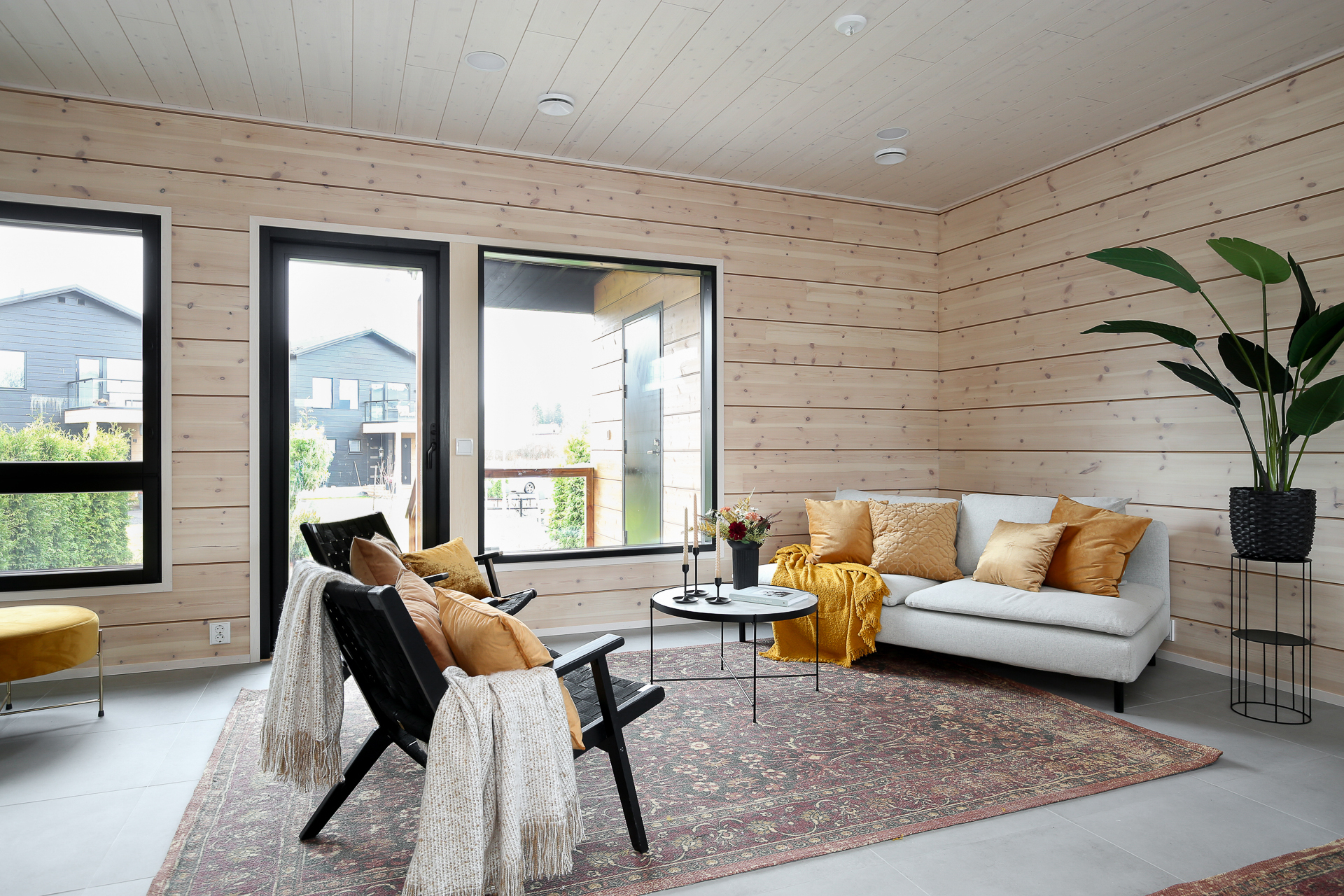 Seinät: Hirsiseinä/puupaneeli