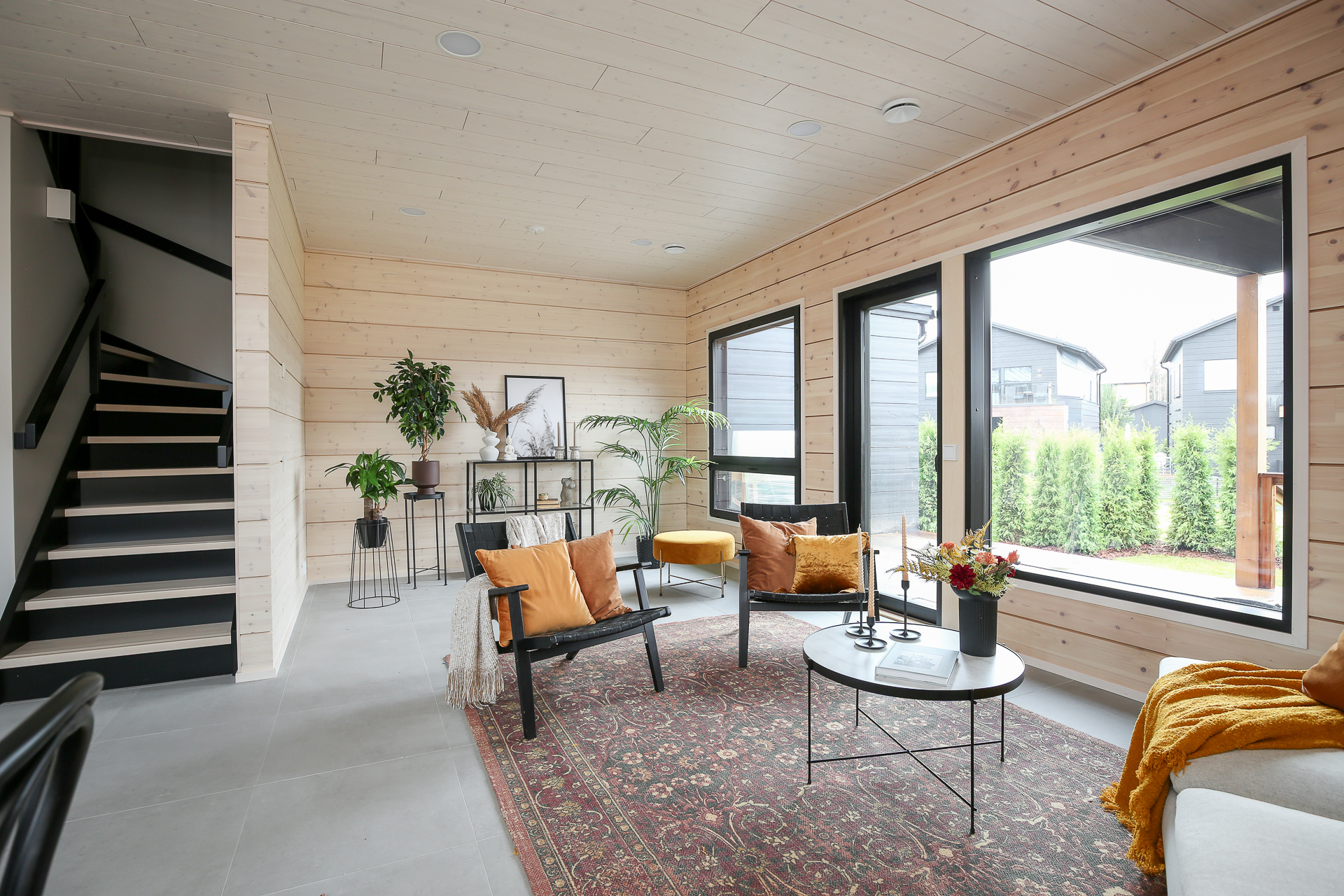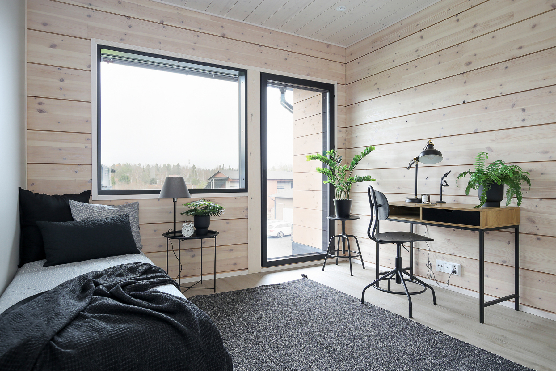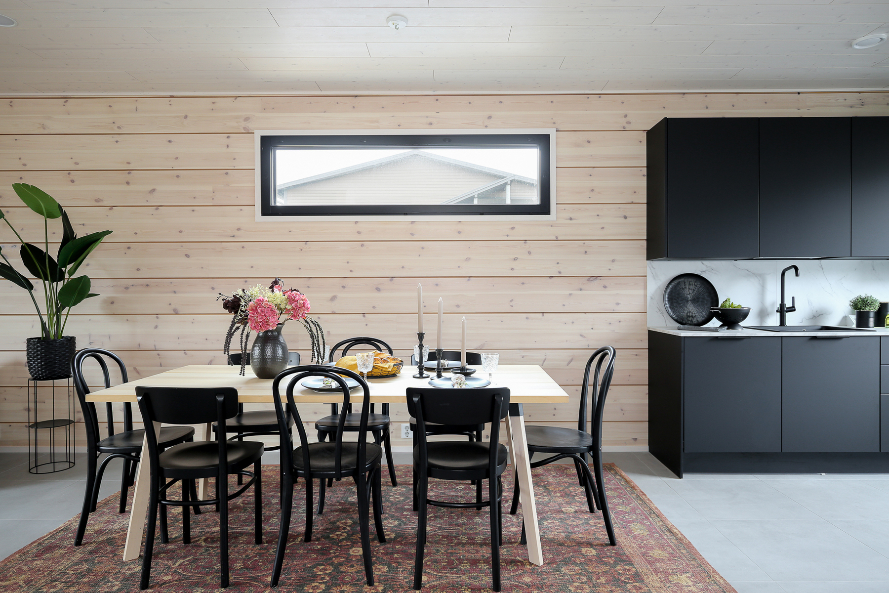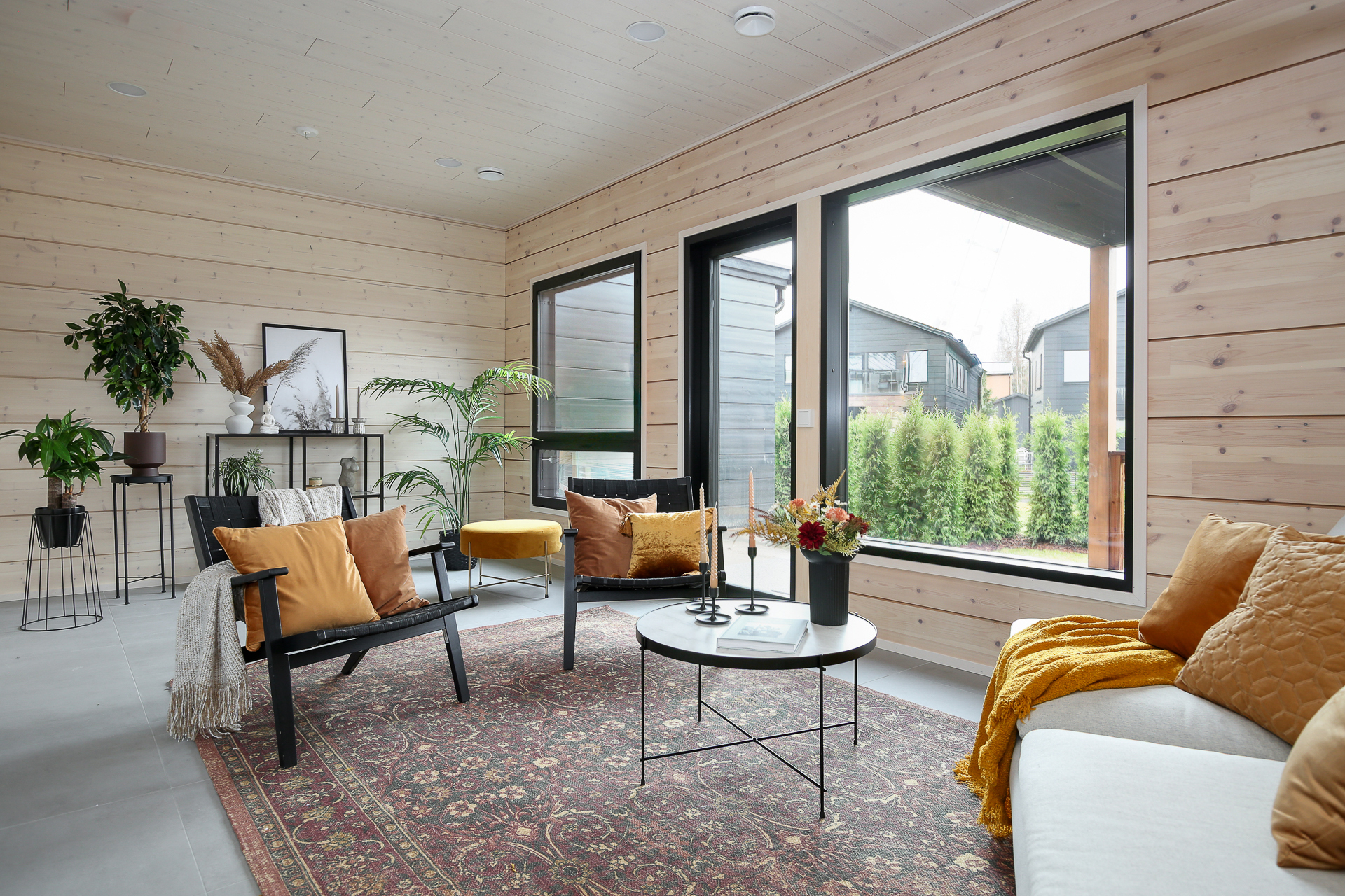 Seinät: Hirsiseinä/puupaneeli