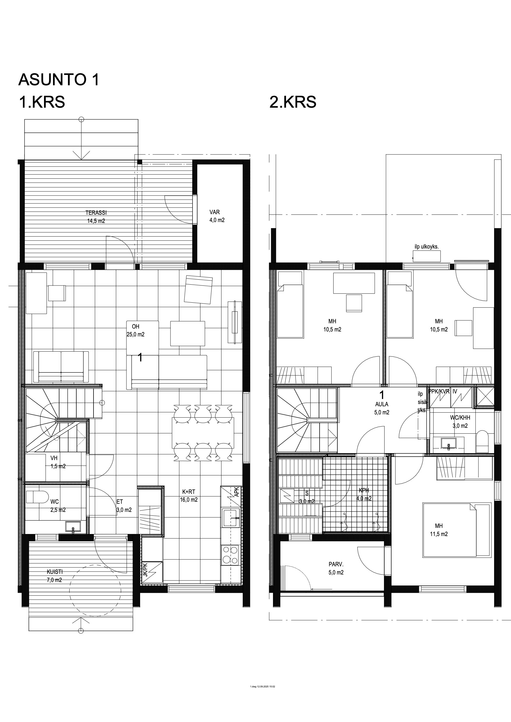 4h, k, kph, s, 2 wc, vh, varasto, parveke, terassi