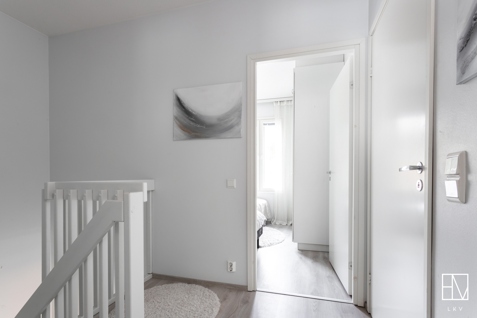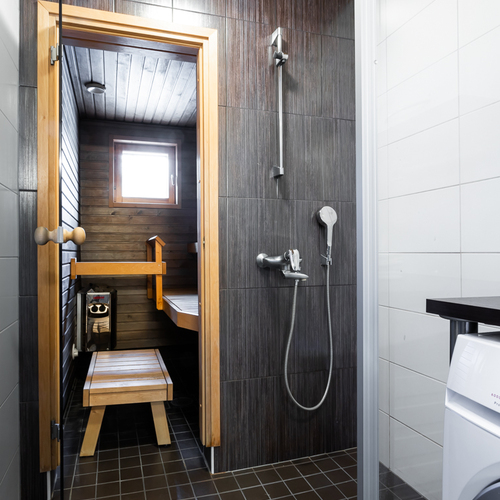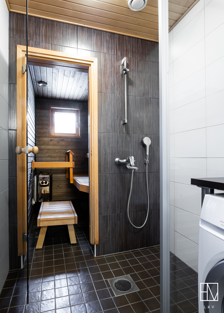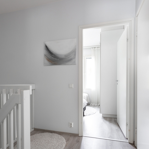 Yläkerrassa sijaitsee kaksi makuuhuonetta, joista toisen yhteydessä on tilava vaatehuone ja parveke. Saunan ja pesutilojen yhteydessä on toinen wc sekä käytännöllinen tila kodinhoidolle. Ilmalämpöpumppu lisää asumismukavuutta erityisesti lämpiminä kesäkuukausina.