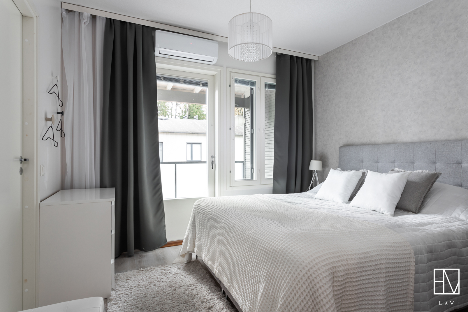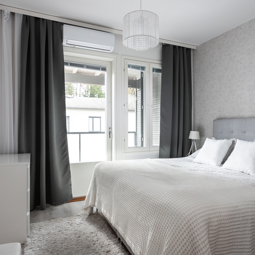 Varusteet: sälekaihtimet/rullaverhot, kiinteät valaisimet, ilmalämpöpumppu, huoneistokohtainen ilmanvaihtokone