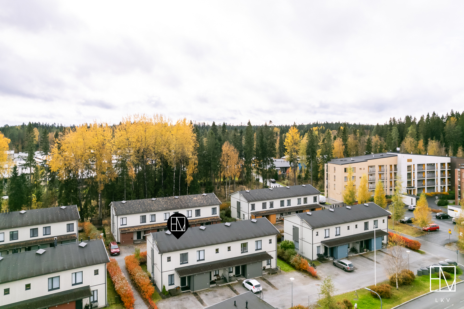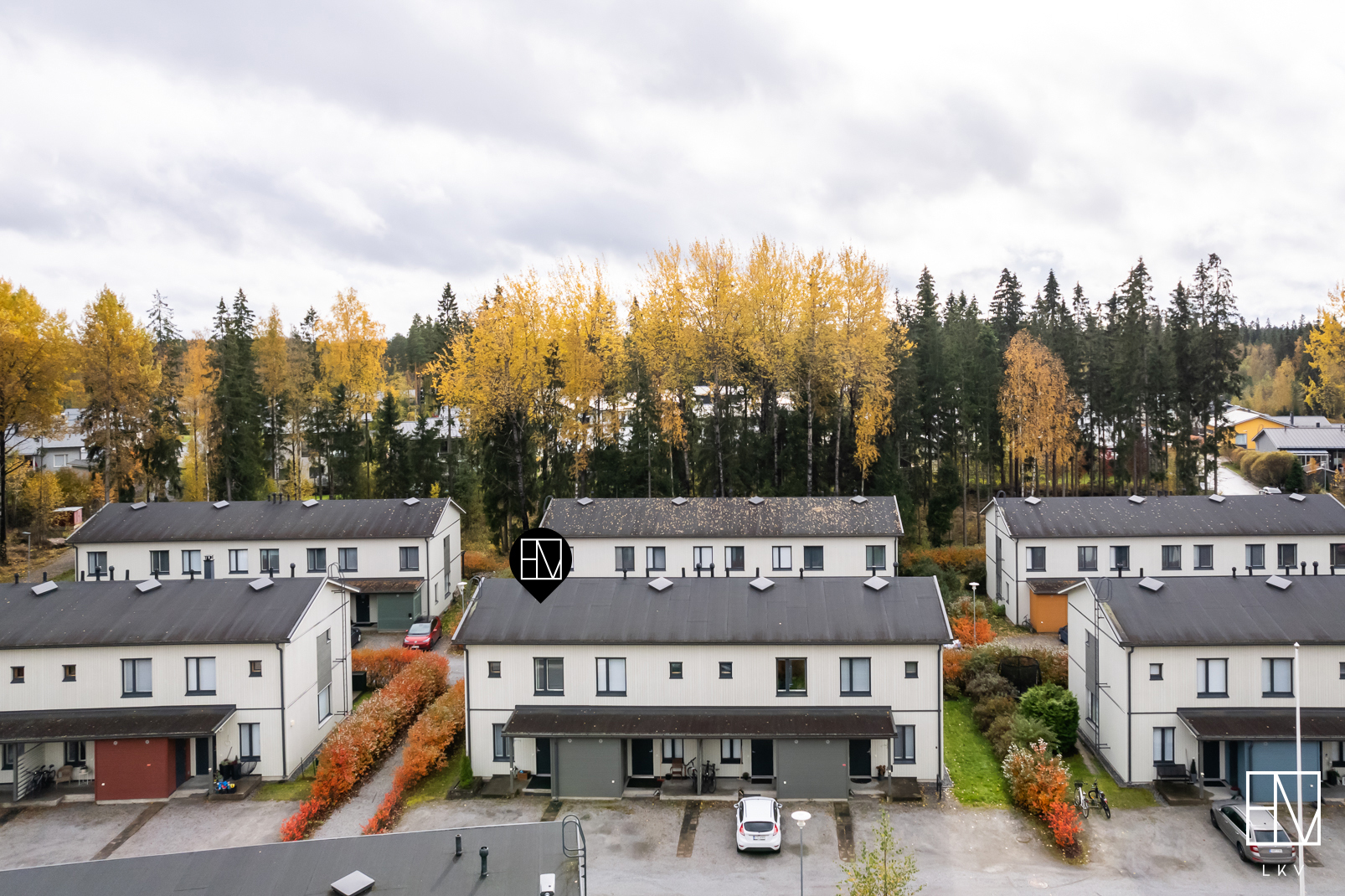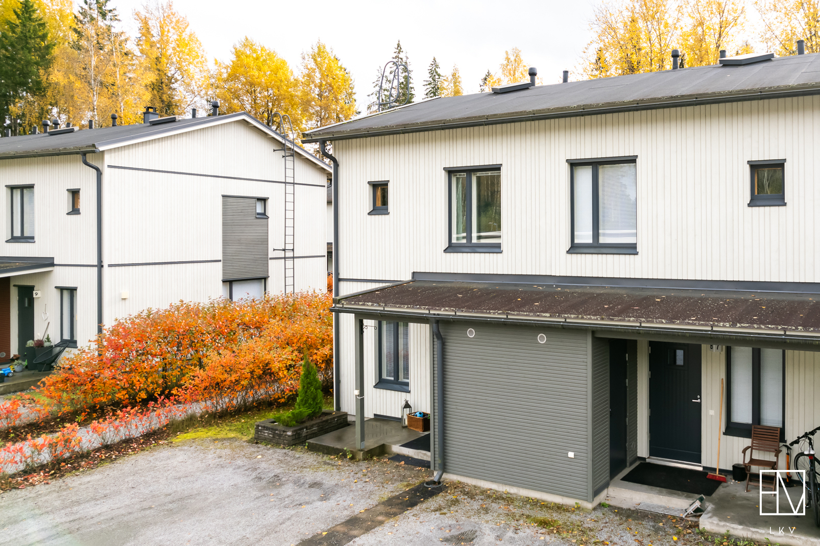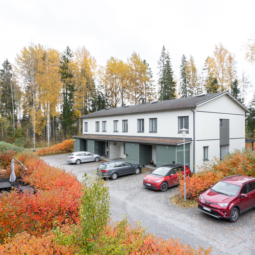Huoneistoon kuuluu tilava kylmä varasto sisäänkäynnin yhteydessä sekä kaksi autopaikkaa, mikä on harvinaisempi etu rivitaloasumisessa.