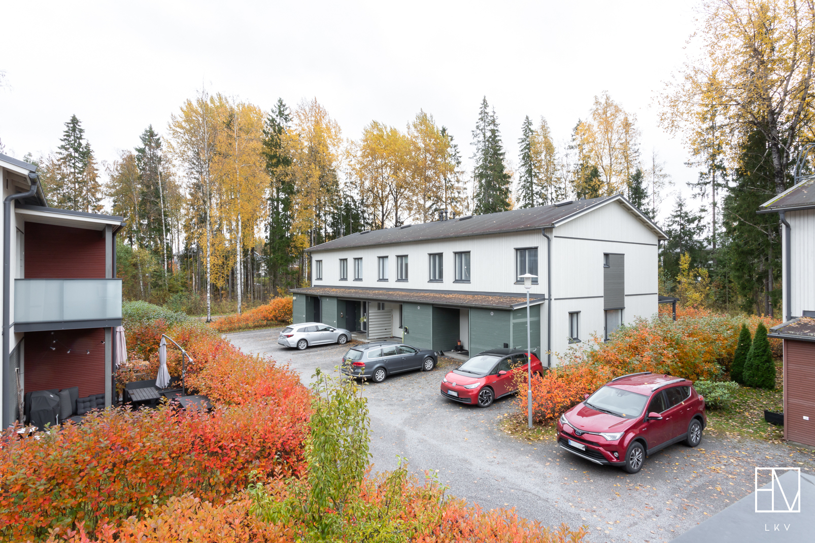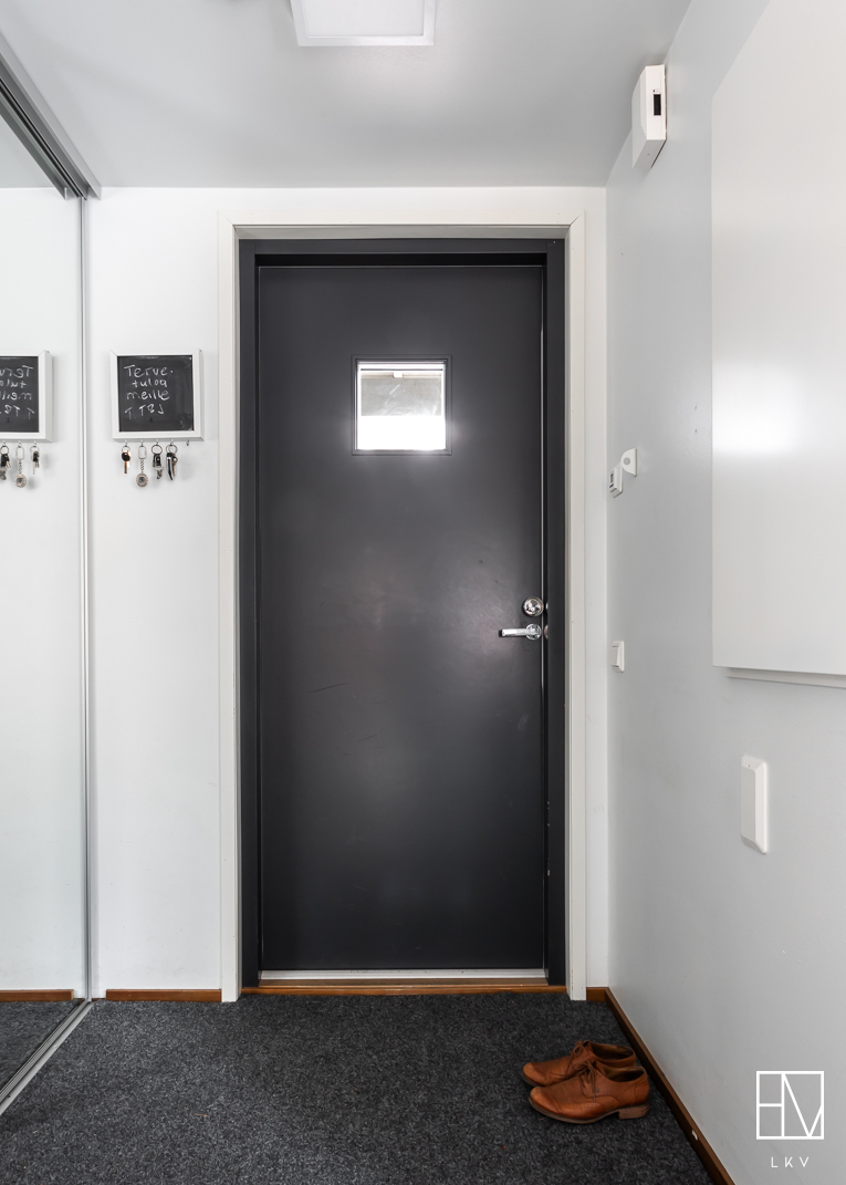 Huoneiston edessä kaksi autopaikkaa.
