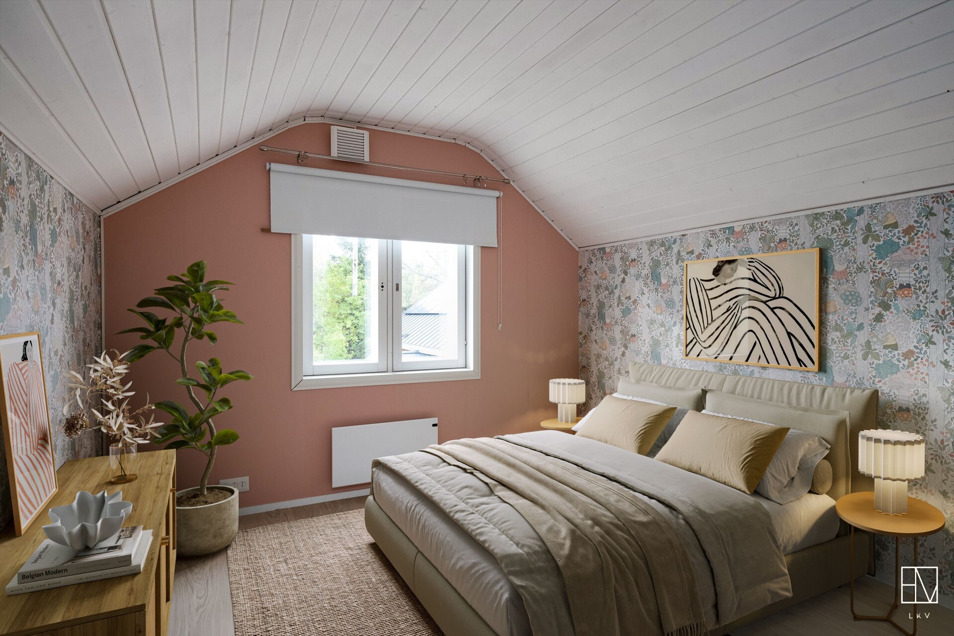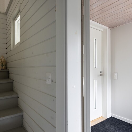 Yläkerrasta löytyy kaksi makuuhuonetita sekä vanhan talon hengen mukainen aula.