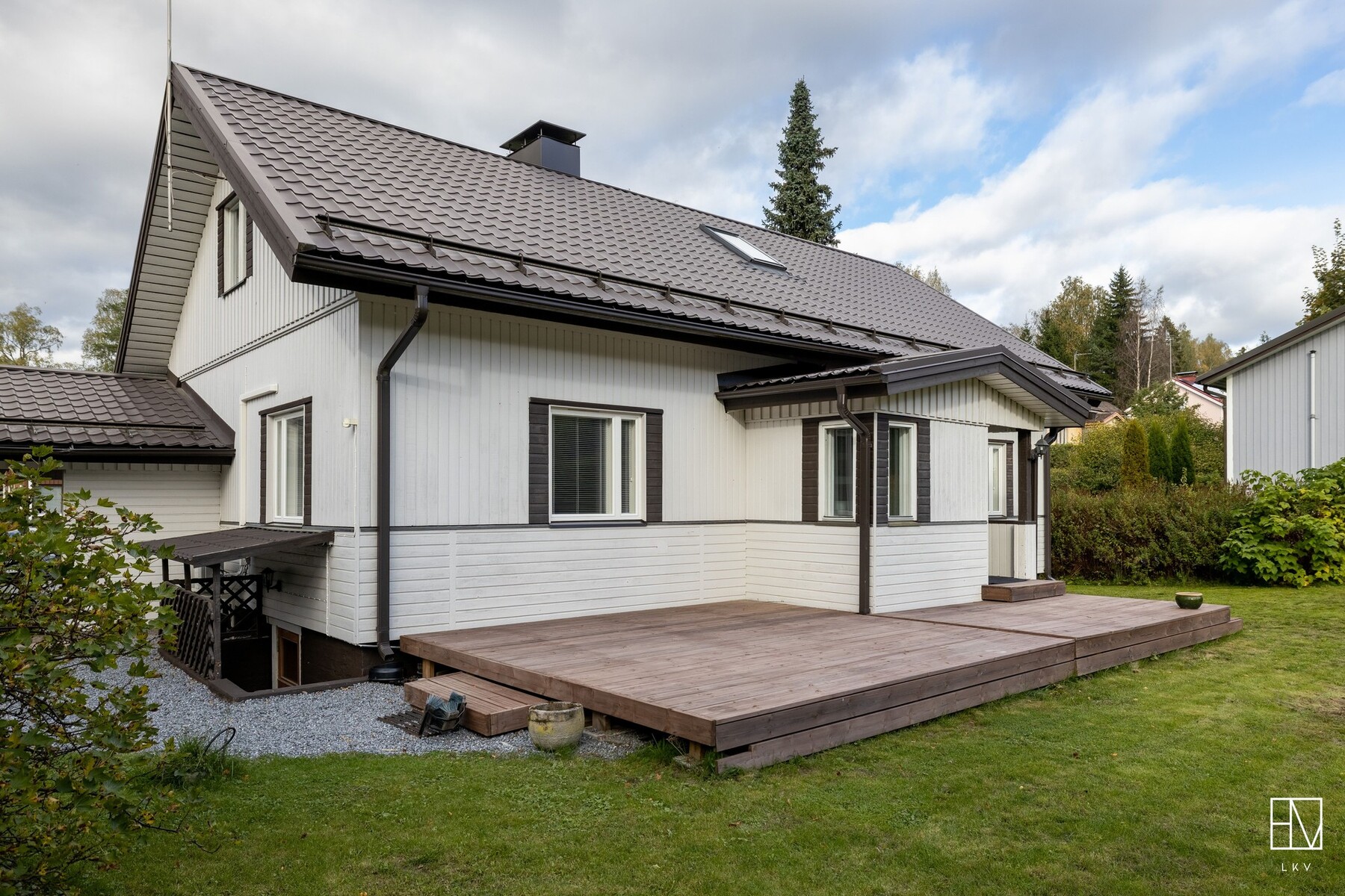 Talo sijaitsee rauhallisella ja viihtyisällä omakotitaloalueella Nokian Koskenmäessä, OMALLA tontilla, jossa on tilaa niin oleskeluun kuin lasten leikkeihin. Pihapiiri on viihtyisä ja vehreä, tarjoten mainiot puitteet perheen arkeen luonnonläheisessä ympäristössä. Pihan kruunaa pihasauna!