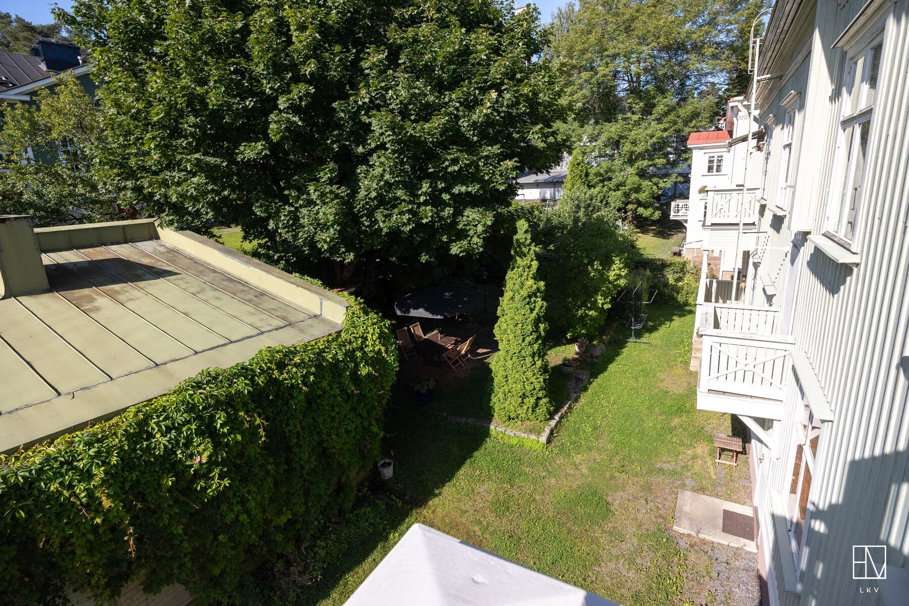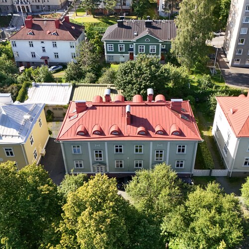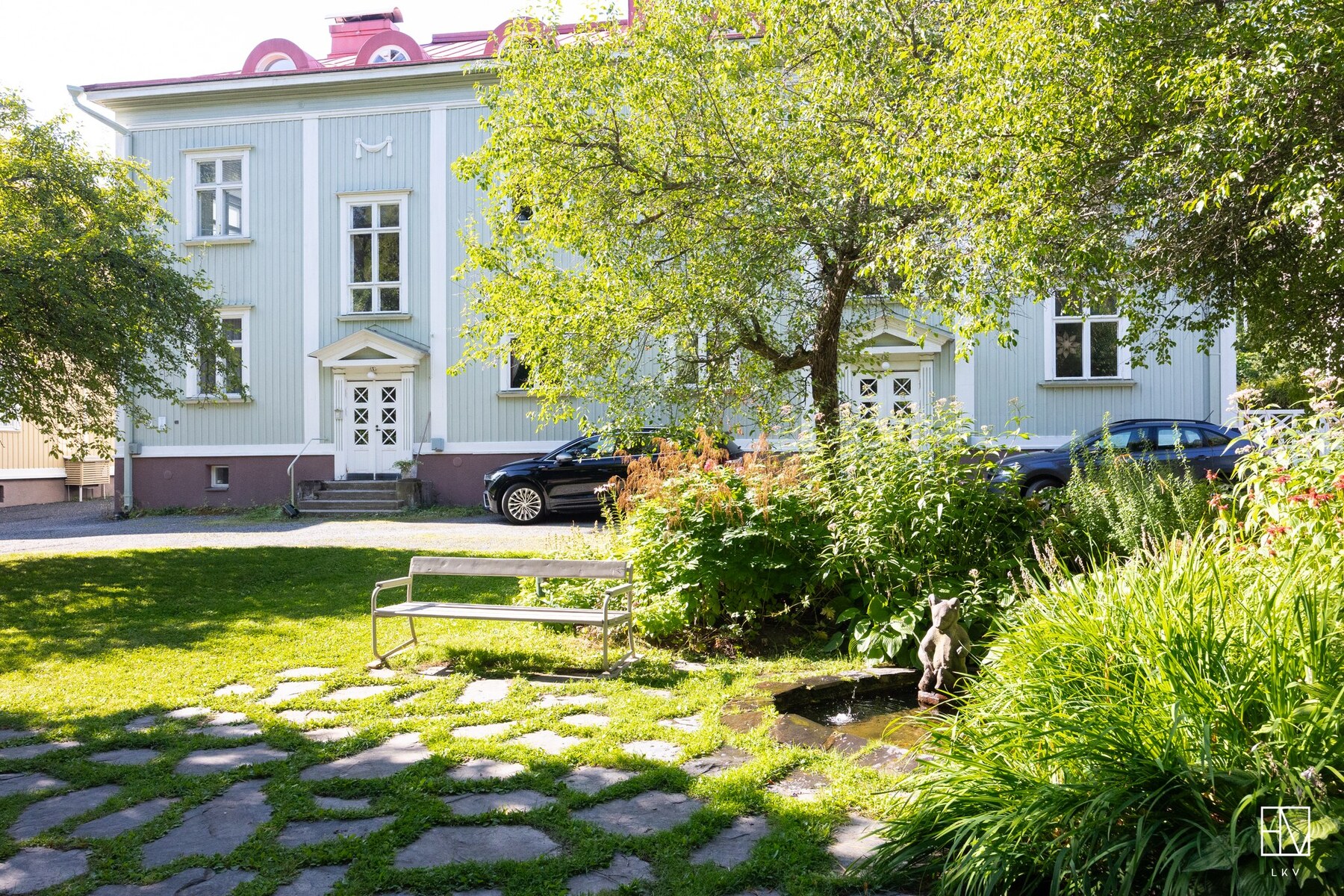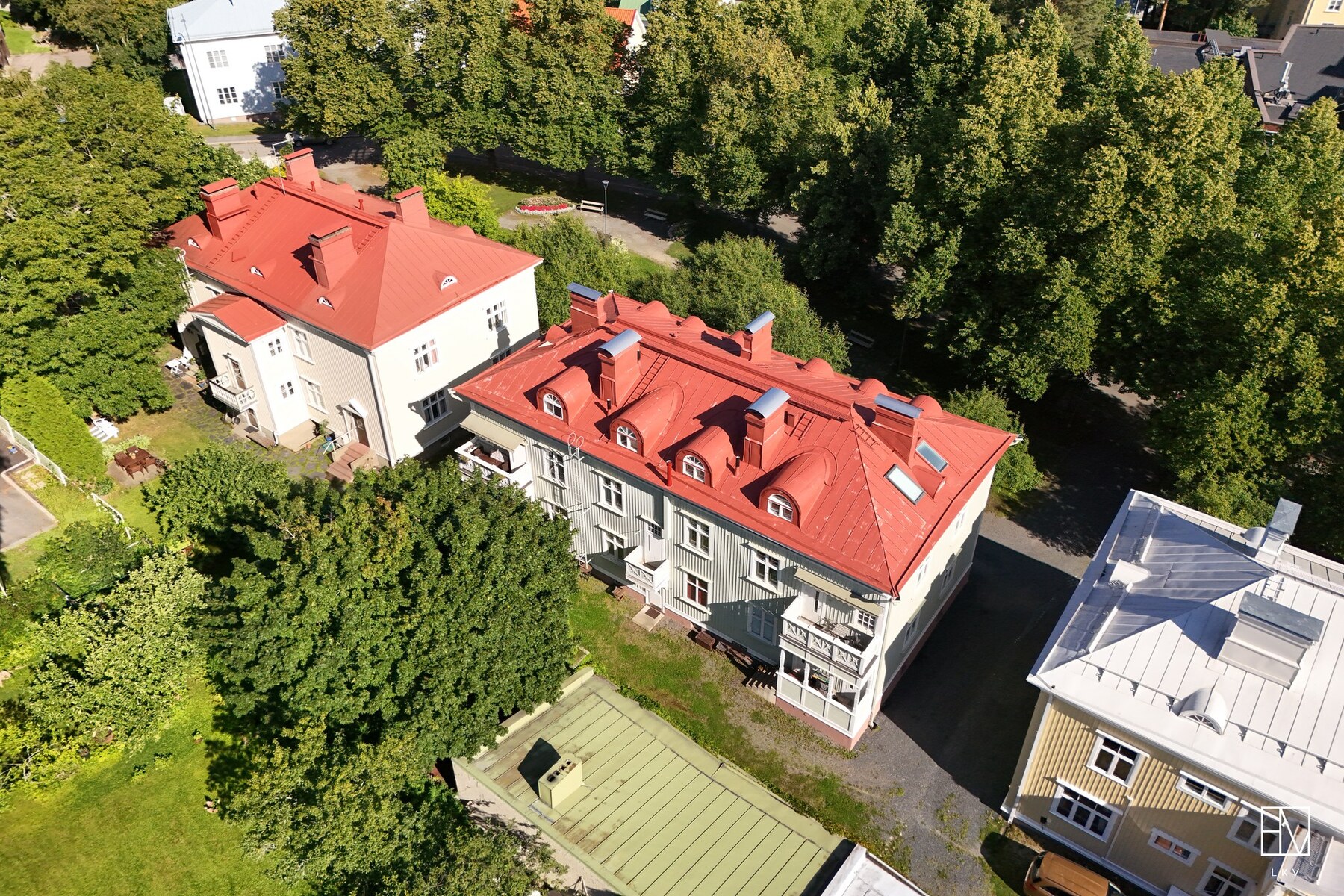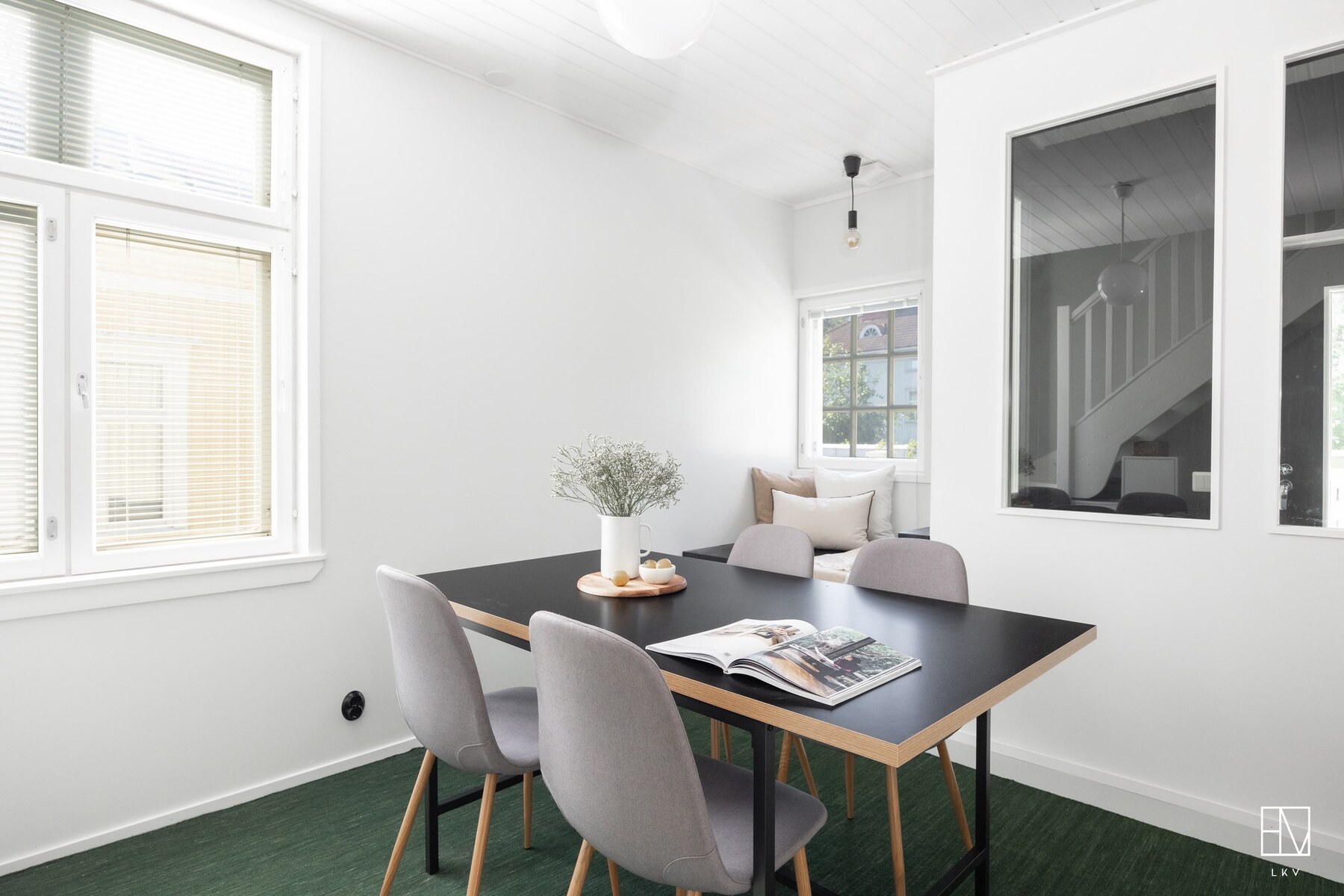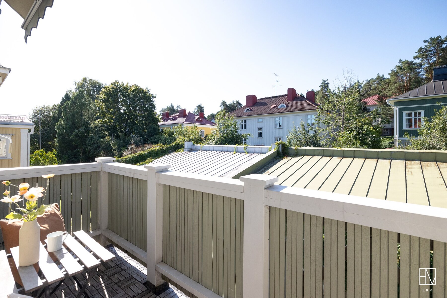 Kaksikerroksinen huoneisto yhdistää vanhan ajan arvokkuuden ja modernin asumismukavuuden. Alakerrassa on valoisa olohuone kakluuneineen, erillinen ruokailuhuone pönttöuunilla sekä laadukkaasti vuonna 2017 remontoitu keittiö.