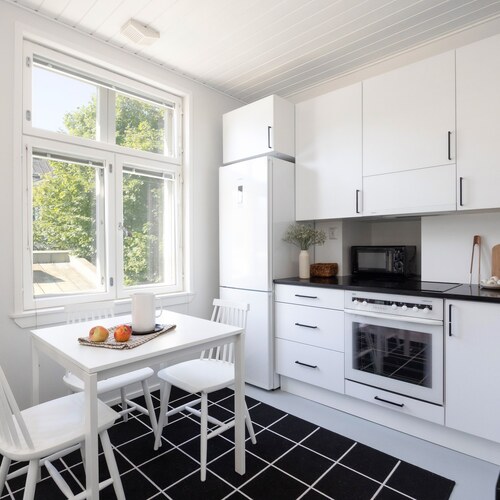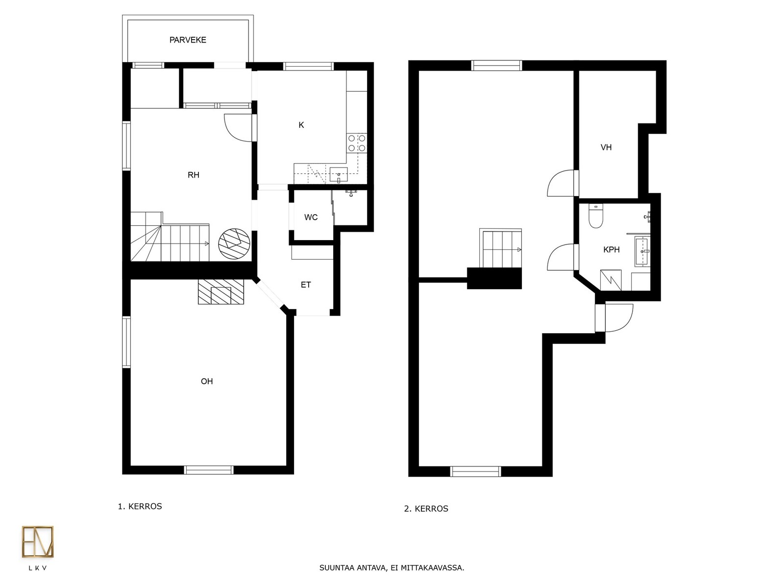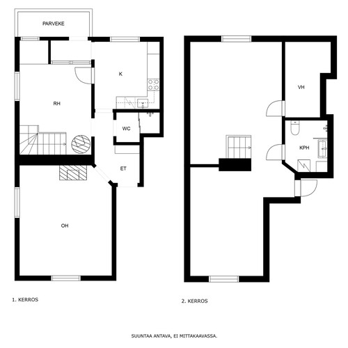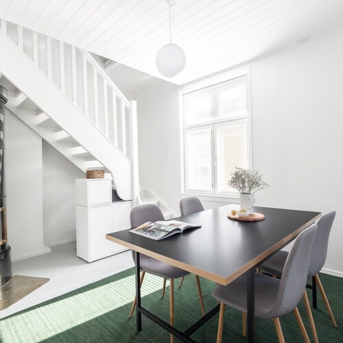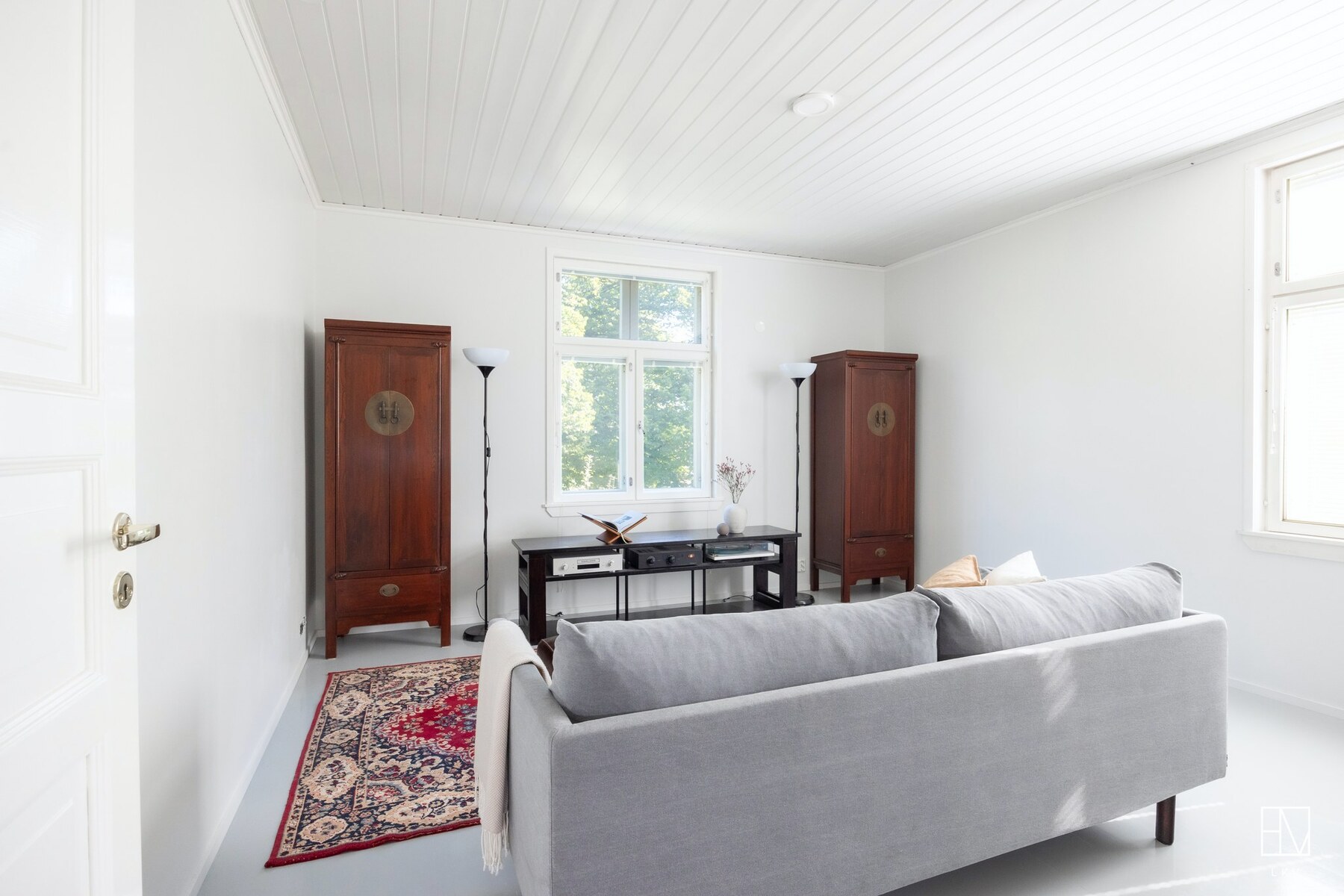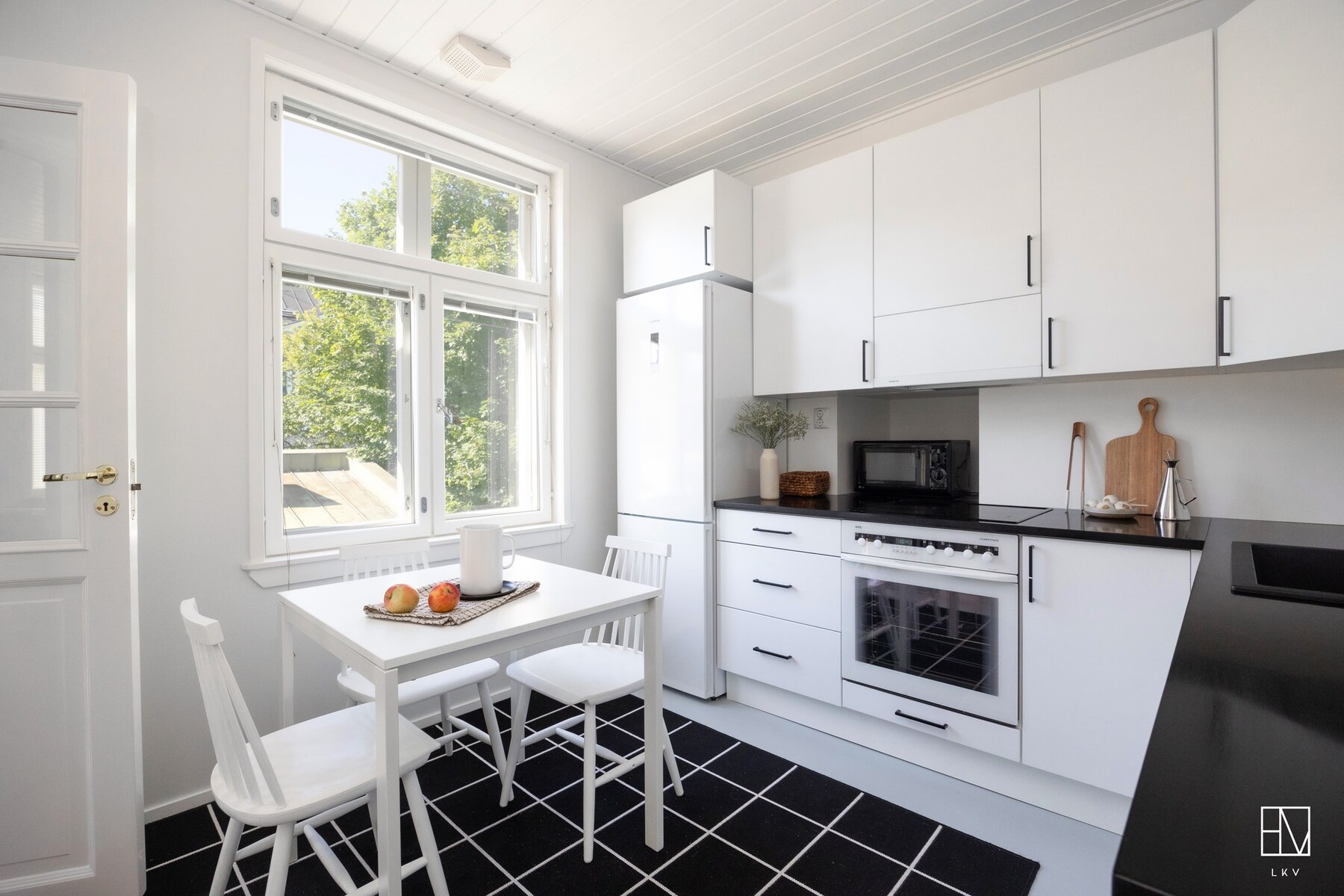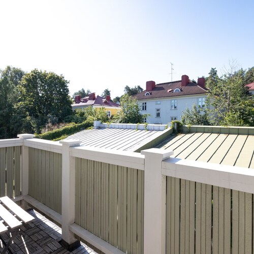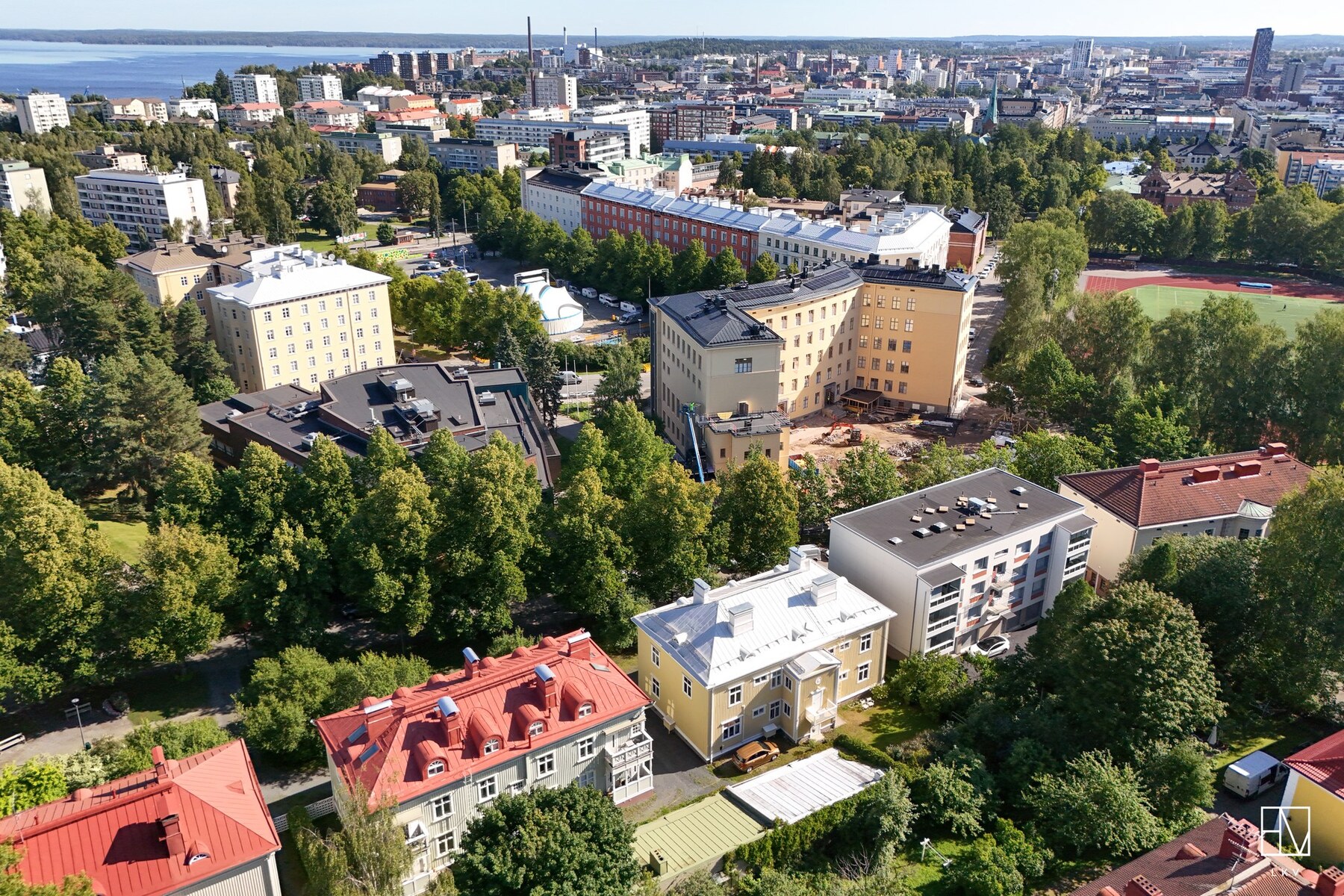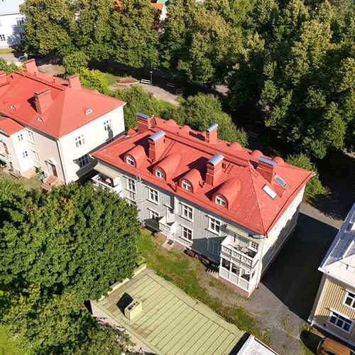 Kaksikerroksinen huoneisto yhdistää vanhan ajan arvokkuuden ja modernin asumismukavuuden. Alakerrassa on valoisa olohuone kakluuneineen, erillinen ruokailuhuone pönttöuunilla sekä laadukkaasti vuonna 2017 remontoitu keittiö.