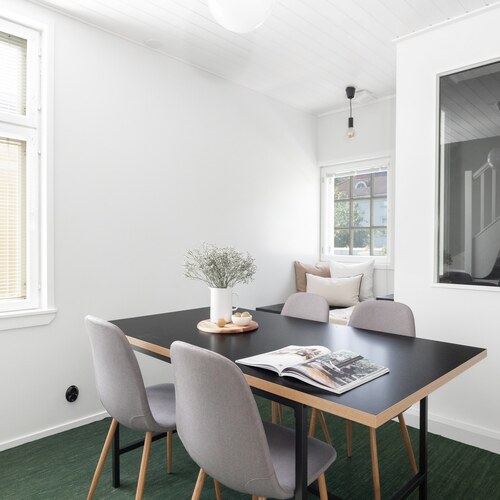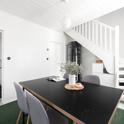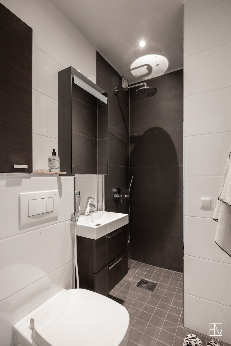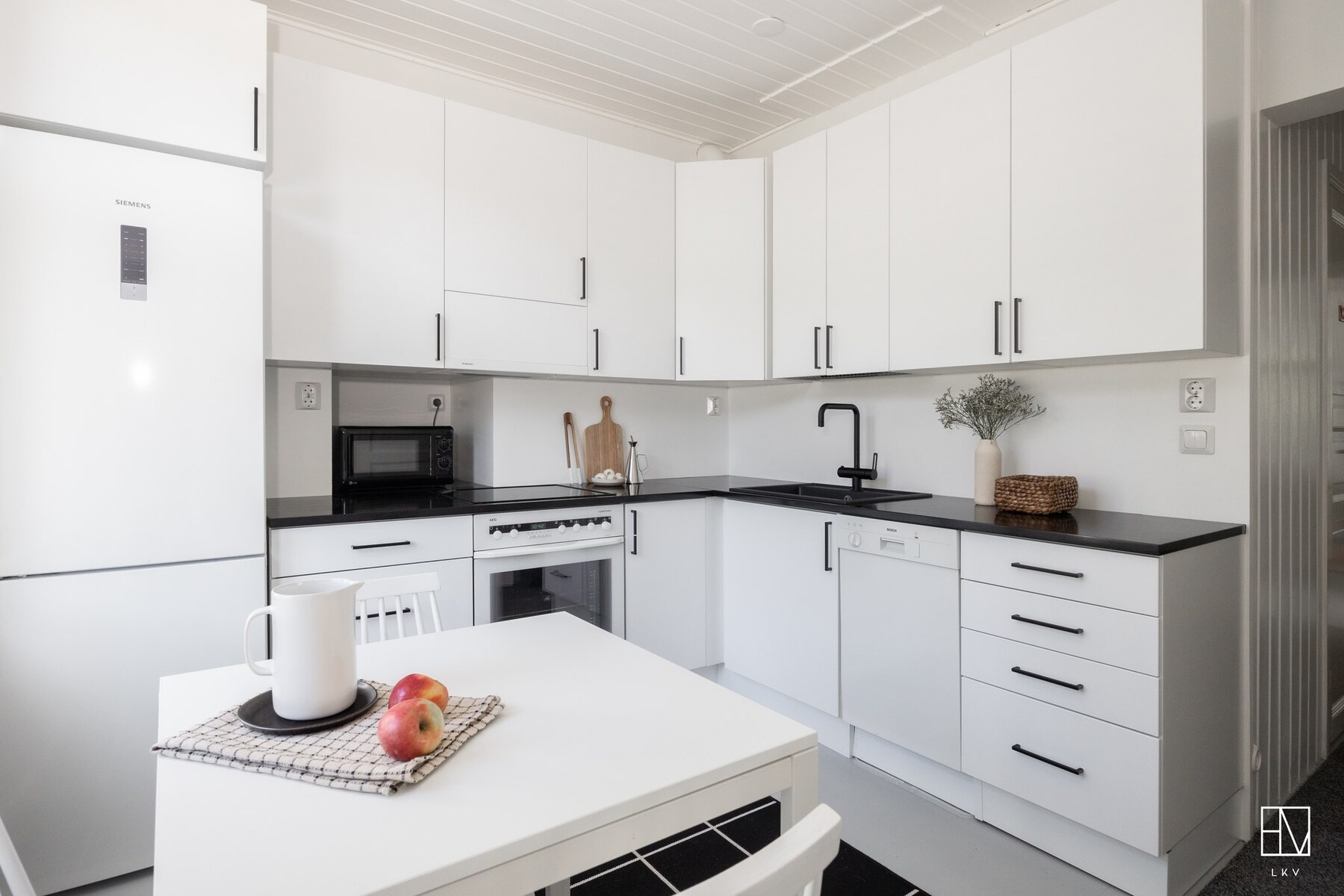 Molemmissa kerroksissa on kylpyhuone/wc, mikä tekee arjesta sujuvaa. Huoneisto on läpikäynyt kattavan ja tyylikkään remontin 2017 –2018.