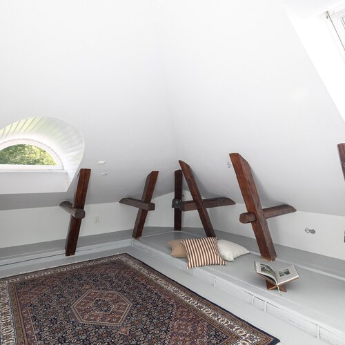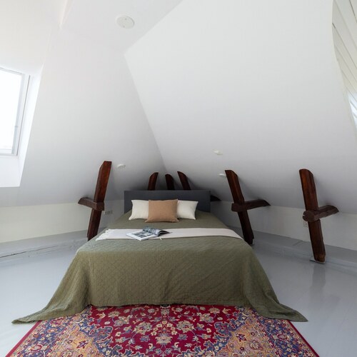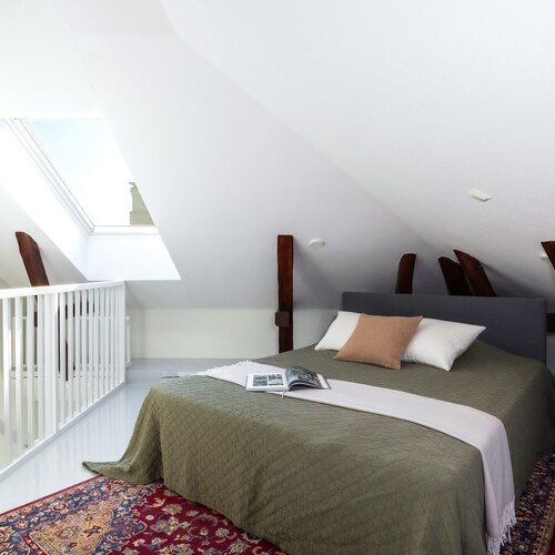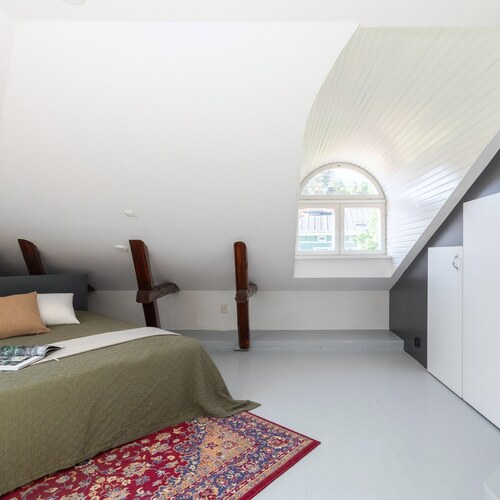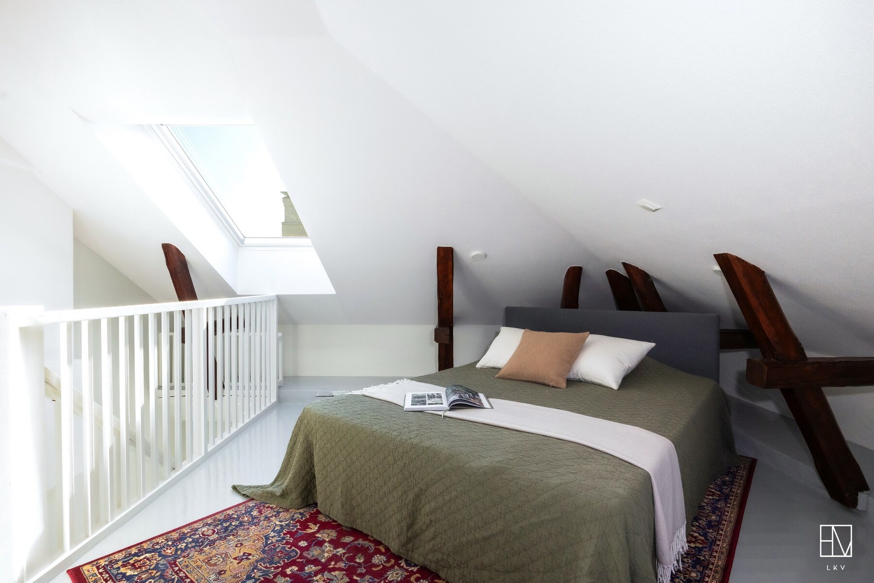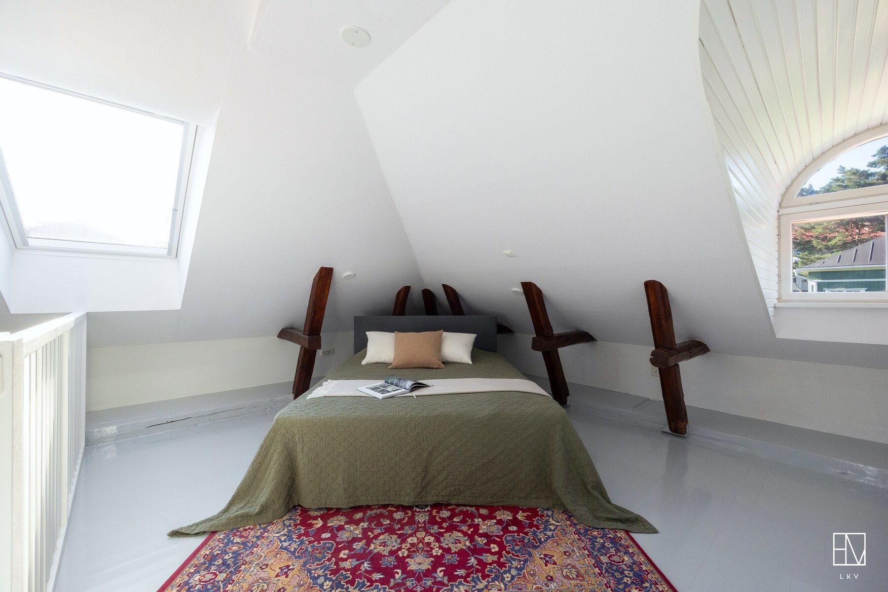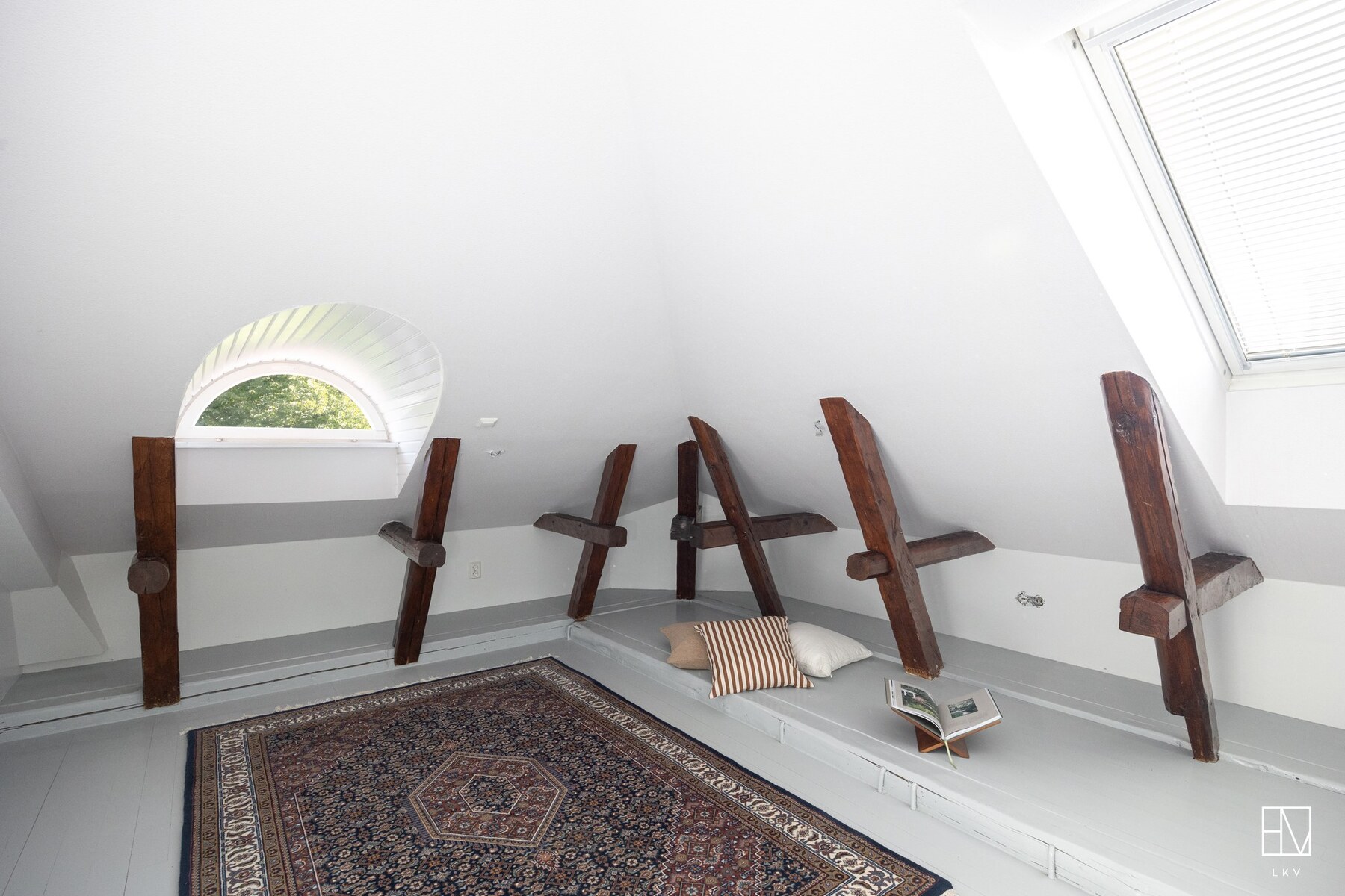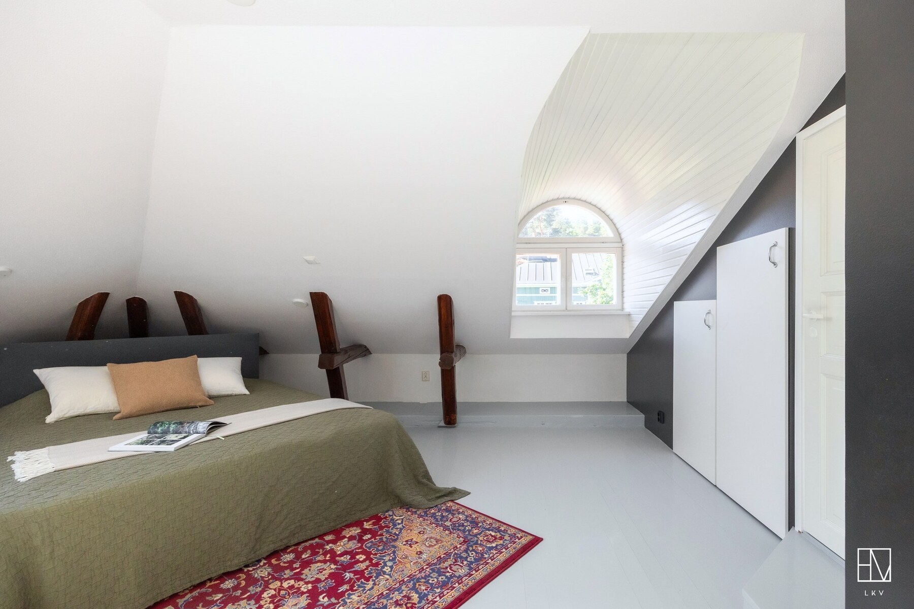 Ullakkokerros kätkee sisäänsä kaksi tilavaa makuuhuonetta, tyylikkäät kattoikkunat, vaatehuoneen ja toisen kylpyhuoneen.