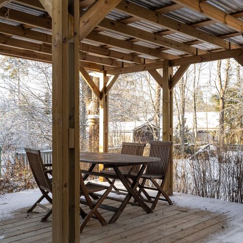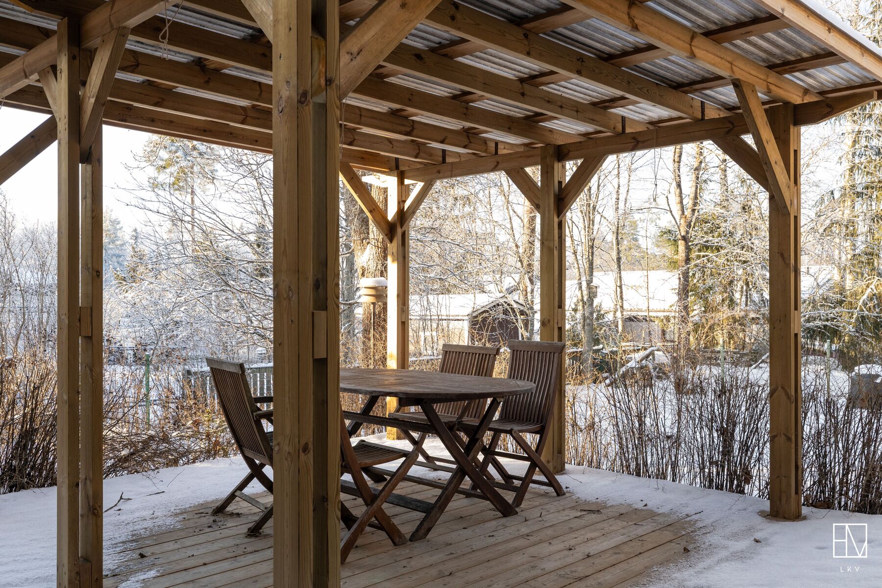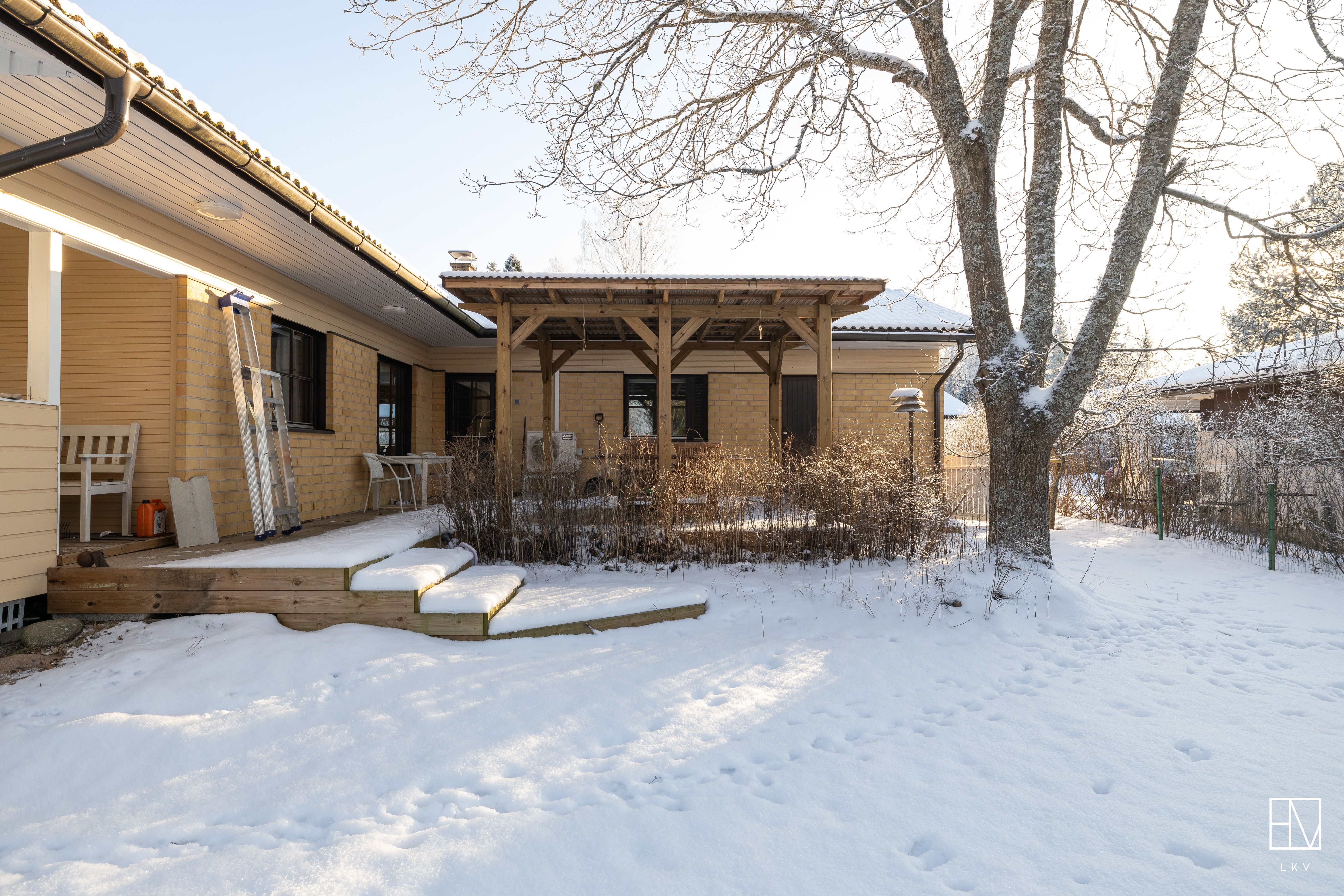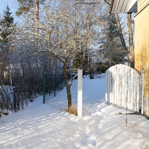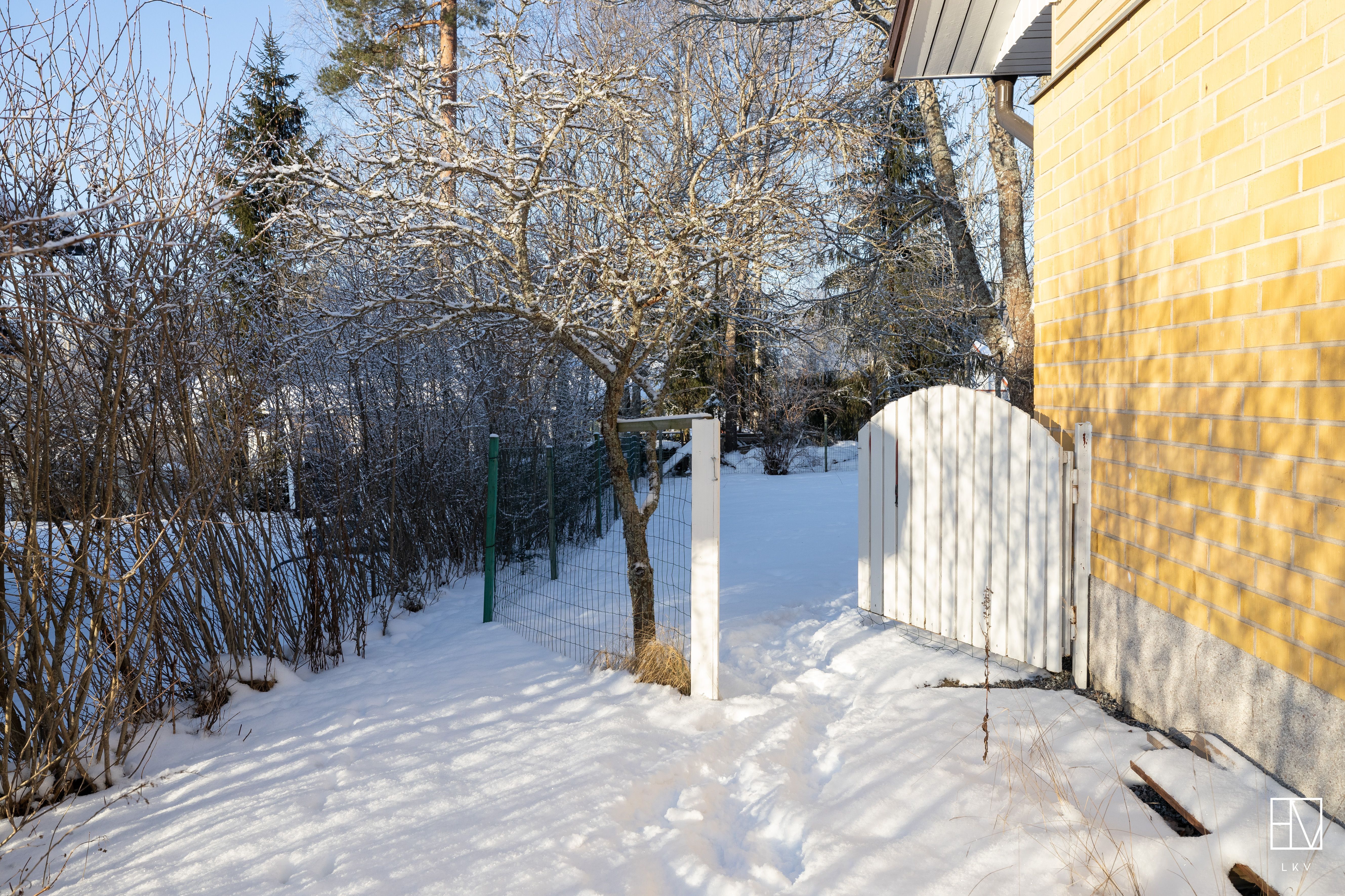 Upea 1040 m² tasamaatontti tarjoaa mahdollisuuksia monenlaisiin toteutuksiin. Kaunis ja helposti eri tarpeisiin muokattavissa oleva piha on kauttaaltaan aidattu pensasaidoin, ja lisäksi isoa osaa pihasta kiertää koira-aita. Takapihalla on upea terassi ja pergola, jossa voit nauttia iltapäivän auringosta ja kesäisistä ruokailuhetkistä. Terassin lisäksi takapihalla on katettu kuisti, jonka yhteydessä on varastotilaa.