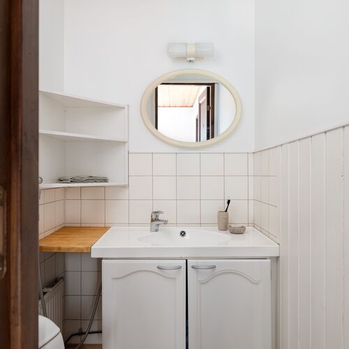 Allaskaappi, hyllykkö, peili, bidee-suihku.