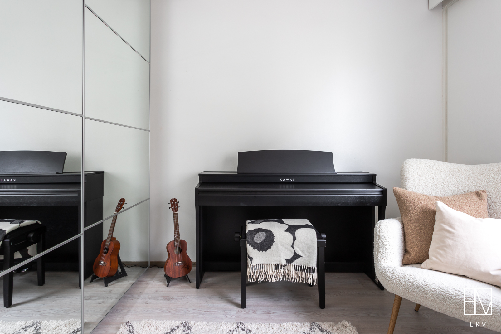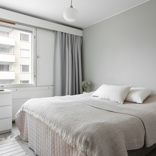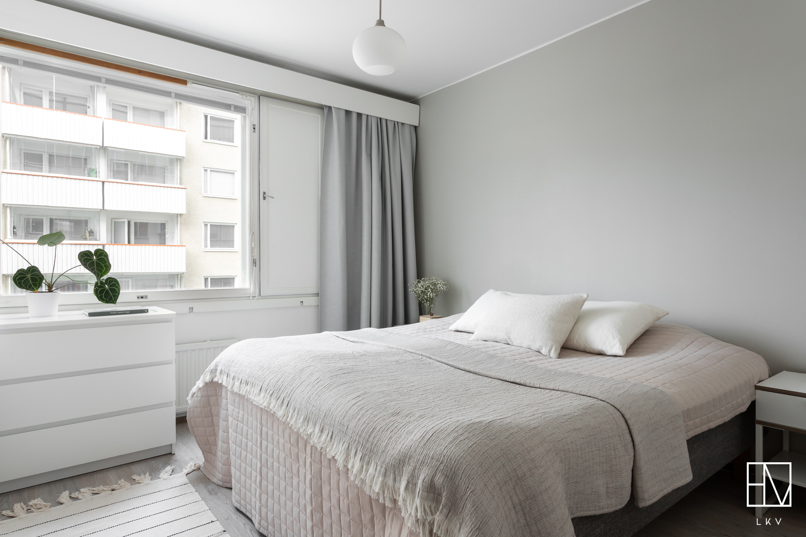 Asunnossa on kaksi kauniilla sävyillä varustettua makuuhuonetta, jotka avautuvat luoteeseen. Säilytystilaan on tässä kodissa panostettu ja sitä asunnosta löytyykin runsaasti niin kaapein kuin ison vaatehuoneen ansiosta. Myös vaatehuone on saanut täysin uuden ilmeen 2019. Asunnon lattiapinnat on uusittu vuonna 2018 ja seinäpinnat hiottu ja maalattu vuonna 2019. Kodin yleisilme on todella kaunis ja harmoninen.
