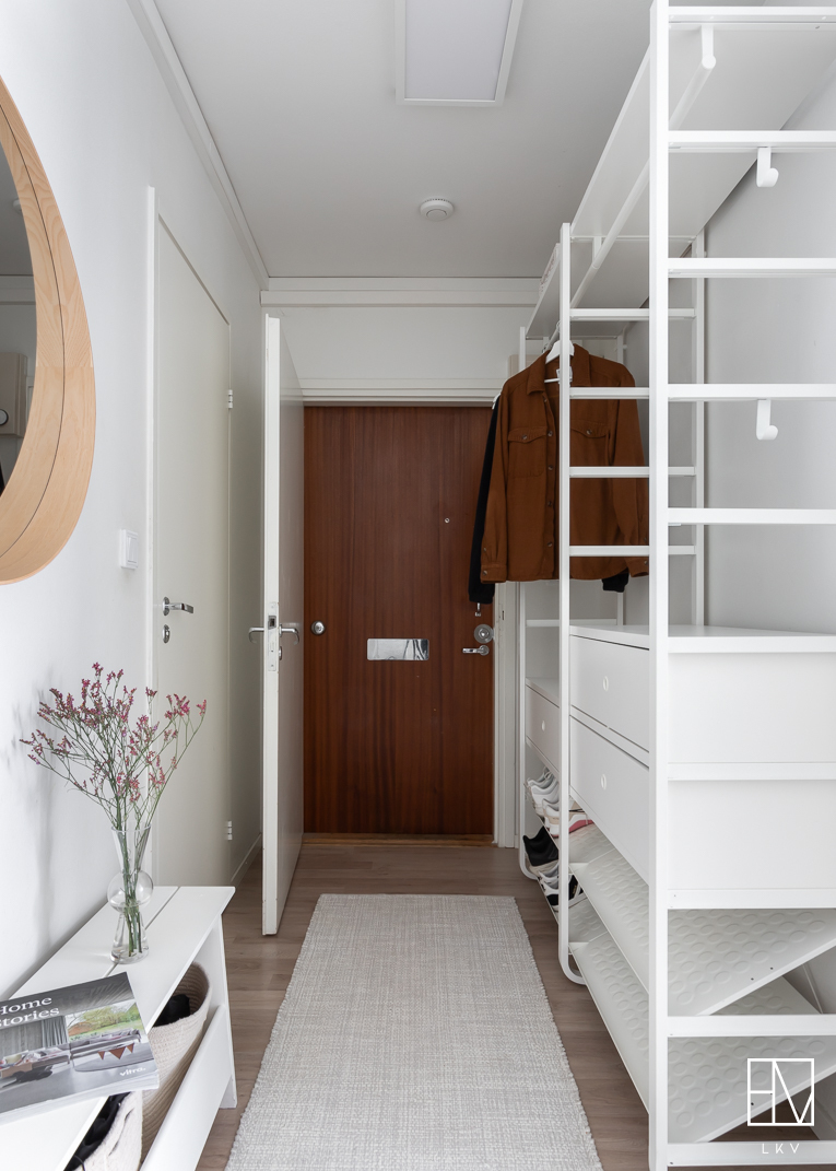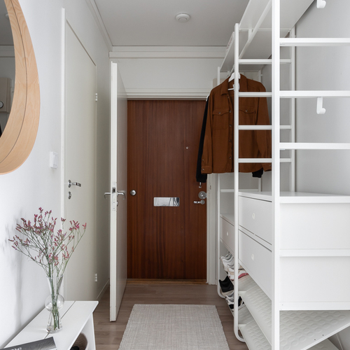 Tämä upeasti remontoitu koti ei isompia remontteja lähivuosina kaipaa. Asunto on saanut todellisen muodonmuutoksen vuonna 2019, jolloin koko asunto remontoitiin mittavasti ja laadusta tinkimättä. Remontin tarkka suunnittelu ja toteutus, sekä tyylikkäät materiaalivalinnat ovat vertaansa vailla. Ilme on huoliteltu ja koti miellyttää vaativampaakin silmää. Kolmiona asunto antaa hyvän kodin erilaisten perheiden tarpeisiin ja tämä asunto tuntuukin kokoistaan isommalta. Sisälle astuessasi avonaulakko tarjoaa runsaasti säilytystilaa ulkovaatteille. Heti oikealla on kodin kylpyhuone, jonka varusteluun kuuluvat mm. Grohen sadesuihku, Oraksen hana, peili ja allaskaappi, pesukoneliitäntä ja paikka pesutornille sekä suihkuseinä. Ilme on moderni ja hyvin tyylikäs.