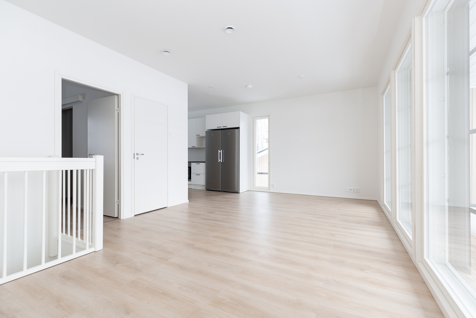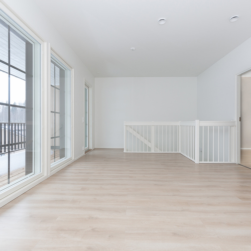 Astu sisään avaraan olohuoneeseen, joka yhdistyy sulavasti avokeittiöön. Olohuoneesta avautuu kulku isolle terassille, jossa voit nauttia auringosta ja rauhallisista hetkistä ystävien ja perheen kesken. Kauniisti suunniteltu ja valoisa tila tekee kodista viihtyisän ja kutsuvan. Kaksi kodin makuuhuoneista sijaitsee alakerrassa ja yksi yläkerrassa.