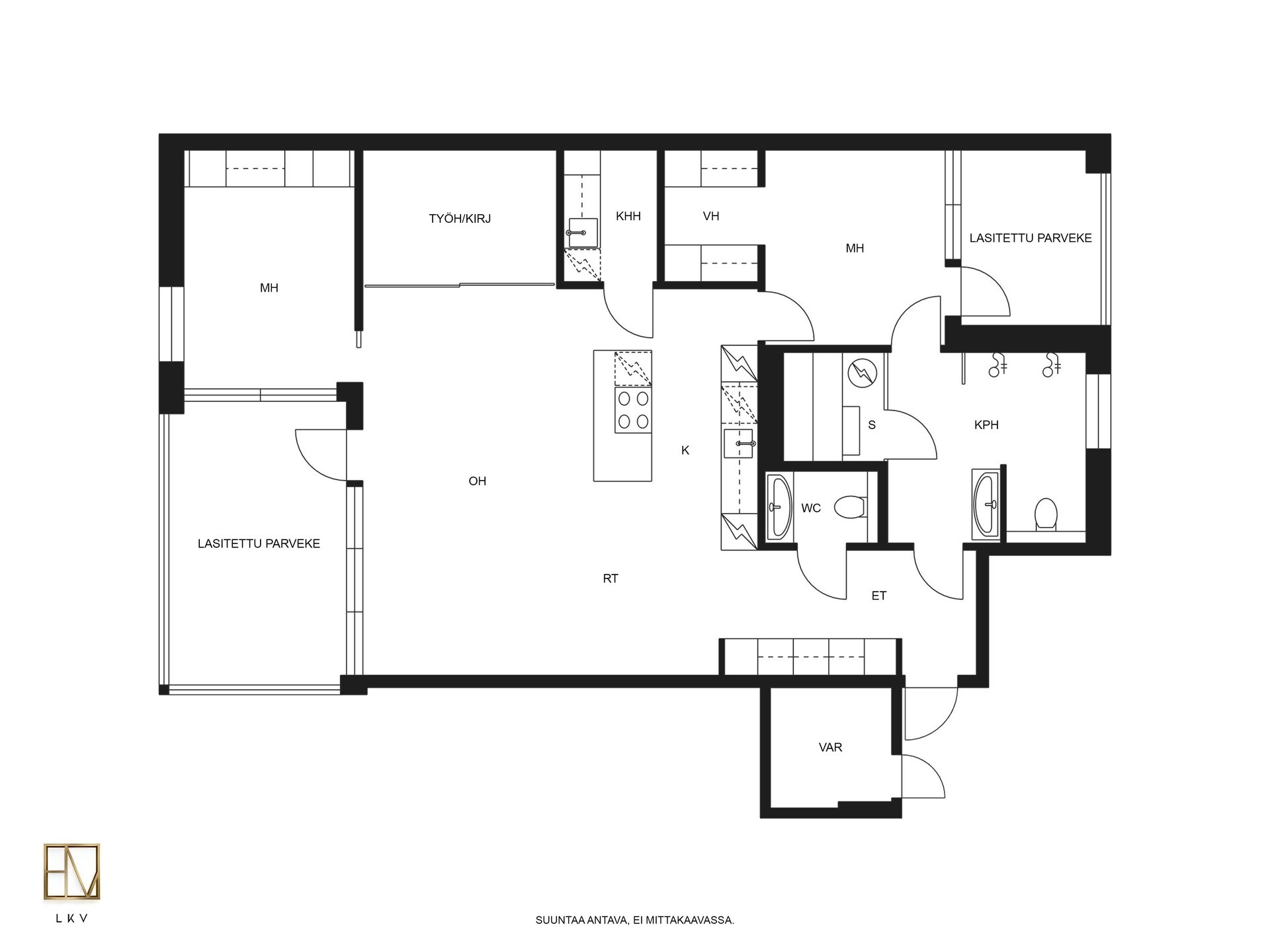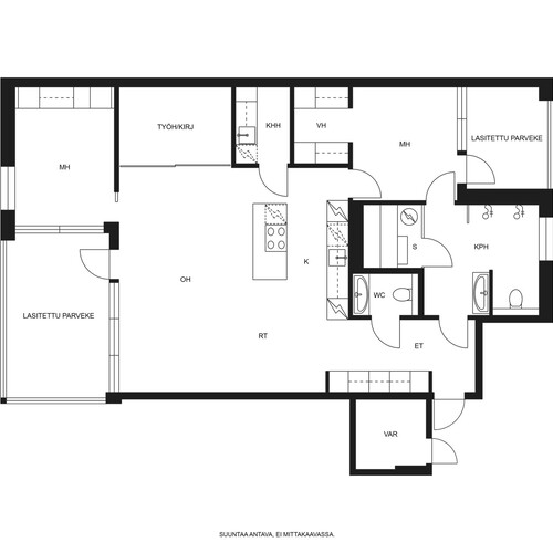 Myyntiini on avautunut tilava 111,50 m² huoneisto, jonka pohjaratkaisu sopii moneen eri elämäntilanteeseen ja on helposti muunneltavissa tarpeen mukaan. Huoneiston ehdottomana helmenä on keittiön ja olohuoneen muodostama iso yhteinen tila. Tilaa on isolle ruokapöydälle sekä illanistujaisille, unohtamatta arjen sujuvaa pyörittämistä lapsiperheessä.