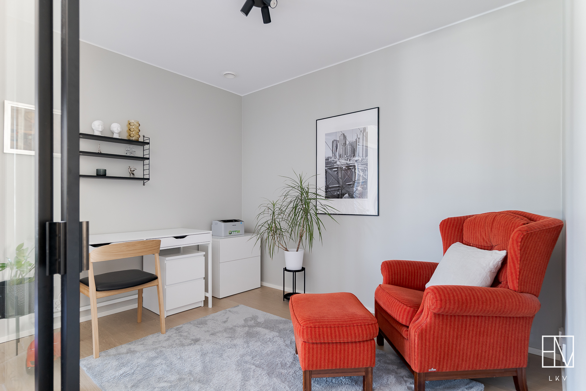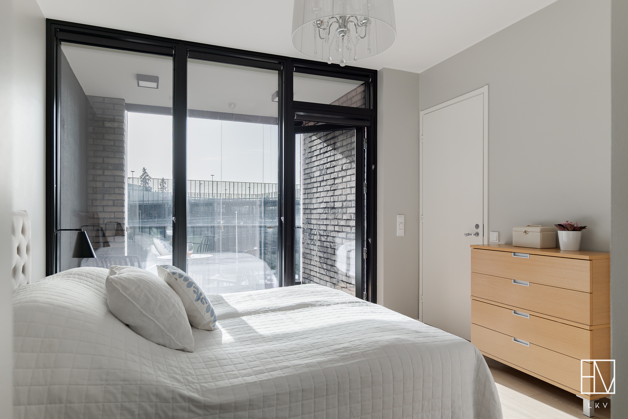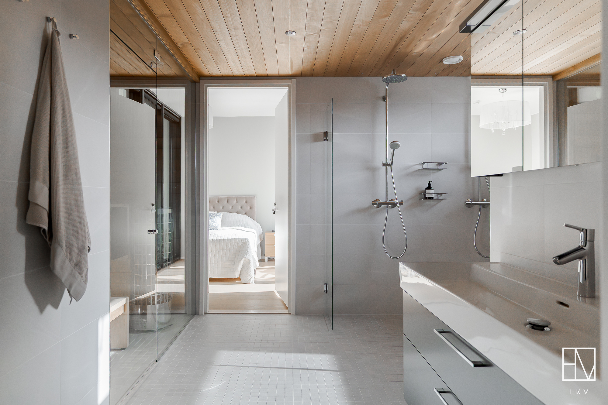 Asunnossa on työhuone, joka on helposti muunneltavissa käyttötarpeen mukaan ja kaksi makuuhuonetta, joista päämakuuhuoneen yhteydessä on avoin vaatehuone sekä parveke. Kylpy- ja saunatilat ovat myös todella tyylikkäät. Tilan yhteydessä on asunnon toinen wc. Pyykkihuoltoa varten löytyy erillinen tilava ja todella käytännöllinen kodinhoitohuone. Asunnon kaksi lasitettua parveketta mahdollistavat keväisin varaslähdön kohti kesää ja toimivat lisähuoneena pitkälle syksyyn.