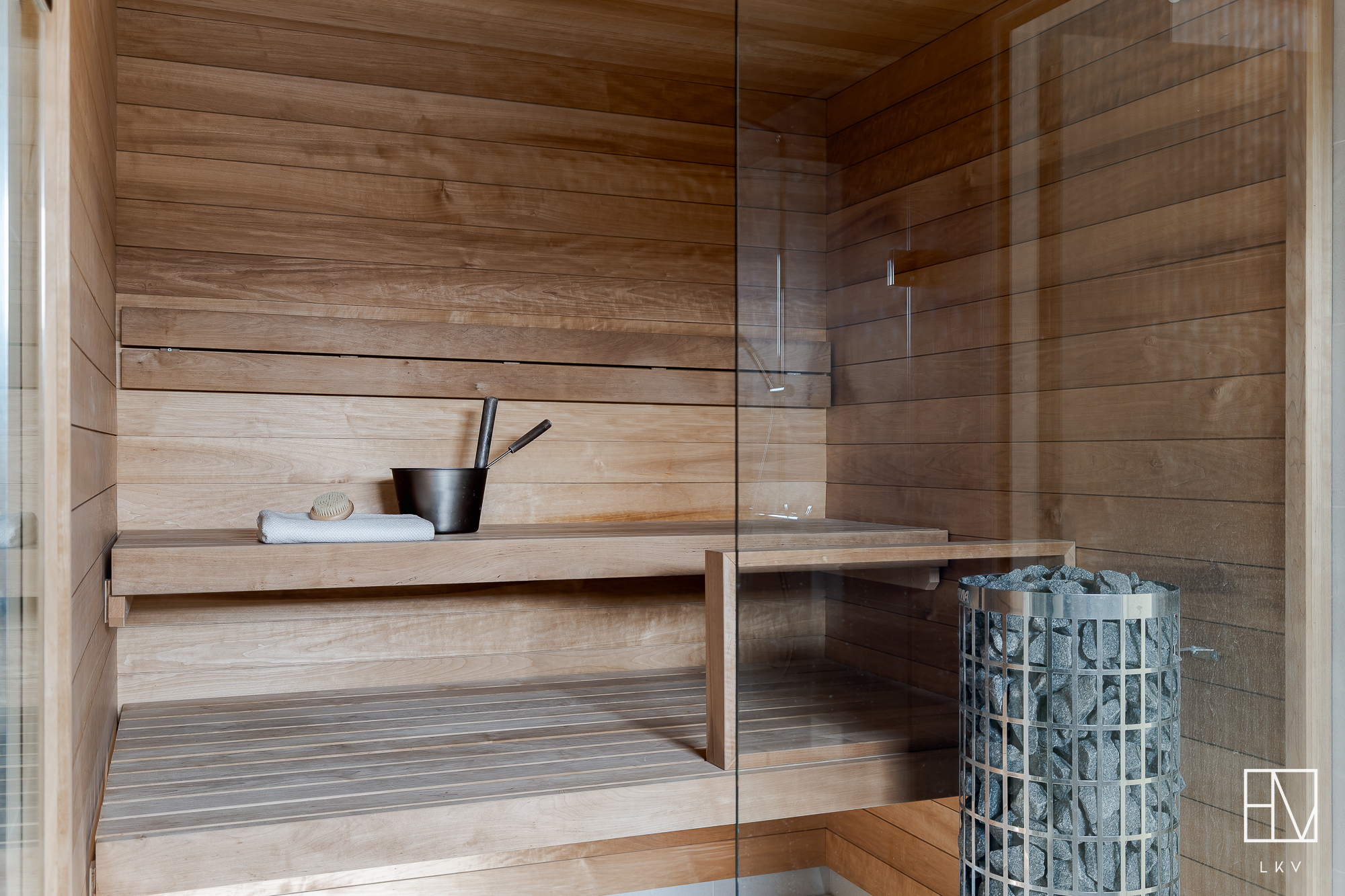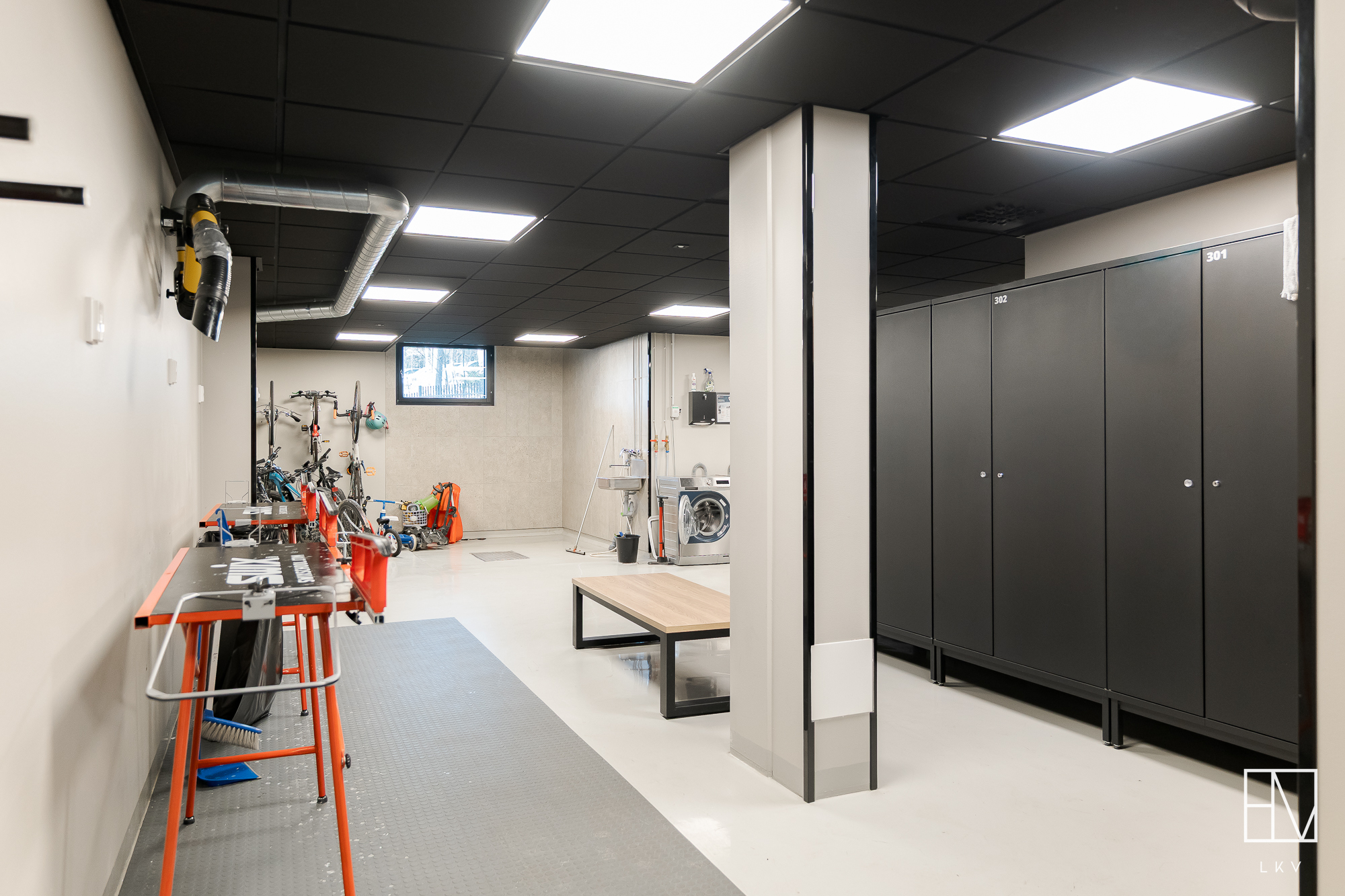 Kerrostalon yleistilat ovat myös täysin omalla tasollaan, sillä kellarikerroksesta löytyy mm. paikka suksien huollolle, polkupyörien pesulle. Tilassa on myös urheiluvälinevarasto sekä suihku. Eikä tässä kaikki, sillä aktiivisen asukkaan tarpeet ovat huomioitu myös säilytystiloissa. Huoneiston oven vieressä on oma iso varasto, jossa tilaa esimerkiksi golf-varusteille ja sähköpyörille. Yhtiön tiloissa on vielä tämän lisäksi huoneistokohtainen lämmin häkkivarasto.
