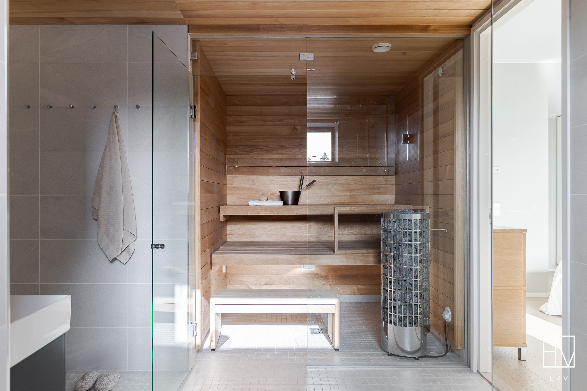 Varusteet: lattialämmitys, wc-istuin, suihku, kiinteät valaisimet