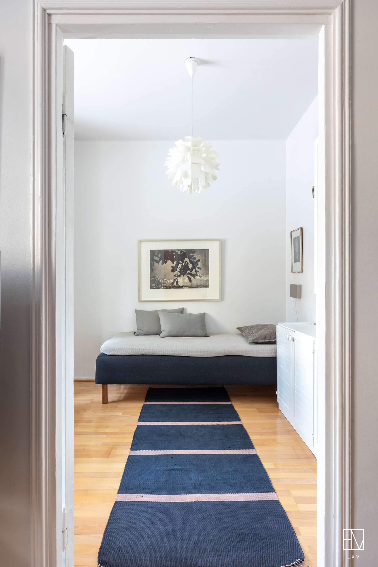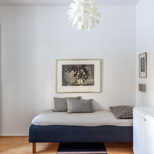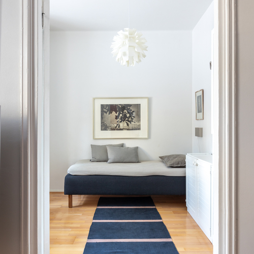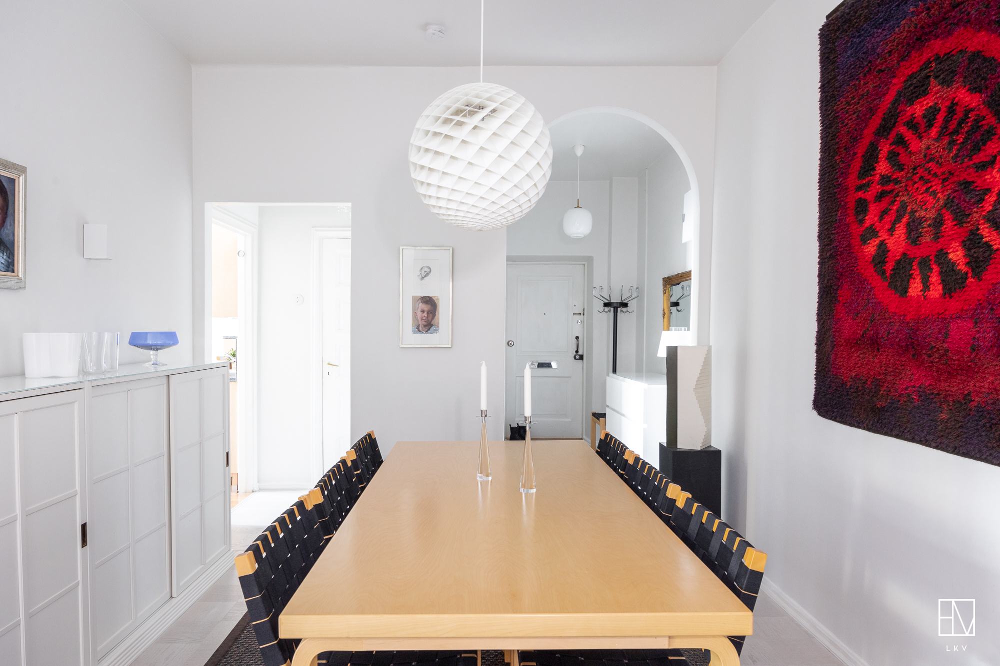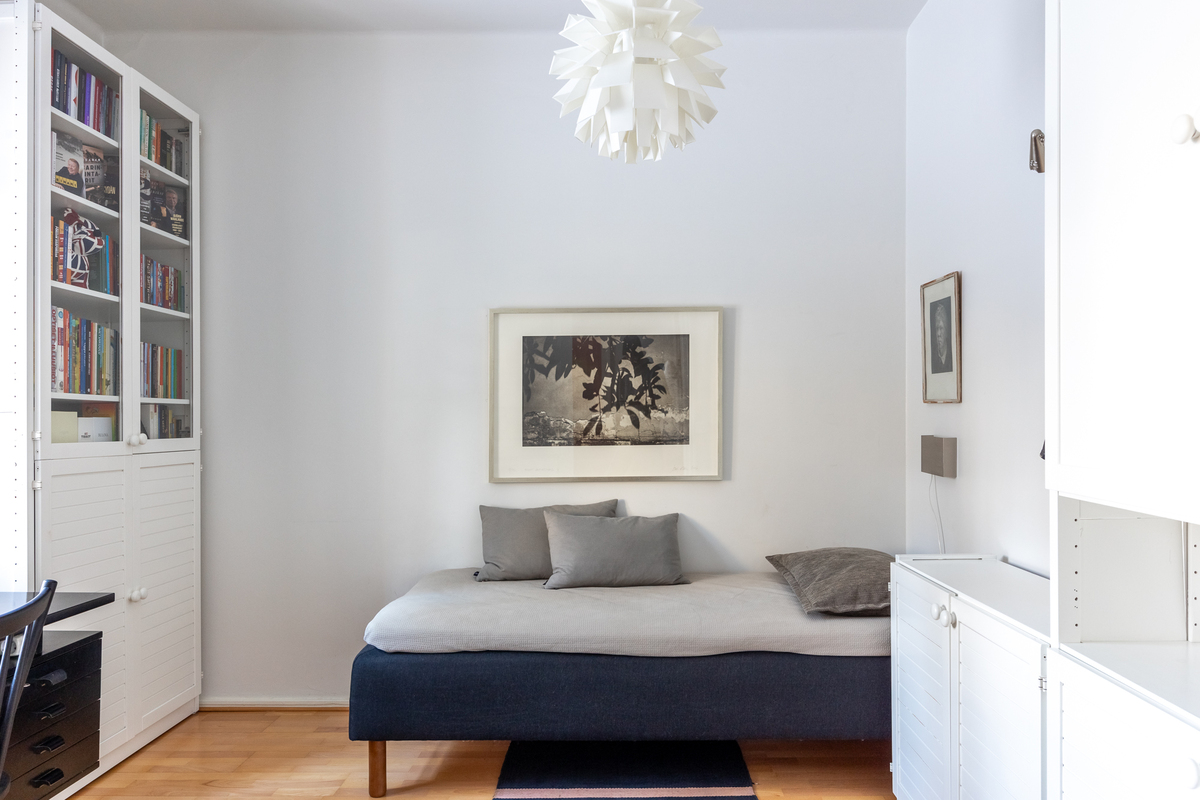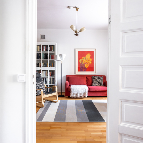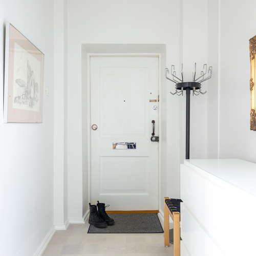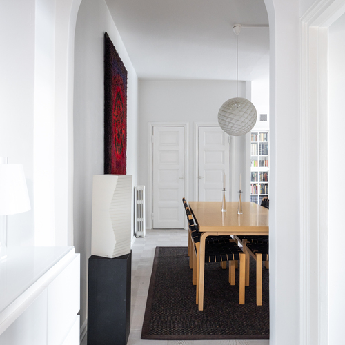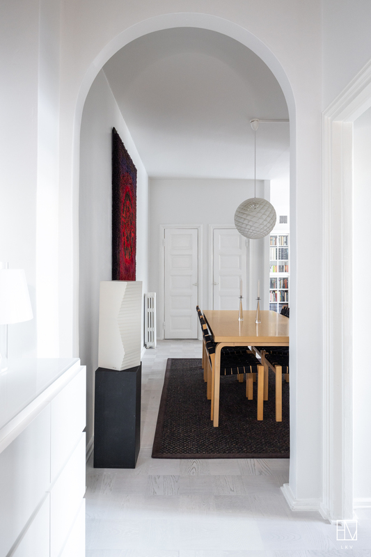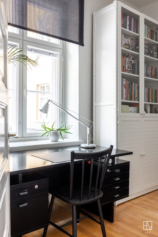 Vuonna 1928 valmistunut asunto huokuu ajalleen tyypillisiä arvokkaita piirteitä, kuten korkea huonekorkeus, leveät ikkunapenkit ja seinään upotetut valurautapatterit. Taloyhtiön näyttävä porrasaula mukailee samaa arkkitehtuuria.