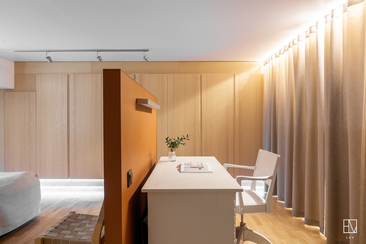 Alakerrassa on suuri huone, jossa on sähköistetty tilanjakajaseinä. Huoneessa on reilusti kaappitilaa. Erikoisuutena on myös suora käynti taloyhtiön yhteisiin tiloihin, kuten sauna- ja pyykinpesutilaan.