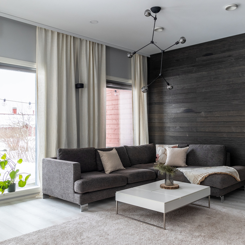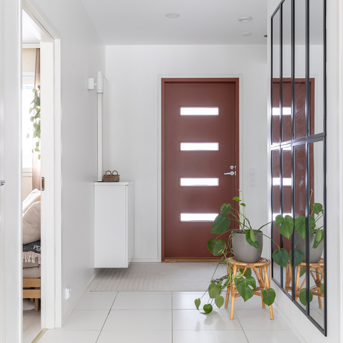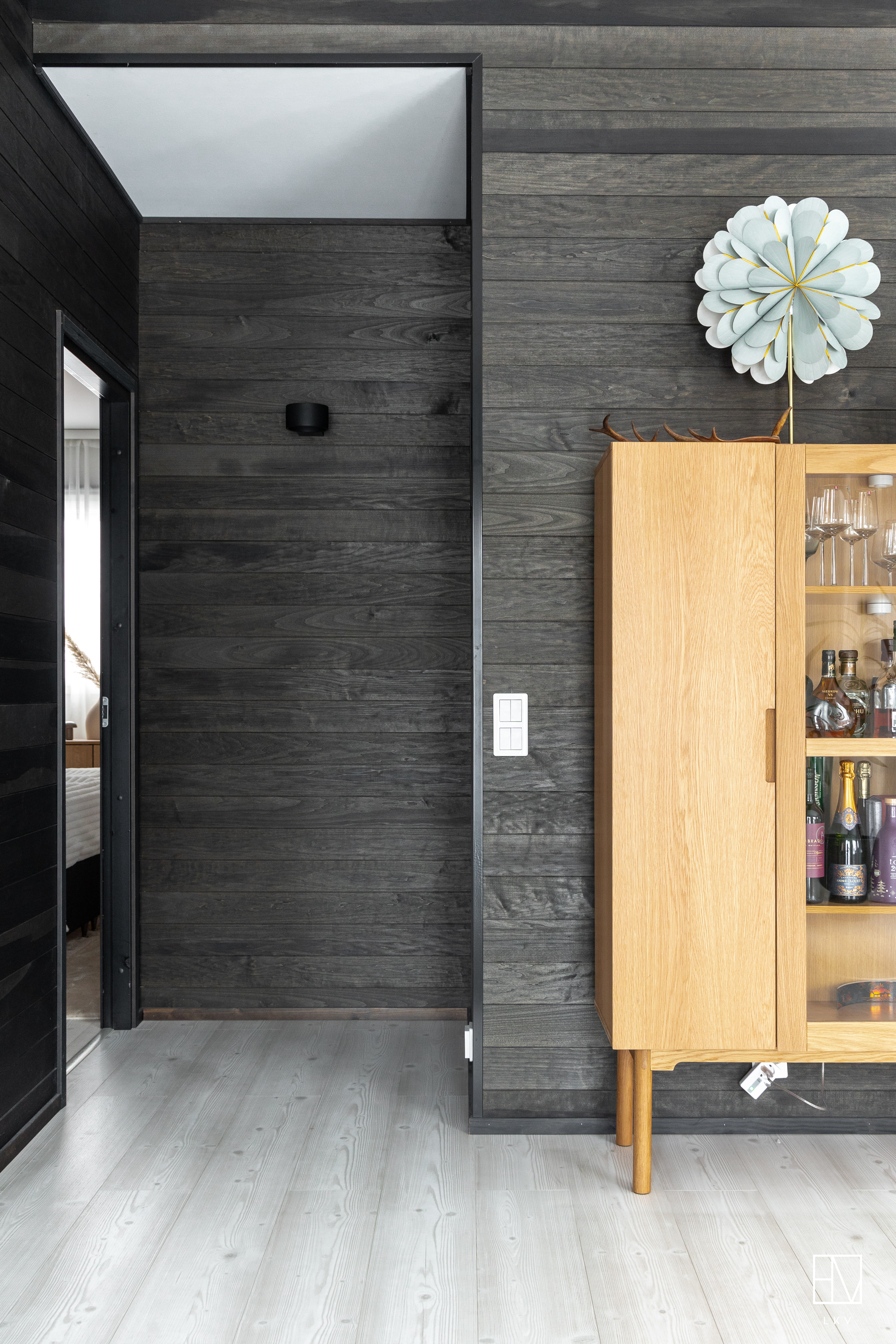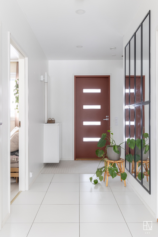 Pintamateriaalit: Sisustussuunnitelman mukaisesti asuintilojen lattiassa vinyyli, valkoinen mänty.