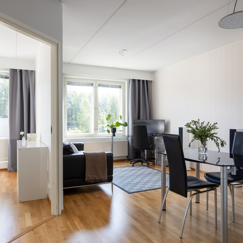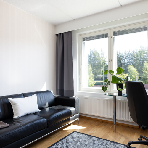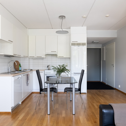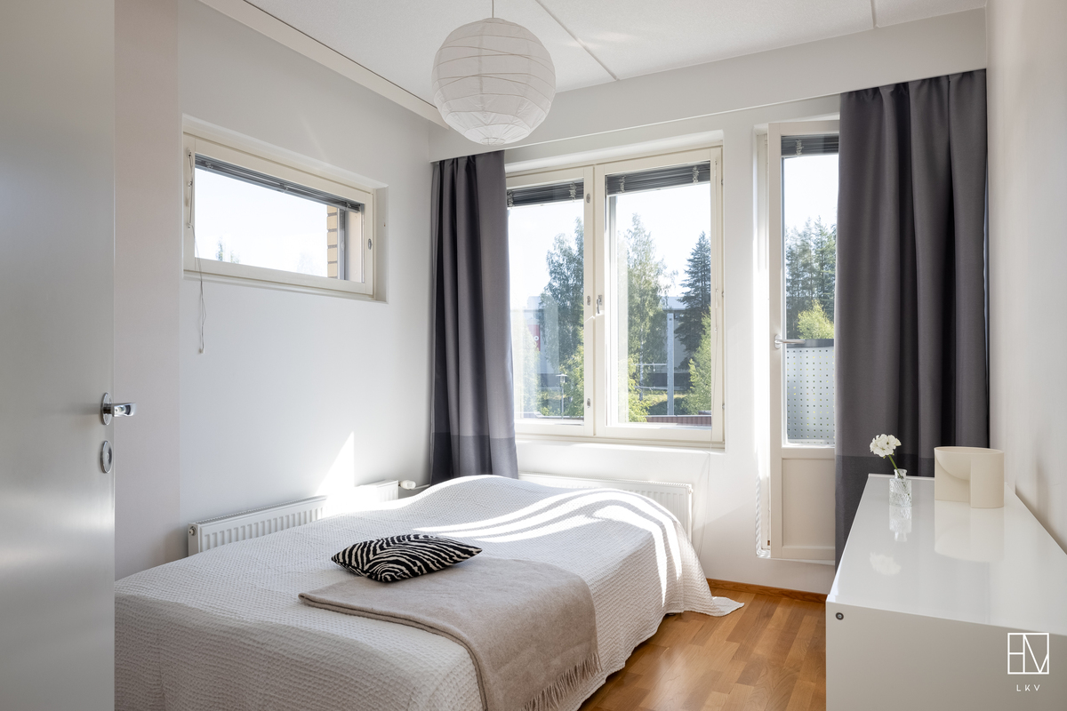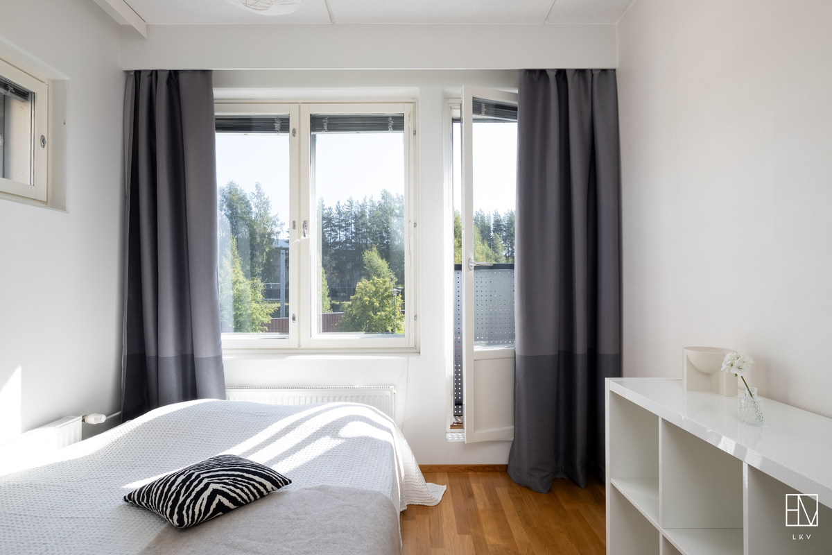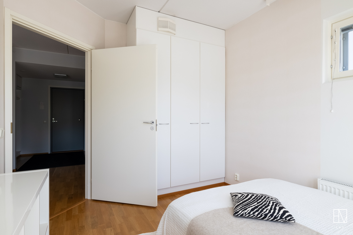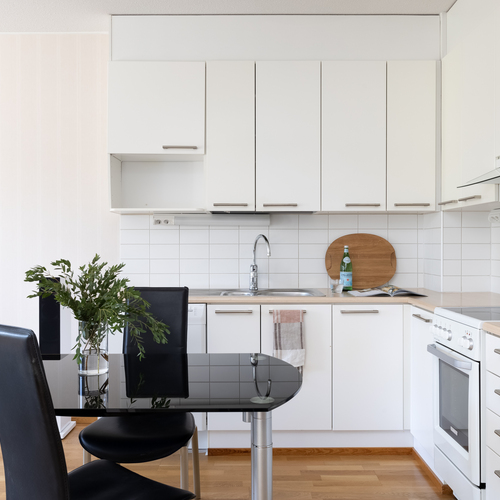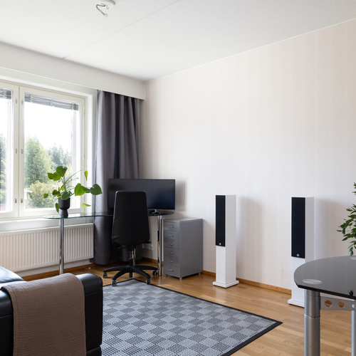 Avara ja toimiva pohjaratkaisu takaavat asuinmukavuuden. Kodin vaalea ja raikas sävymaailma, sekä kauniit parkettilattiat luovat ajattoman kokonaisuuden, jossa olohuone ja avokeittiö yhdistyvät viihtyisäksi yhtenäiseksi tilaksi.