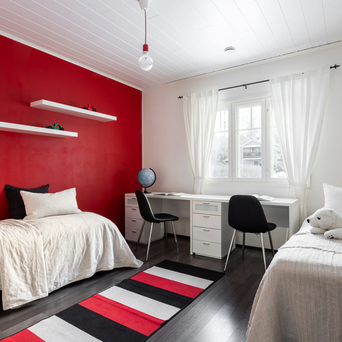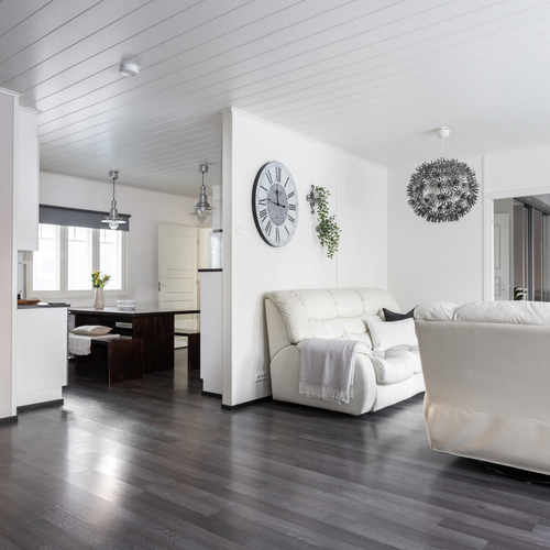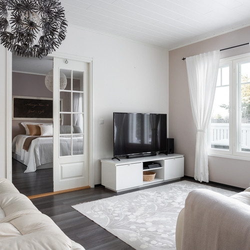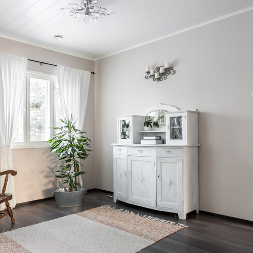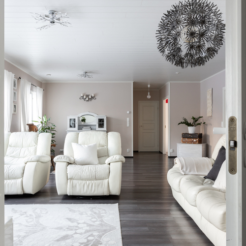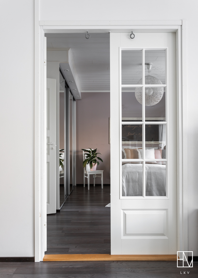 Pintamateriaalit: Asuintiloissa laminaattilattiat.