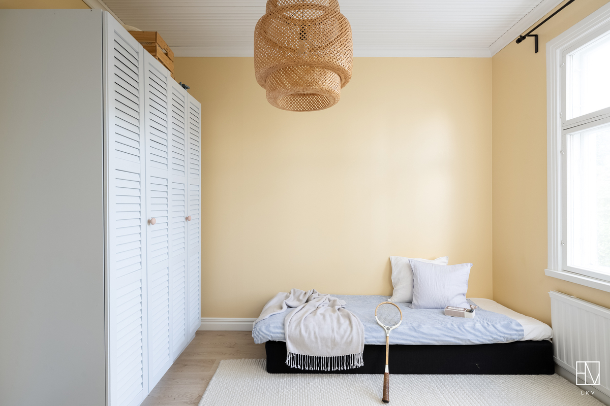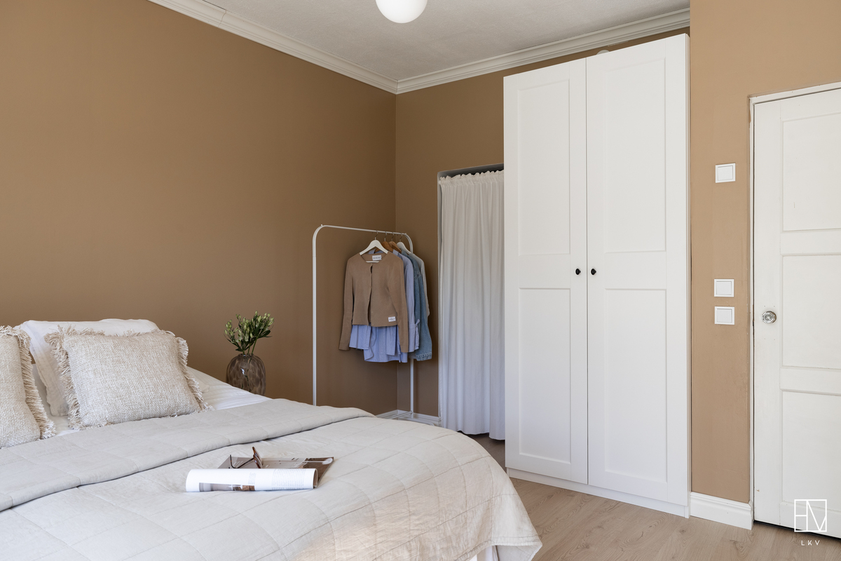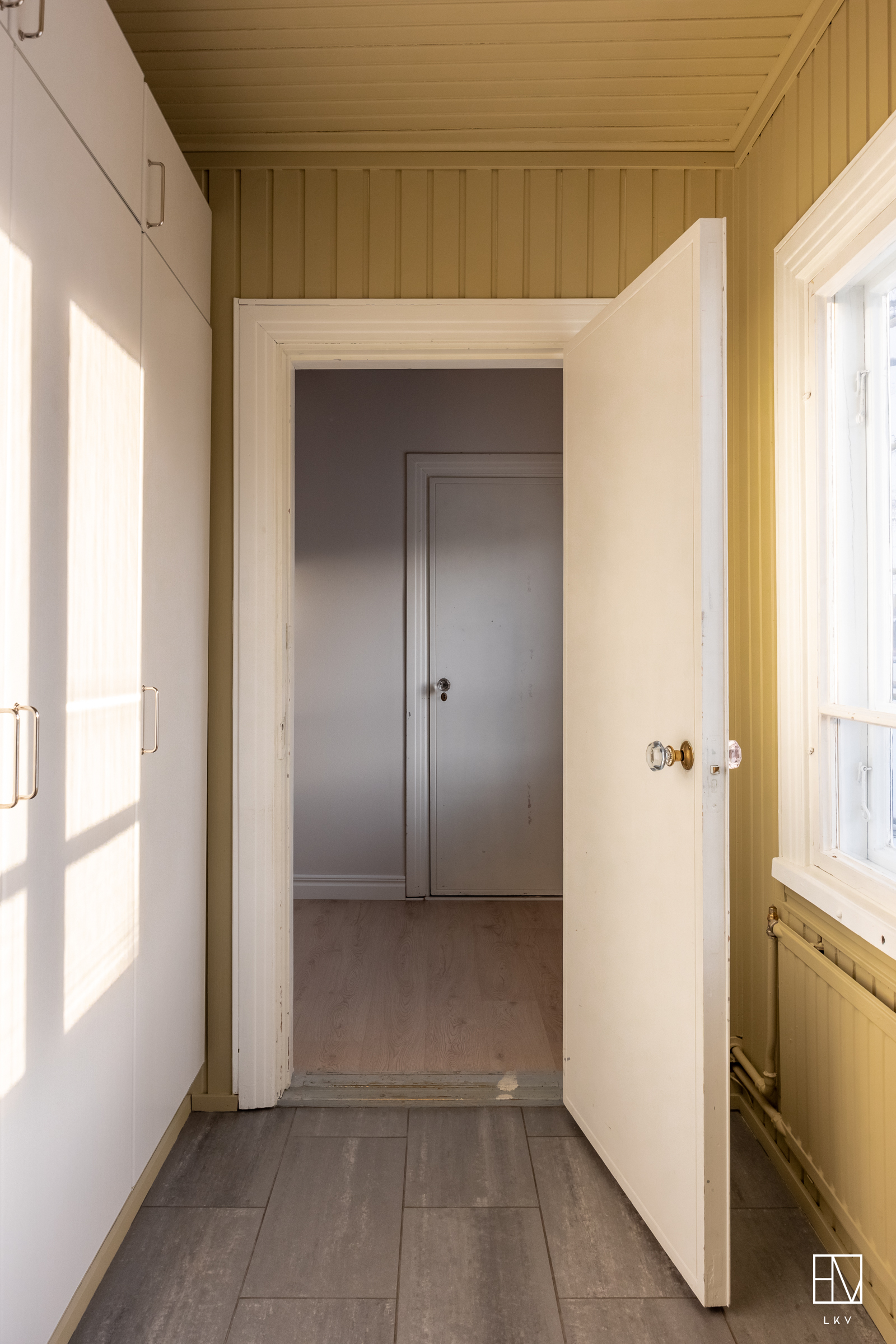 Makuuhuone 2: Päämakuuhuoneeseen on sisäänkäynti olohuoneesta. Tilaa on reilusti parisängylle. Makuuhuoneen yhteydestä löytyy myös vaatehuone. Lisäksi täältä on käynti wc/kph-tilaan. Makuuhuoneen seinäpinnat on maalattu ja uusi lattia asennettu 2022.