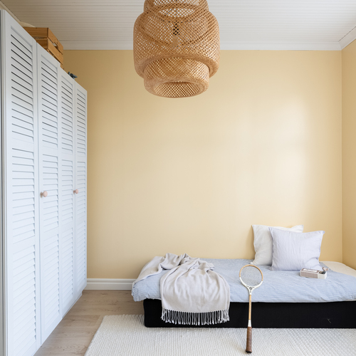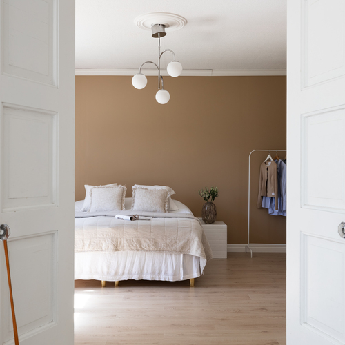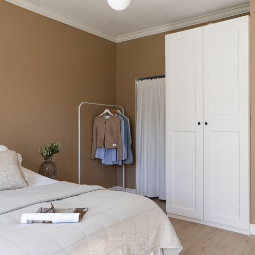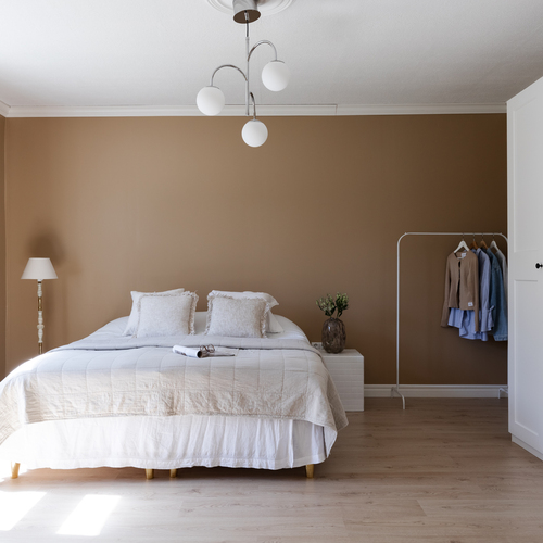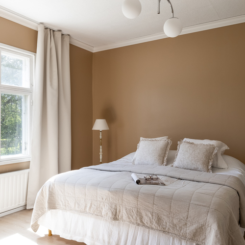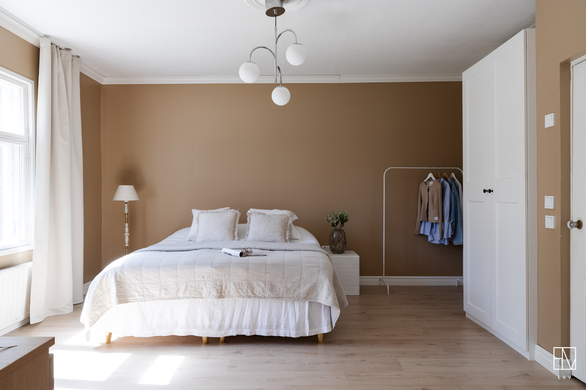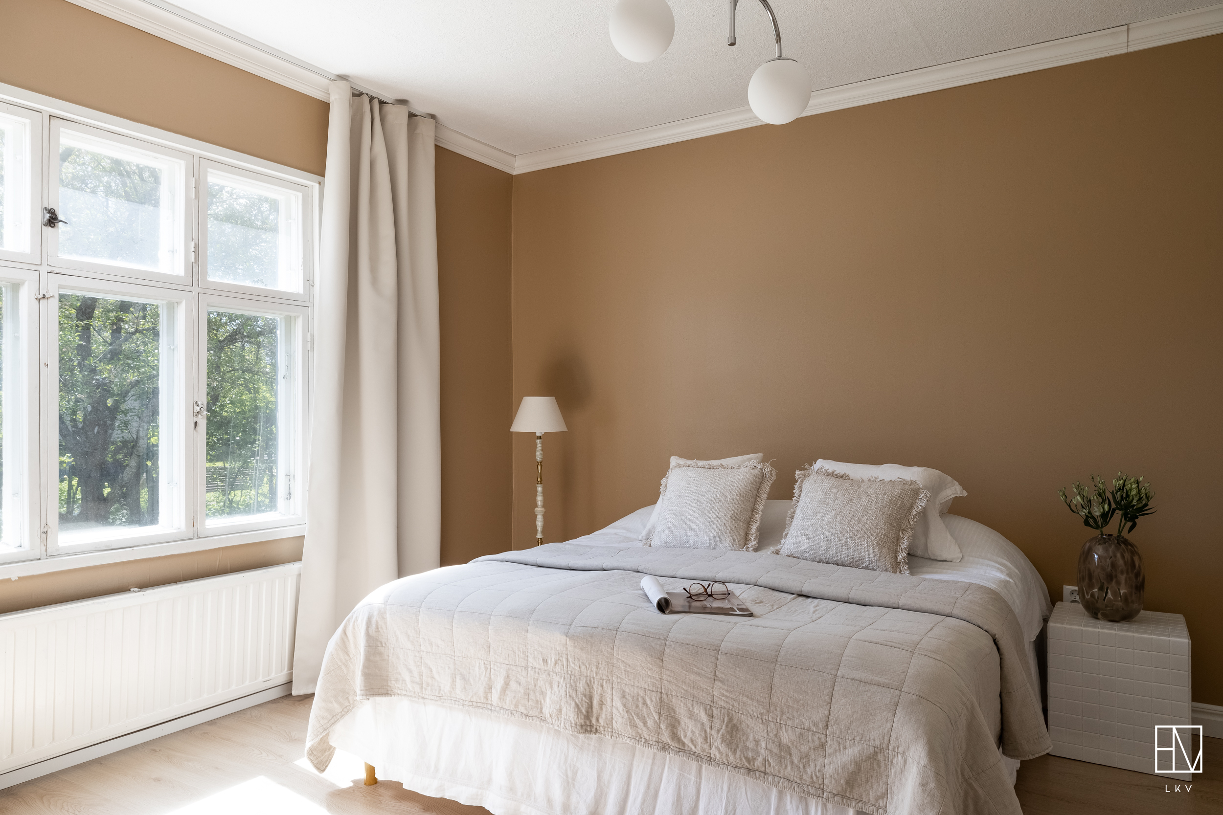 Makuuhuone 2: Päämakuuhuoneeseen on sisäänkäynti olohuoneesta. Tilaa on reilusti parisängylle. Makuuhuoneen yhteydestä löytyy myös vaatehuone. Lisäksi täältä on käynti wc/kph-tilaan. Makuuhuoneen seinäpinnat on maalattu ja uusi lattia asennettu 2022.