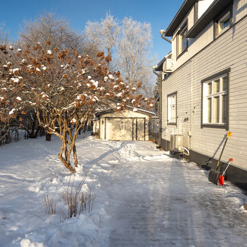 Pihassa: Asennettu sadevesiputket talon ympäri. Salaojia ei myyjän tiedon mukaan ole.