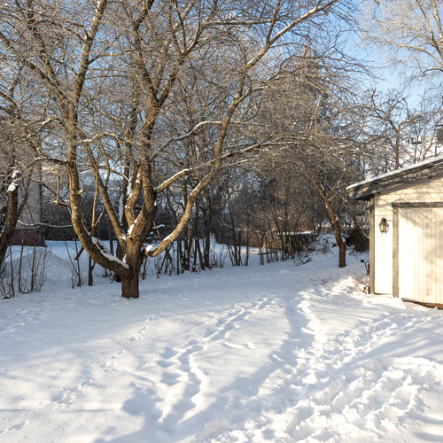 Ulkovarasto on vanha autotalli/varastorakennus.
