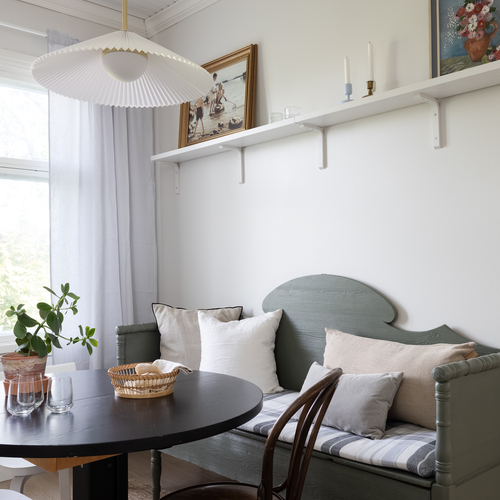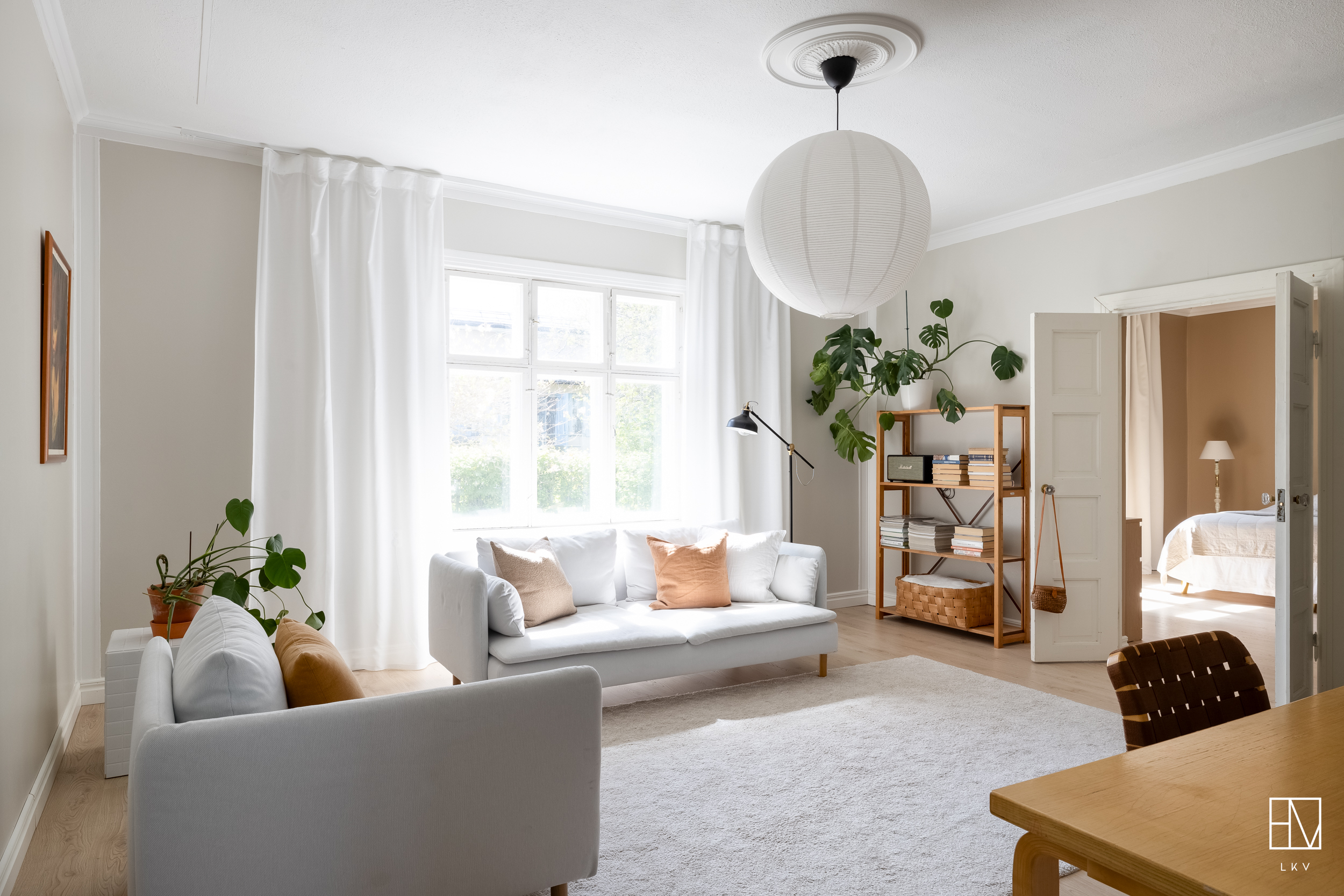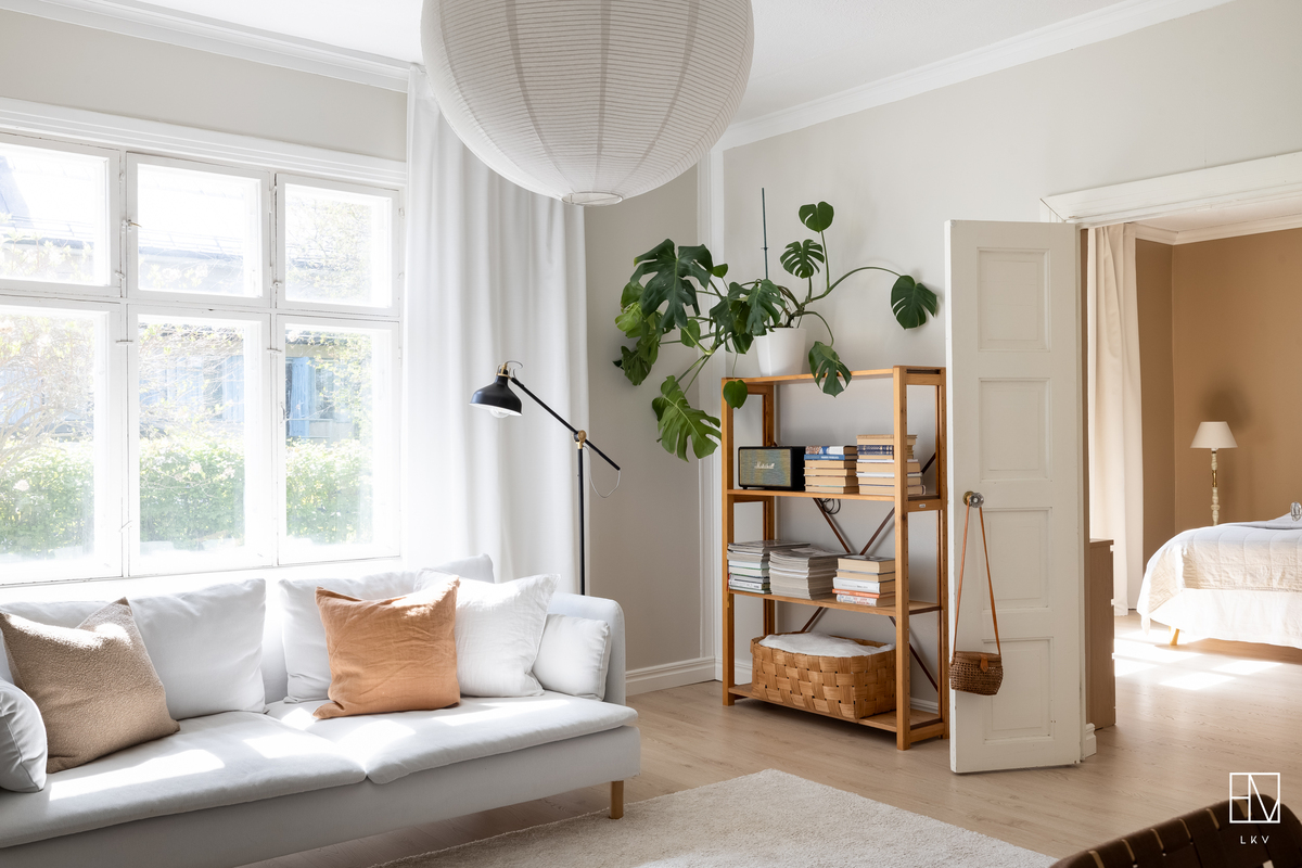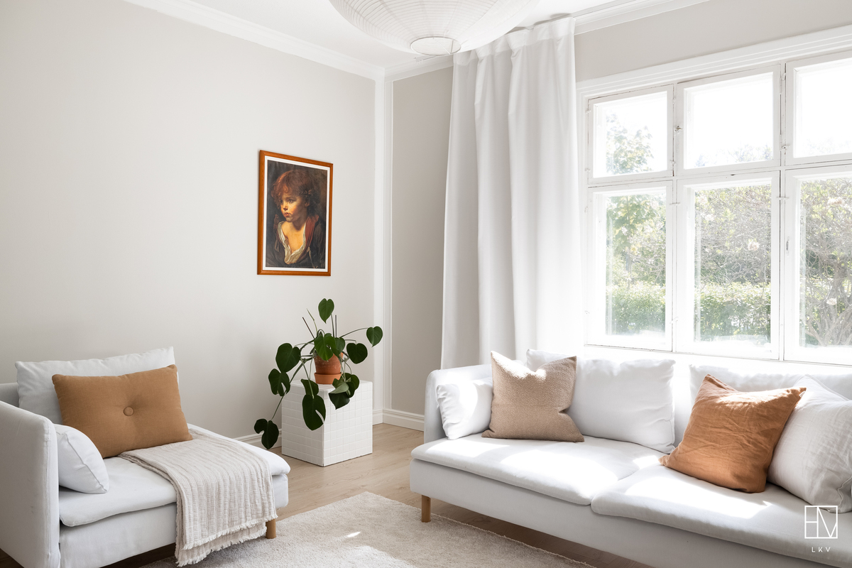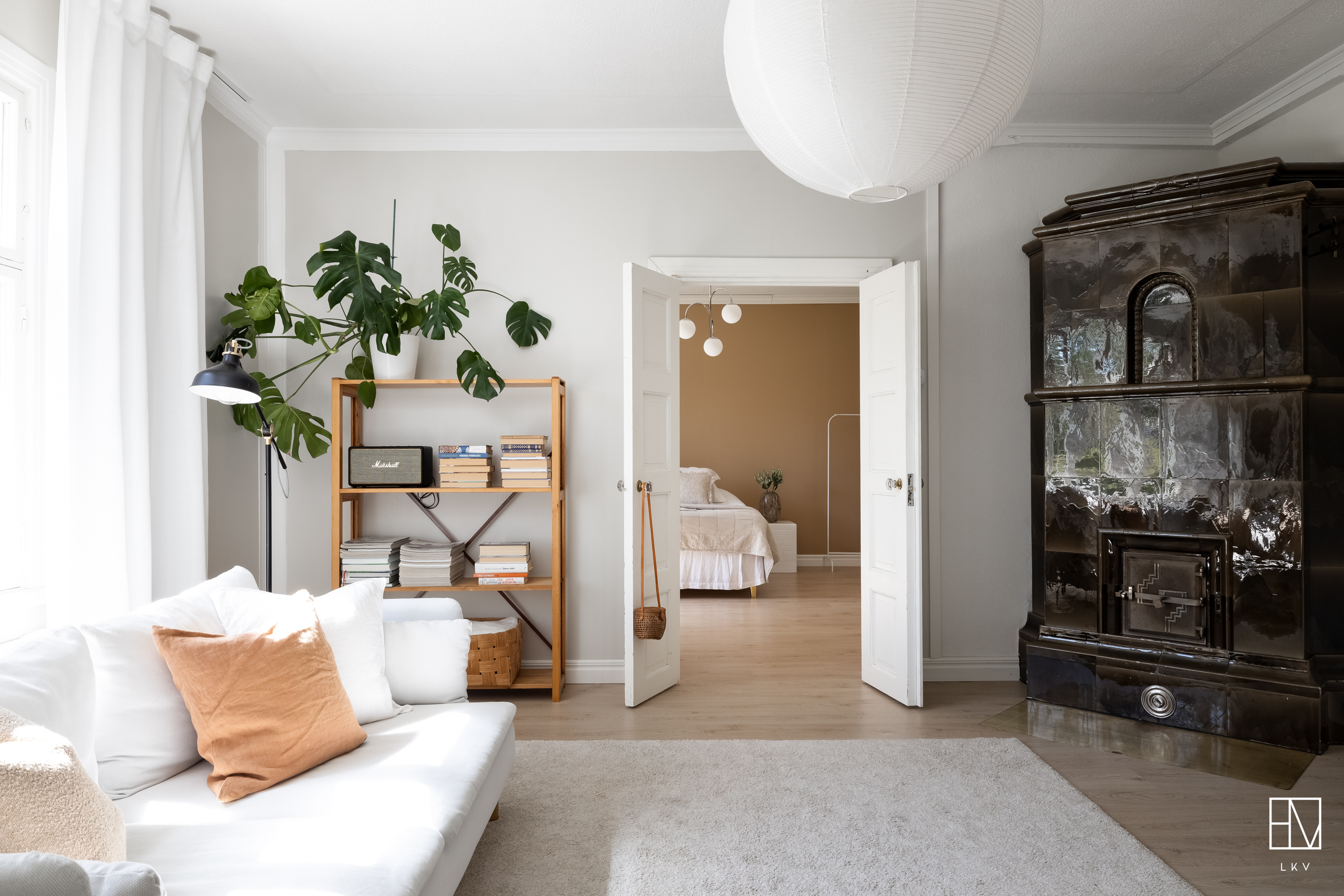 Olohuone on kodin sydän, jossa voi talvisin lämmitellä vanhan kaakeliuunin lämmössä ja kesällä ihastella ikkunasta vehreää piha-aluetta. Olohuoneessa on reilusti tilaa yhdessäoloon ja tänne on mahdollista sijoittaa isompikin sohvaryhmä.