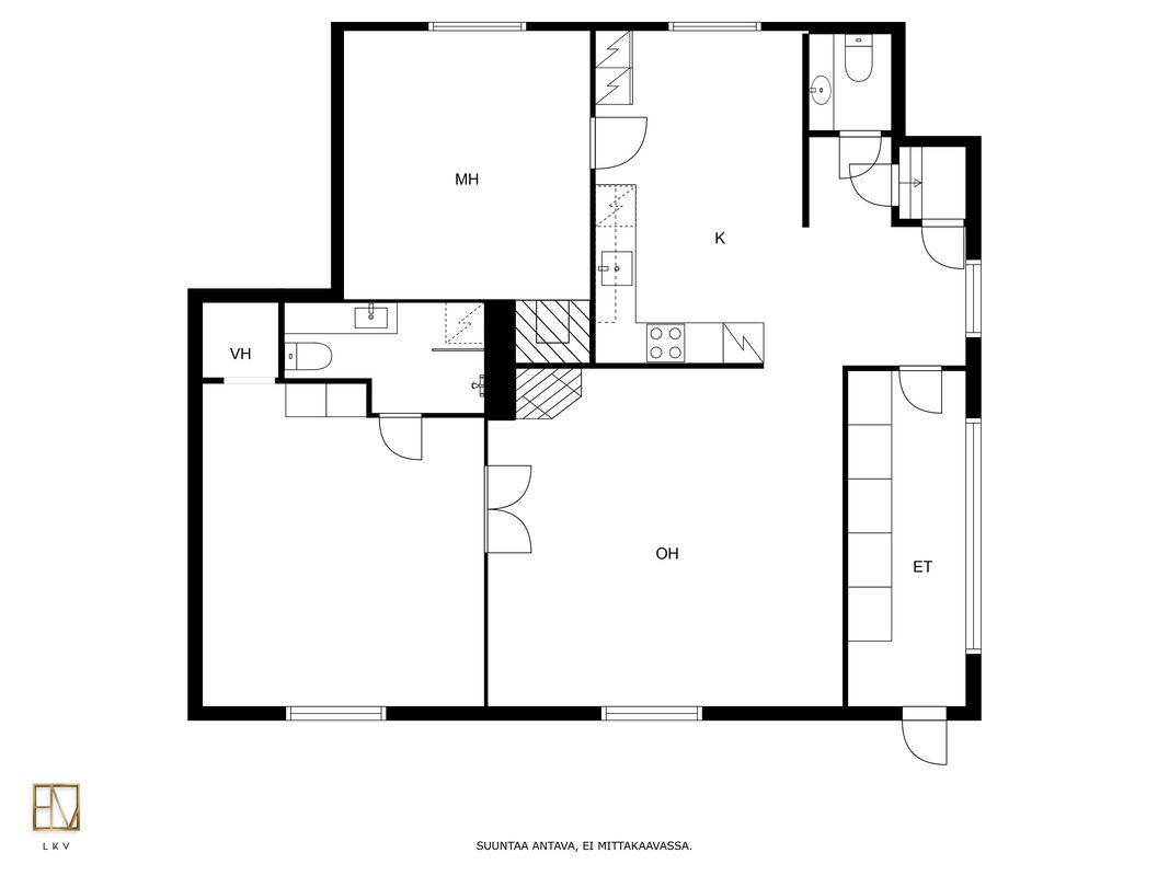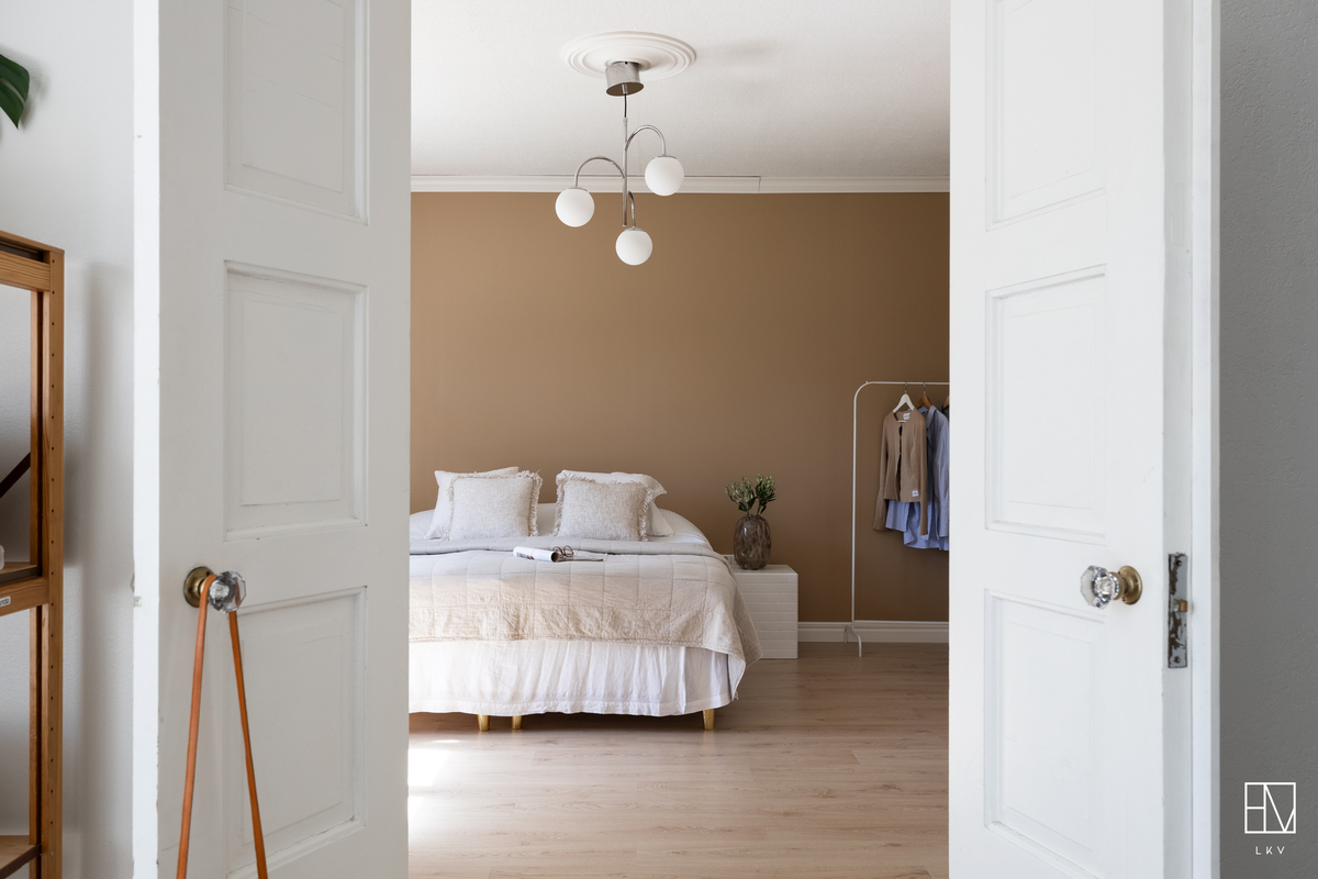 Olohuoneen pariovet kuljettavat kodin päämakuuhuoneeseen, joka on myös varsin reilun kokoinen. Täältä löytyy lisäksi vaatehuone ja kaapistotilaa. Asunnon toinen wc, sekä kylpyhuonetila sijaitsevat käytännöllisesti makuuhuoneen välittömässä läheisyydessä.