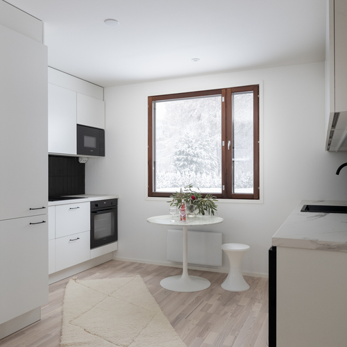 Vuonna 2025 uusittu tyylikäs Noblessan keittiö.