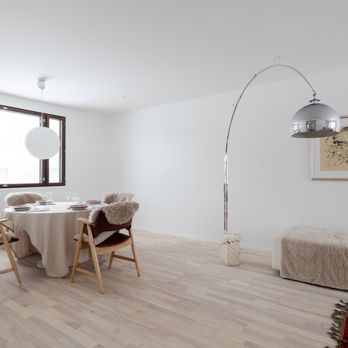 Pintamateriaalit: Asuintiloissa vuonna 2025 asennettu valkomatta saarniparketti.