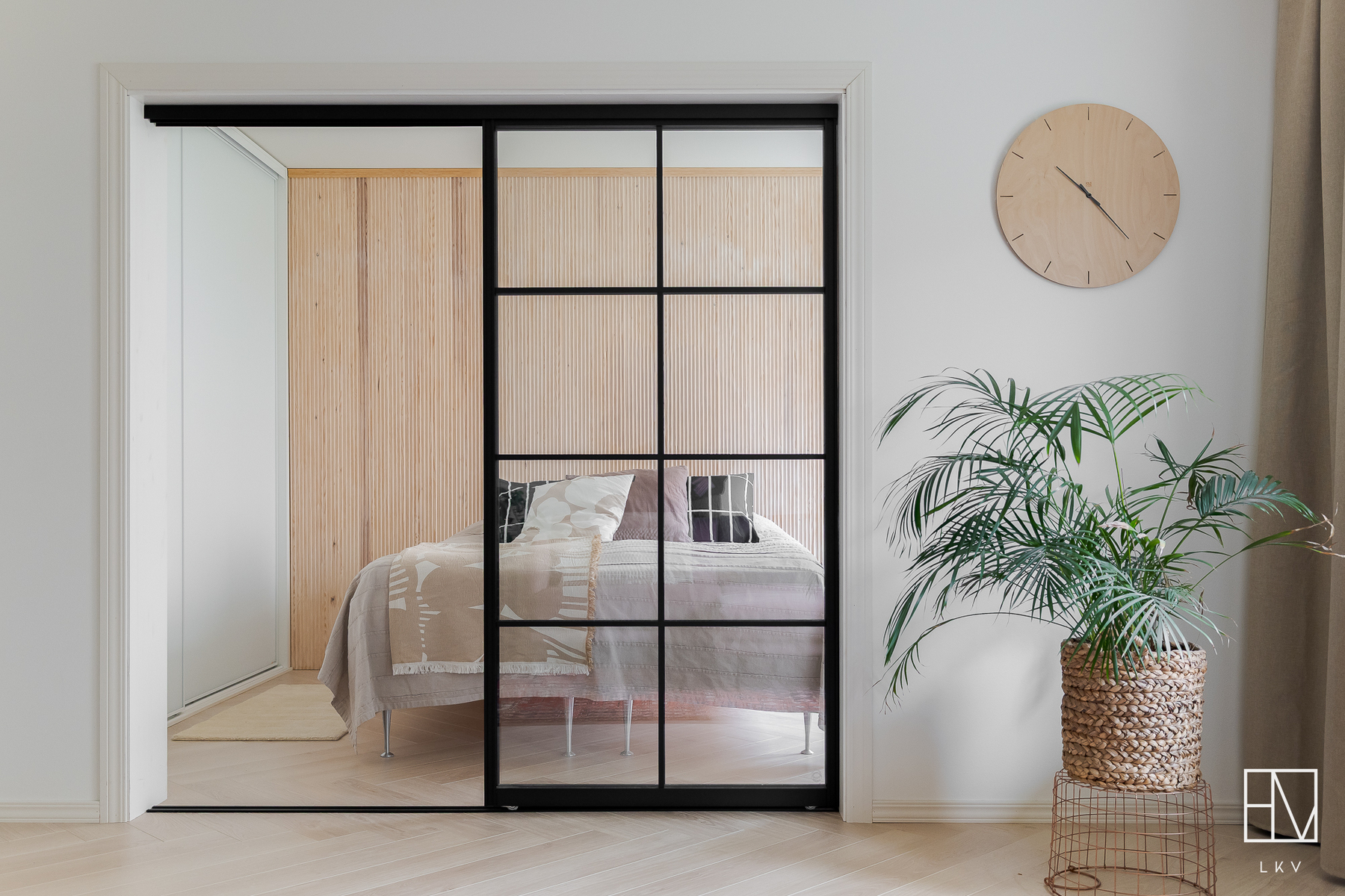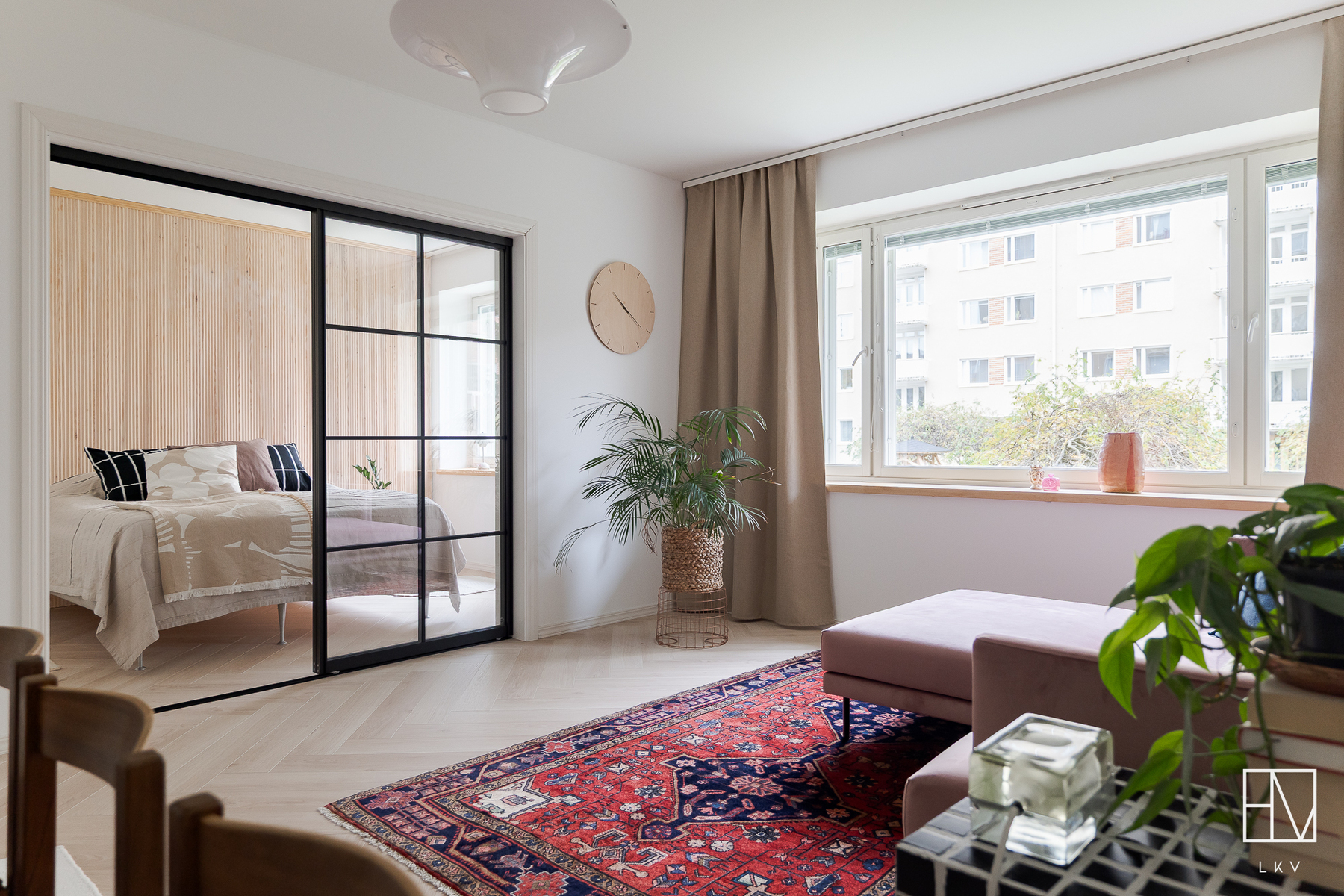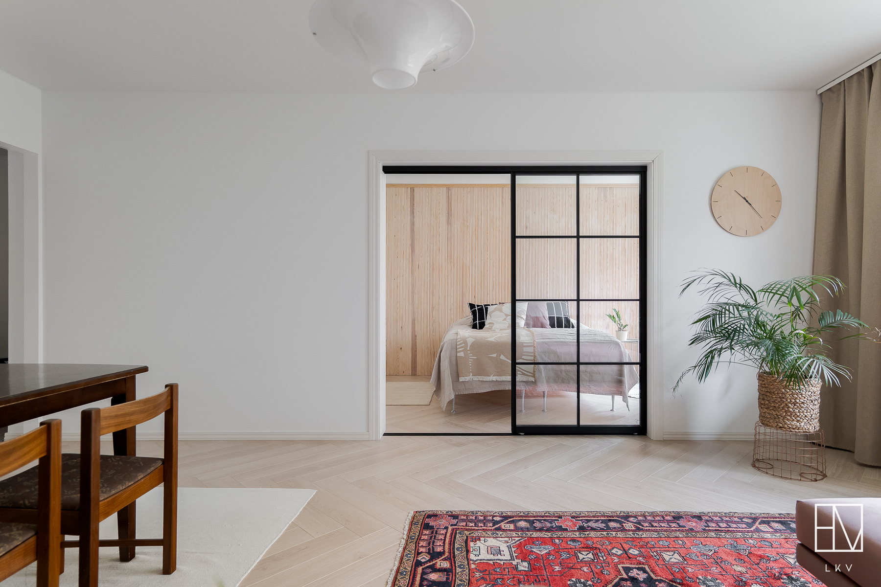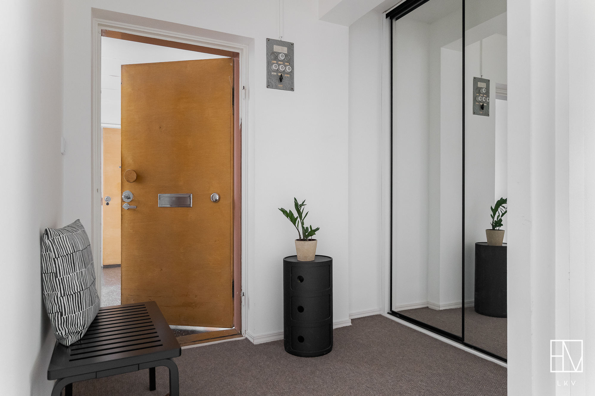Tämä kaunis koti on saanut täysin uuden ilmeen muutama vuosi sitten tehdyn remontin yhteydessä. Asunnossa on todella tilavat huoneet ja se soveltuu mainiosti monenlaiseen elämäntilanteeseen. Valoisan läpitalon huoneiston erillinen keittiö on todella näyttävä ja sieltä löytyy hyvin kaappi- ja laskutilaa sekä paikka ruokapöydälle. Tilavassa olohuoneessa ehdottomana katseenvangitsijana toimii lasiseinät, jotka erottavat olohuoneen ja päämakuuhuoneen toisistaan. Tämän lisäksi asunnosta löytyy toinen makuuhuone sekä kylpyhuone, jossa on tilaa pyykinpesukoneelle. Säilytystilaa on hyvin, sillä käytännölliset liukuovikaapistot löytyy eteisestä sekä makuuhuoneesta. Huoneistokohtaiset vintti- ja kellarikomero kuuluu myös asunnolle.