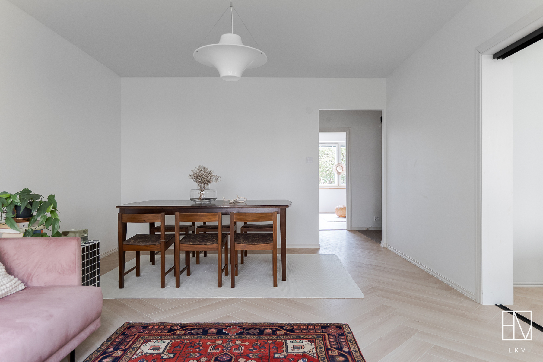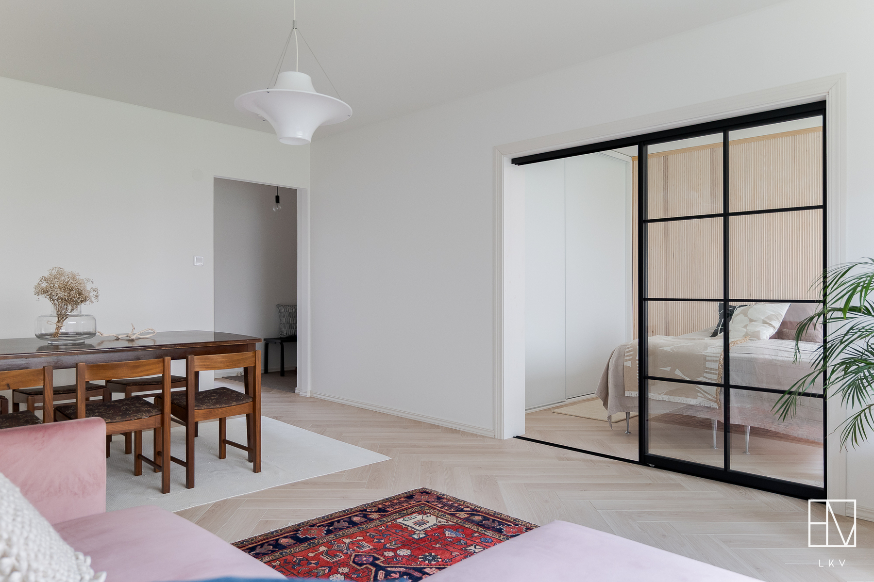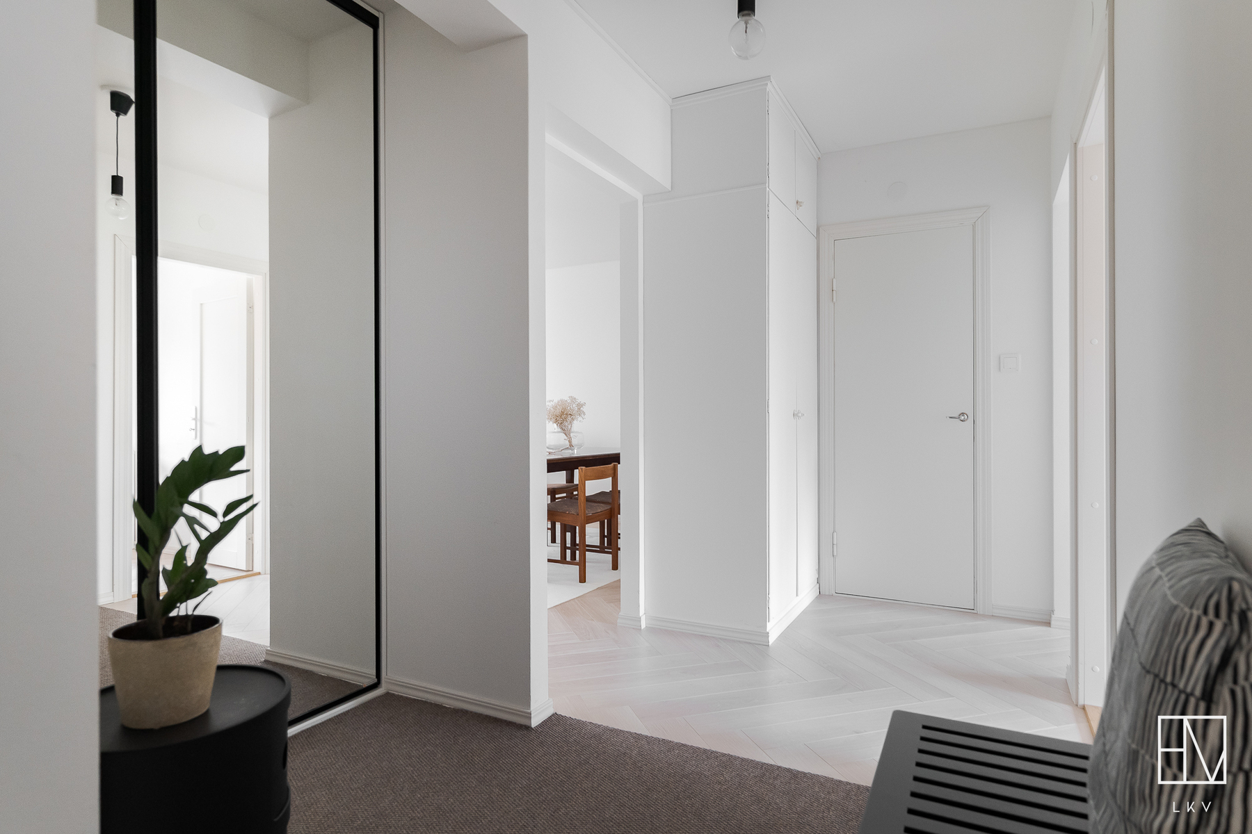 Tämä kaunis koti on saanut täysin uuden ilmeen muutama vuosi sitten tehdyn remontin yhteydessä. Asunnossa on todella tilavat huoneet ja se soveltuu mainiosti monenlaiseen elämäntilanteeseen. Valoisan läpitalon huoneiston erillinen keittiö on todella näyttävä ja sieltä löytyy hyvin kaappi- ja laskutilaa sekä paikka ruokapöydälle. Tilavassa olohuoneessa ehdottomana katseenvangitsijana toimii lasiseinät, jotka erottavat olohuoneen ja päämakuuhuoneen toisistaan. Tämän lisäksi asunnosta löytyy toinen makuuhuone sekä kylpyhuone, jossa on tilaa pyykinpesukoneelle. Säilytystilaa on hyvin, sillä käytännölliset liukuovikaapistot löytyy eteisestä sekä makuuhuoneesta. Huoneistokohtaiset vintti- ja kellarikomero kuuluu myös asunnolle.