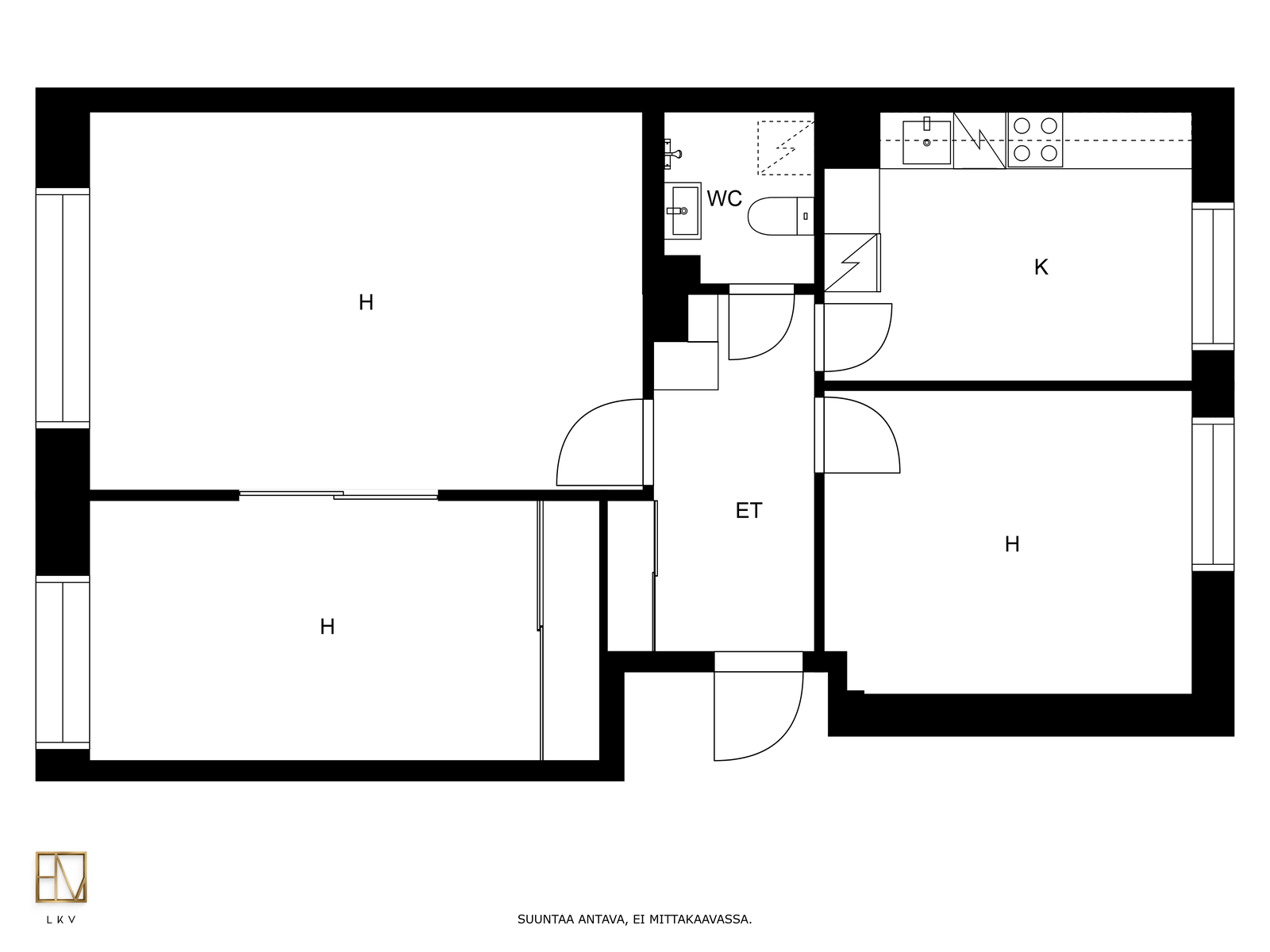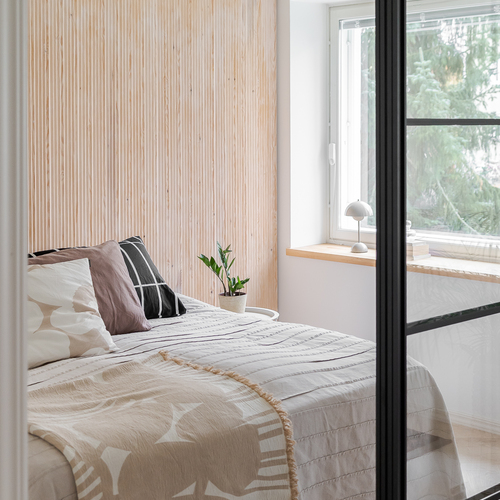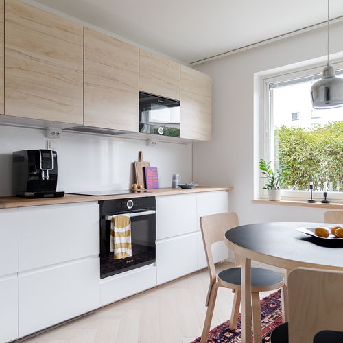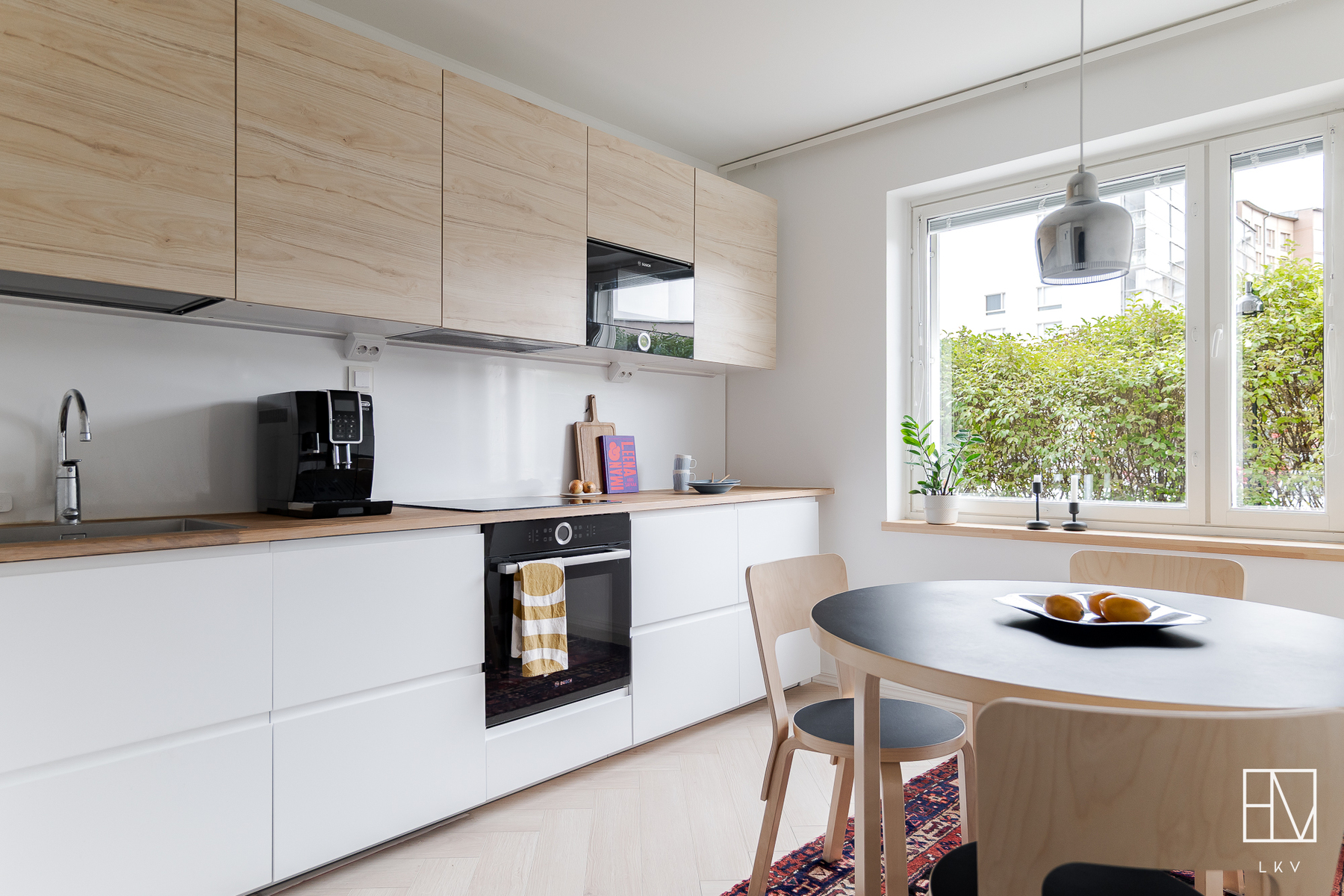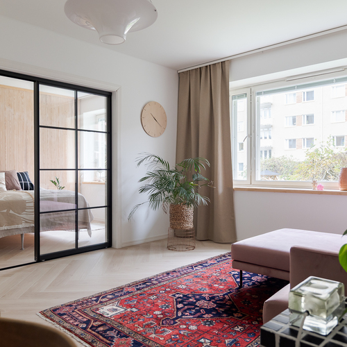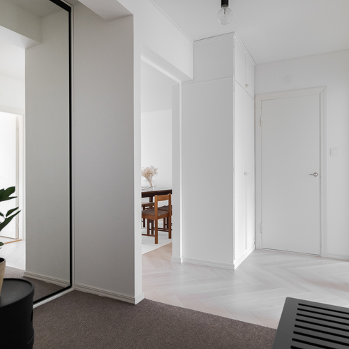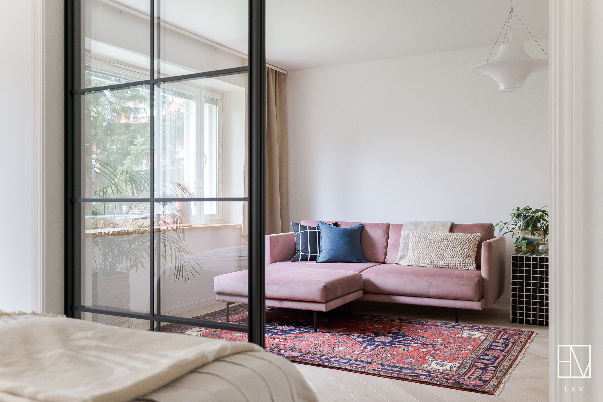 Tämä kaunis koti on saanut täysin uuden ilmeen muutama vuosi sitten tehdyn remontin yhteydessä. Asunnossa on todella tilavat huoneet ja se soveltuu mainiosti monenlaiseen elämäntilanteeseen. Valoisan läpitalon huoneiston erillinen keittiö on todella näyttävä ja sieltä löytyy hyvin kaappi- ja laskutilaa sekä paikka ruokapöydälle. Tilavassa olohuoneessa ehdottomana katseenvangitsijana toimii lasiseinät, jotka erottavat olohuoneen ja päämakuuhuoneen toisistaan. Tämän lisäksi asunnosta löytyy toinen makuuhuone sekä kylpyhuone, jossa on tilaa pyykinpesukoneelle. Säilytystilaa on hyvin, sillä käytännölliset liukuovikaapistot löytyy eteisestä sekä makuuhuoneesta. Huoneistokohtaiset vintti- ja kellarikomero kuuluu myös asunnolle.