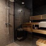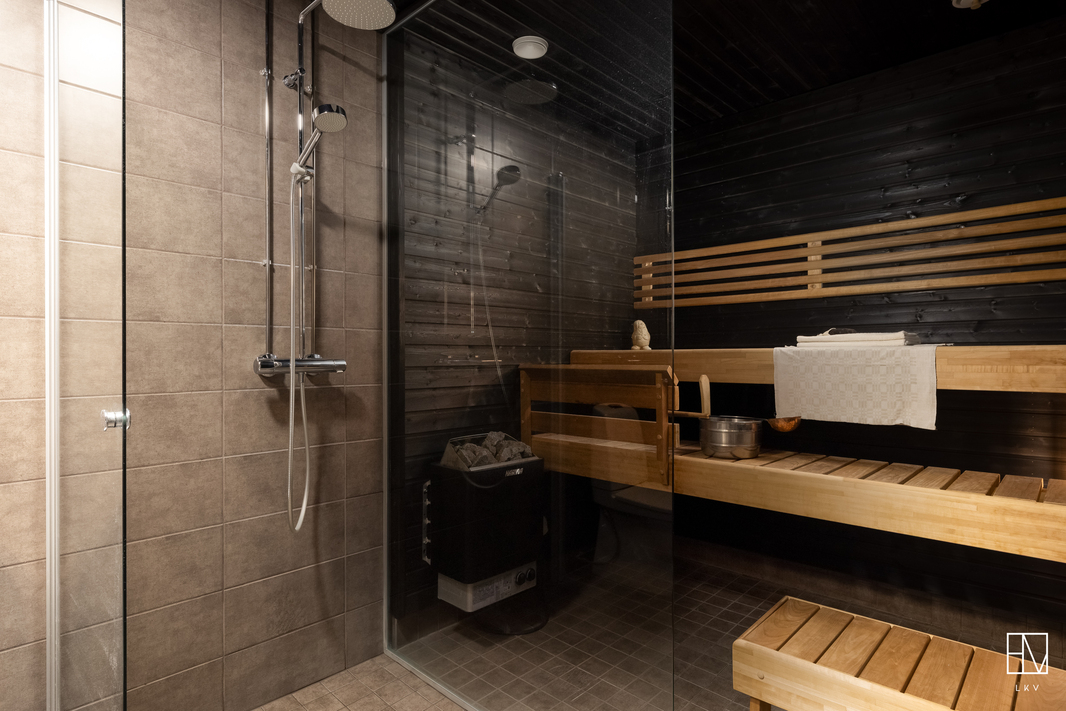 | Tehdyt remontit | Asunnossa on tehty mittavasti muutostöitä rakennusvaiheessa, mm. asunnon kaapistot, keittiö ja sen kodinkoneet, seinien väri ja lattiat, kylpyhuonelaatoitukset, kaapistot sekä sadesuihku ja saunan materiaalimuutokset. |