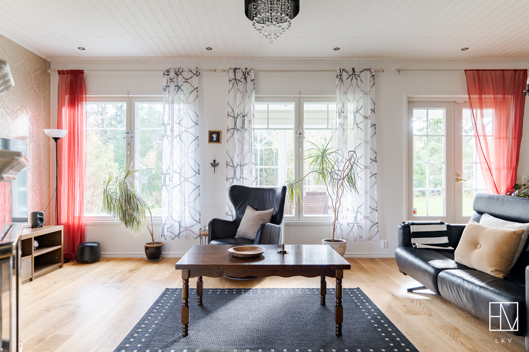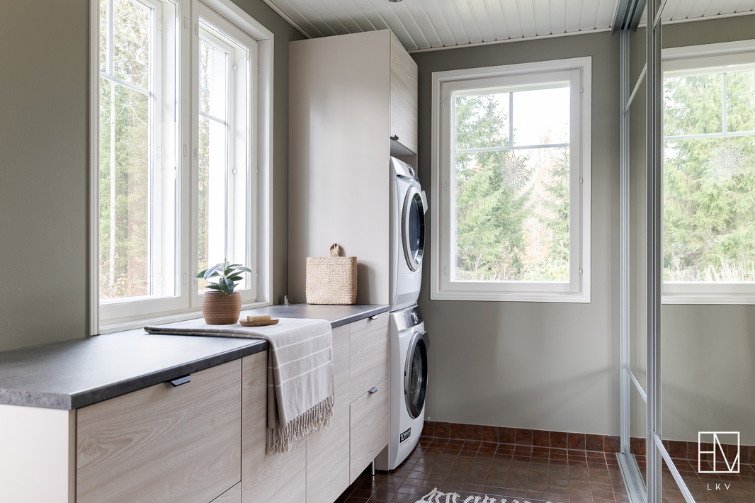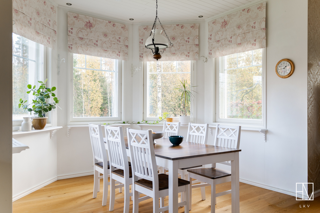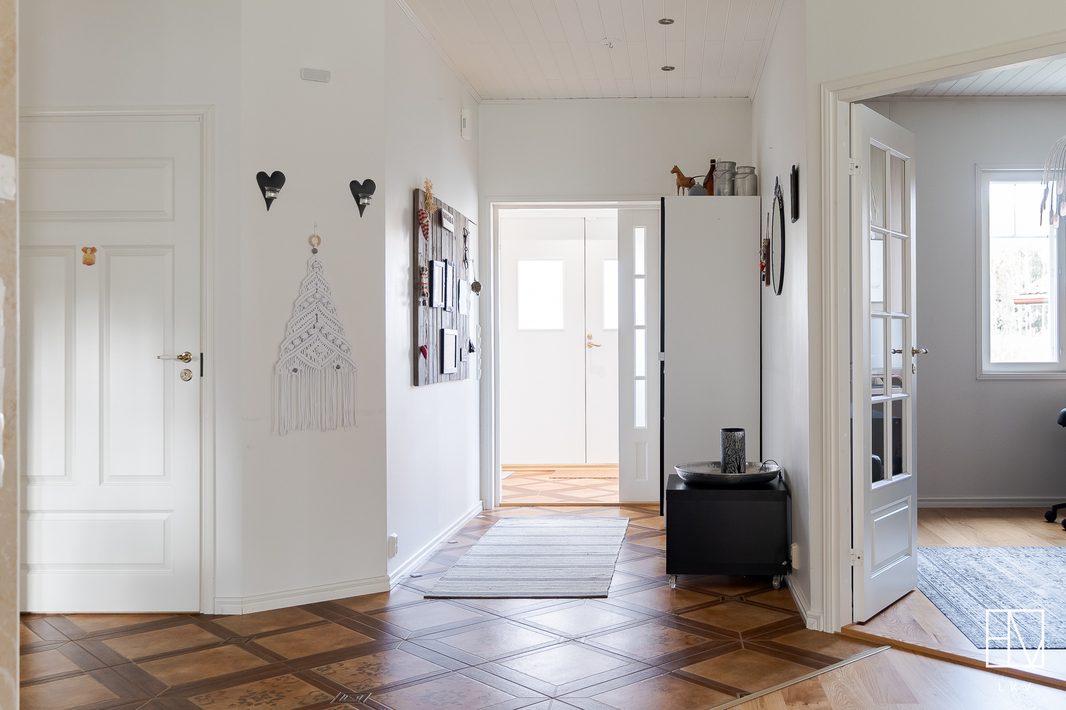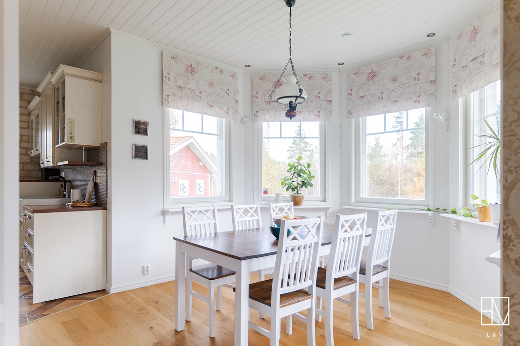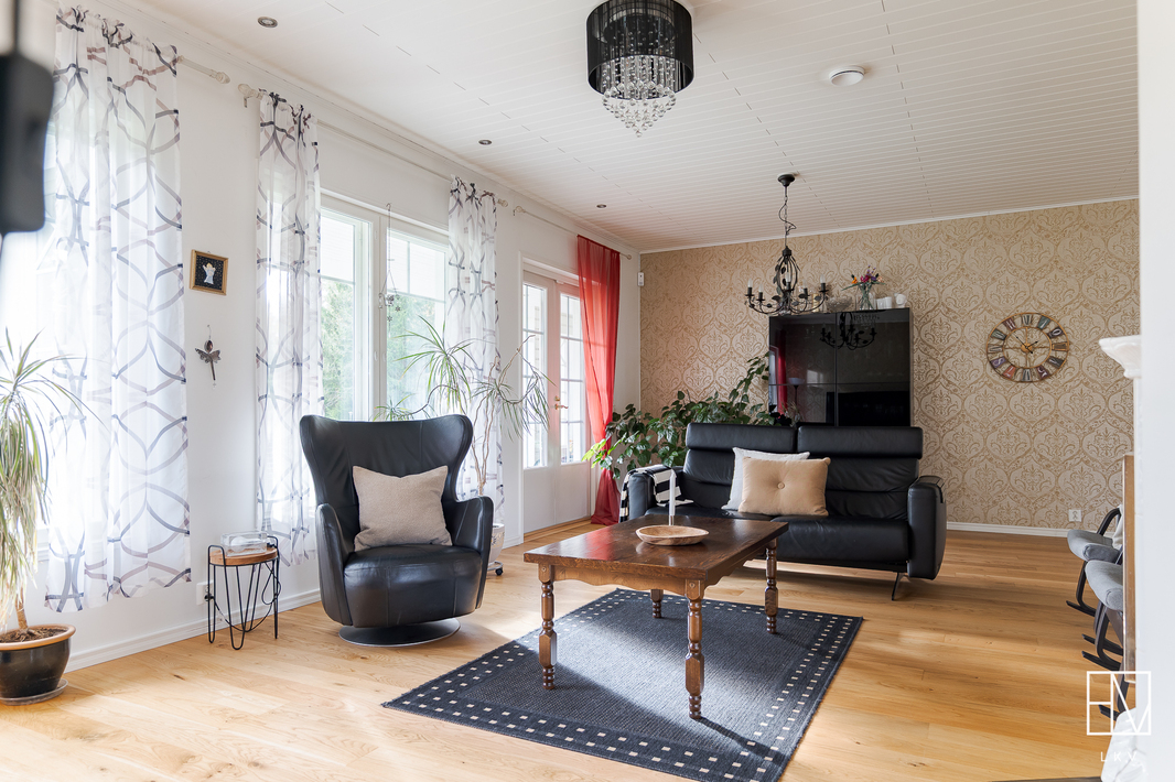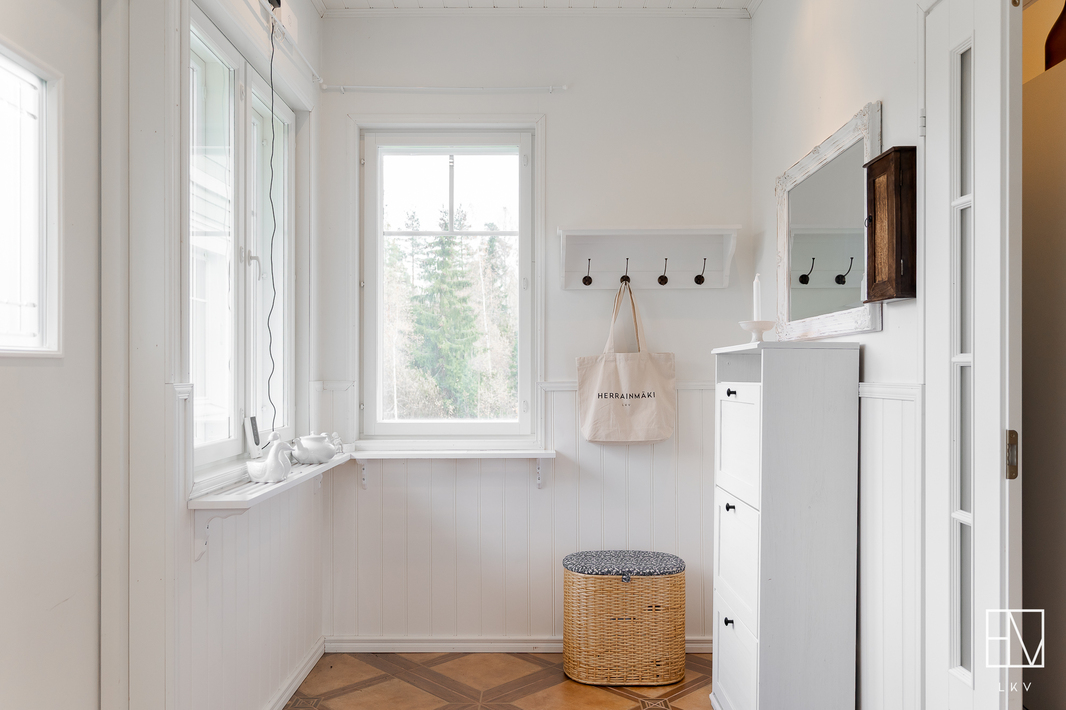 | Esittelyteksti | Nyt myynnissä harvinainen pala Anian paratiisia vain 15 minuutin päässä Pirkkalan keskustasta! Tervetuloa ihastumaan tähän vuonna 2011 valmistuneeseen omakotitaloon Pirkkalan Aniassa, josta vapautuu vain harvoin koteja myyntiin! Ainoastaan 15 minuutin päässä Pirkkalan keskustasta seisoo kaunis puurunkoinen maalämpötalo, jota on rakkaudella pidetty. Talo sijaitsee omalla, peräti 7360 m2 tontilla, joka on kauttaaltaan aidattu soveltua mitä parhaimmin niin lapsiperheille kuin lemmikkitalouksille. Maalämmön tukena on aurinkoenergia ja lämmitys on toteutettu vesikiertoisella lattialämmityksellä. Pihapiiriin saapuessasi heti vasemmalla on iso kahden auton autotalli, jonka yhteydessä on runsaasti varastotilaa. OIkealla on sievä grillikota ja suloinen leikkimökki kutsuu perheen pienimmät leikkimään. Asuinrakennusta koristavat kauniit ristikkoikkunat ja yleisilme on erittäin siisti ja huoliteltu. Sisäänkäyntejä on talossa useita. Kodin vasemmasta päädystä pääset suoraan pesualtaalla varustettuun kuraeteiseen, joka on käytännöllisesti kodinhoitohuoneen yhteydessä. Kodinhoitohuone on jokaisen perheen unelma - paljon luonnonvaloa ja hyvät säilytystilat, unohtamatta paikkaa pesutornille. Kaapistoihin on valikoitunut kauniit sävyt ja pyykkinhuollon lomassa pääset nauttimaan seesteisistä luonnonmaisemista. Kodinhoitohuoneen vieressä oleva pukuhuone saattelee sinut kahdella suihkulla varustettuun kylpyhuoneeseen ja tyylikkääseen saunaan. TIlat sykähdyttävät normaalia suuremmalla huonekorkeudellaan ja kauniit mosaiikkiyksityiskohdat viimeistelevät kokonaisuutta. Talossa on yhteensä kolme makuuhuonetta ja iso päämakuuhuone on suorastaan vertaansa vailla. Makuuhuoneen yhteydessä on suuri vaatehuone ja oma kylpyhuone tassuammeella, sekä kahdella altaalla tarjoaa todella ylellistä tunnelmaa. Jokaiseen makuuhuoneeseen on valikoitunut sievät tapetit ja lattioita koristavat parketit. Valoisassa olohuoneessa mahtuu kokoontumaan suurempikin perhe ja Uuniseppien varaavan takan äärelle on hyvä pysähtyä nauttimaan hämärtyvistä syysilloista. Olohuone yhdistyy ruokailutilan kautta vaaleaan keittiöön, jonka viehättävät yksityiskohdat, kuten vitriinikaapit ja tiiliseinä jatkavat kodin harmonista tunnelmaa. Keittiön ikkunasta pilkistävä ulkosaunarakennus antaa mahdollisuuksia moneen! Rakennuksessa on iso tupa, joka soveltuu täydellisesti esimerkiksi vieraiden majoittamiseen, wc-istuimella varustettu pukuhuone sekä puukiukaalla viimeistelty sauna tarjoten mitä parhaimmat löylyt. Kokemuksen kruunaa oma palju, josta käsin nautit upeista pakkasilloista ympäröivää luontoa ja tähtitaivasta ihaillen. Tältä sijainnilta on harvoin taloja myynnissä, eikä ihme, sillä alueella viihdytään pitkään! Sijainti on mahtava yhdistelmä luontoa, mutta täältä ajat nopeasti niin Pirkkalan kuin esimerkiksi Lempäälän suuntaan. Koulukyyti hoitaa lasten kuljetukset ja linja-auto kyyditsee arkena. Tervetuloa tutustumaan tähän valloittavaan kotiin! Esittelyt ja lisätiedot: Heini Salminen Ylempi kiinteistönvälittäjä, YKV, LKV 0400-769212 | heini.salminen@herrainmaki.fi |