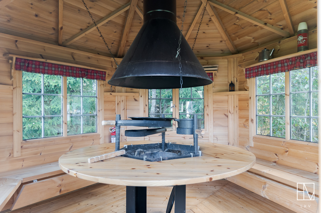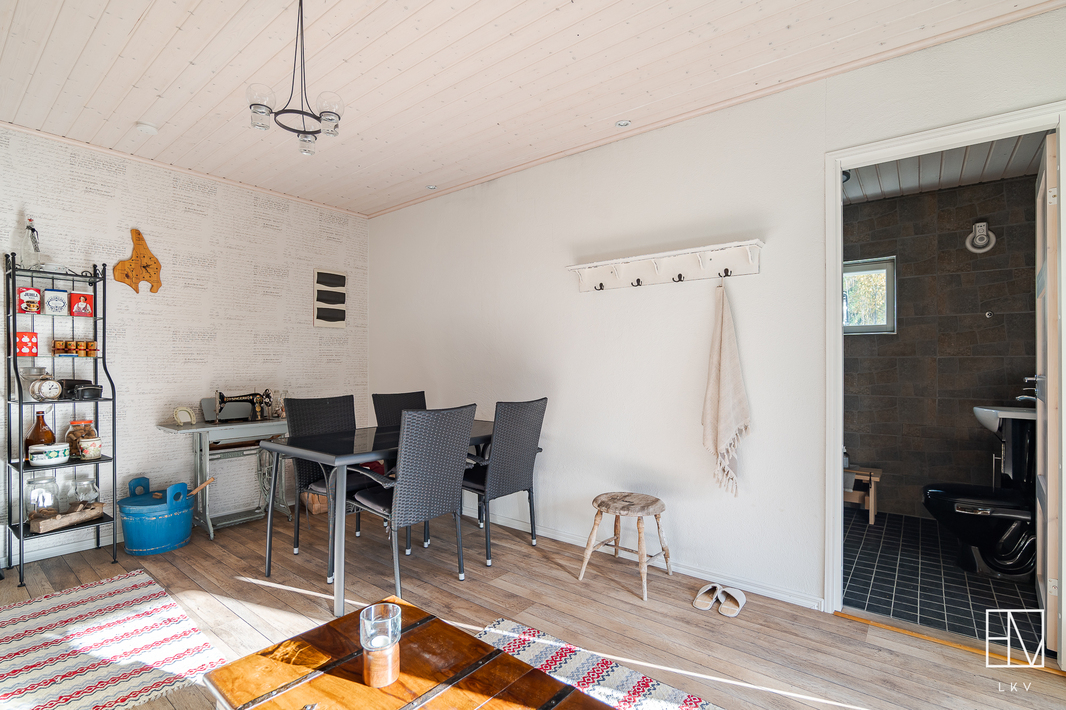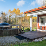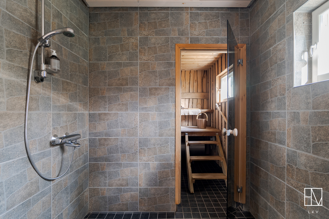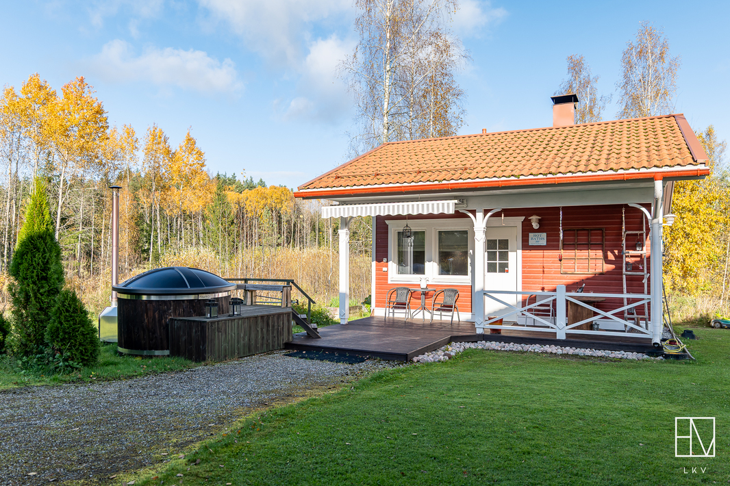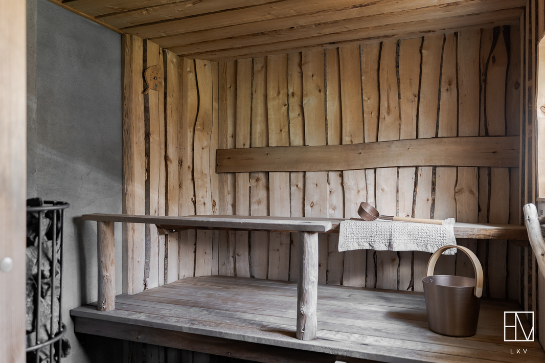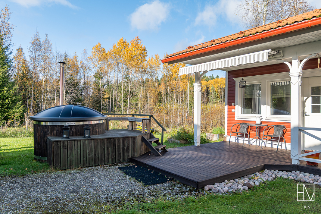 | Saunan kuvaus | Lisäksi upea ulkosauna, jossa on puukiuas ja rakennuksen edustalla palju. |