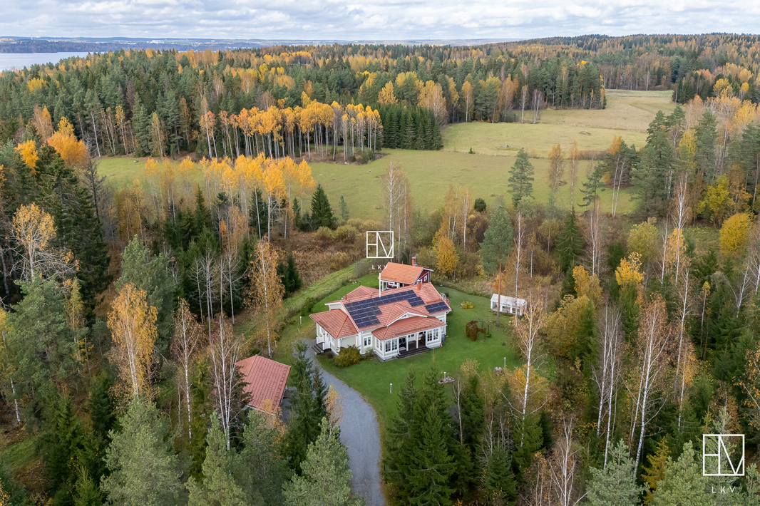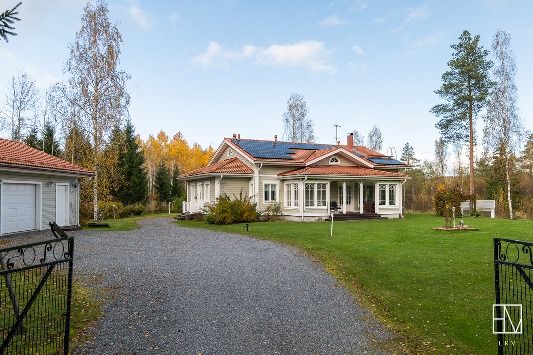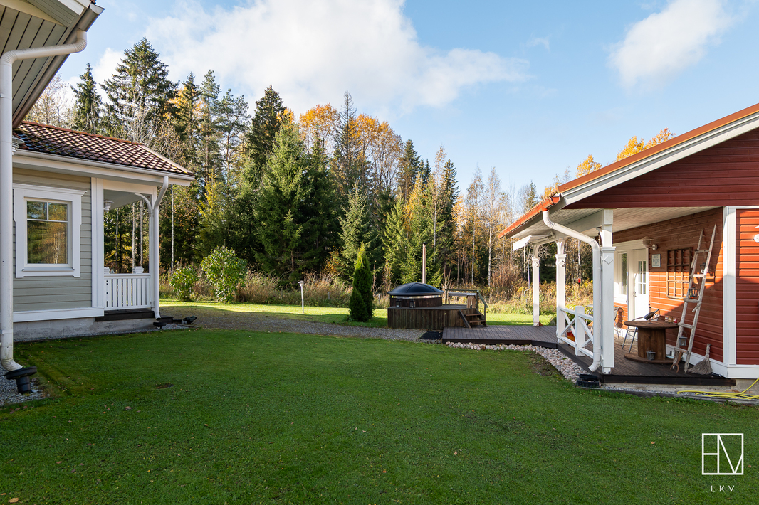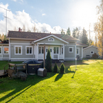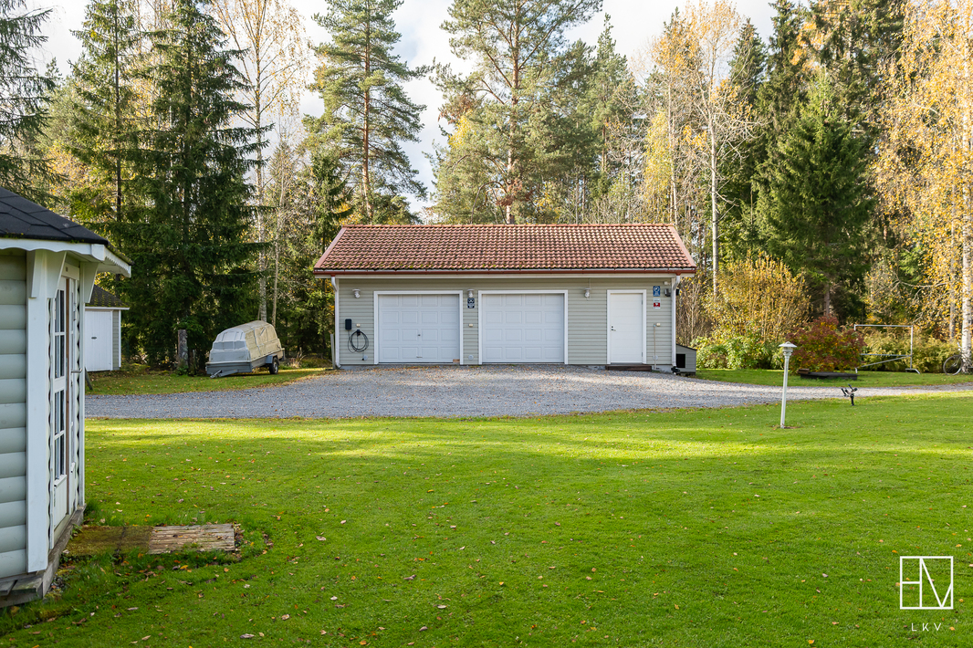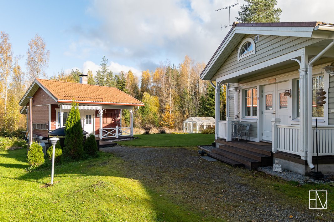 | Pinta-alojen lisätiedot | Pinta-aloja ei ole tarkistusmitattu. Pinta-ala voi siis olla edellä mainittua pienempi tai suurempi. HInta ei ole pinta-alaperusteinen vaan perustuu kokonaisuuteen. Leimattujen lupakuvien mukaan neliöt ovat seuraavat: Päärakennuksen kerrosala 191 m2, huoneistola 169 m2. Autotallirakennuksen kerrosala 70 m2 (talli 46,2 m2 ja varasto 16,3 m2), saunarakennuksen kerrosala 41 m2 (tupa 16,8 m2, pesuhuone 5,0 m2 ja sauna 4,6 m2). Lisäksi saunarakennuksessa puuvarasto 8,2 m2. Muita tiloja ovat autotallirakennus, saunarakennus sekä puuvarasto. Muiden tilojen pinta-alat ovat ilmoitettu kerrosaloina eli huoneistoala on hieman mainittua pienempi. |