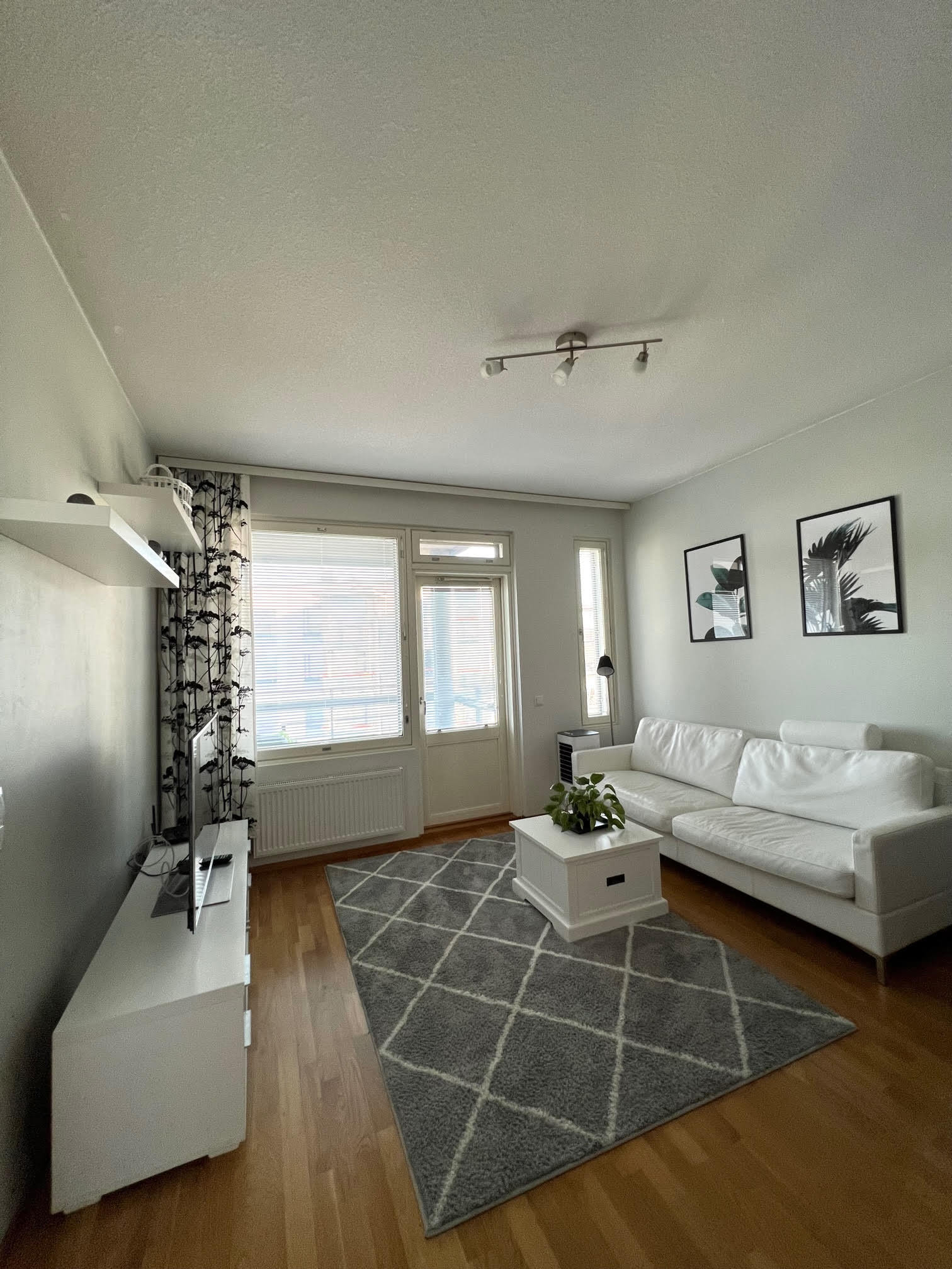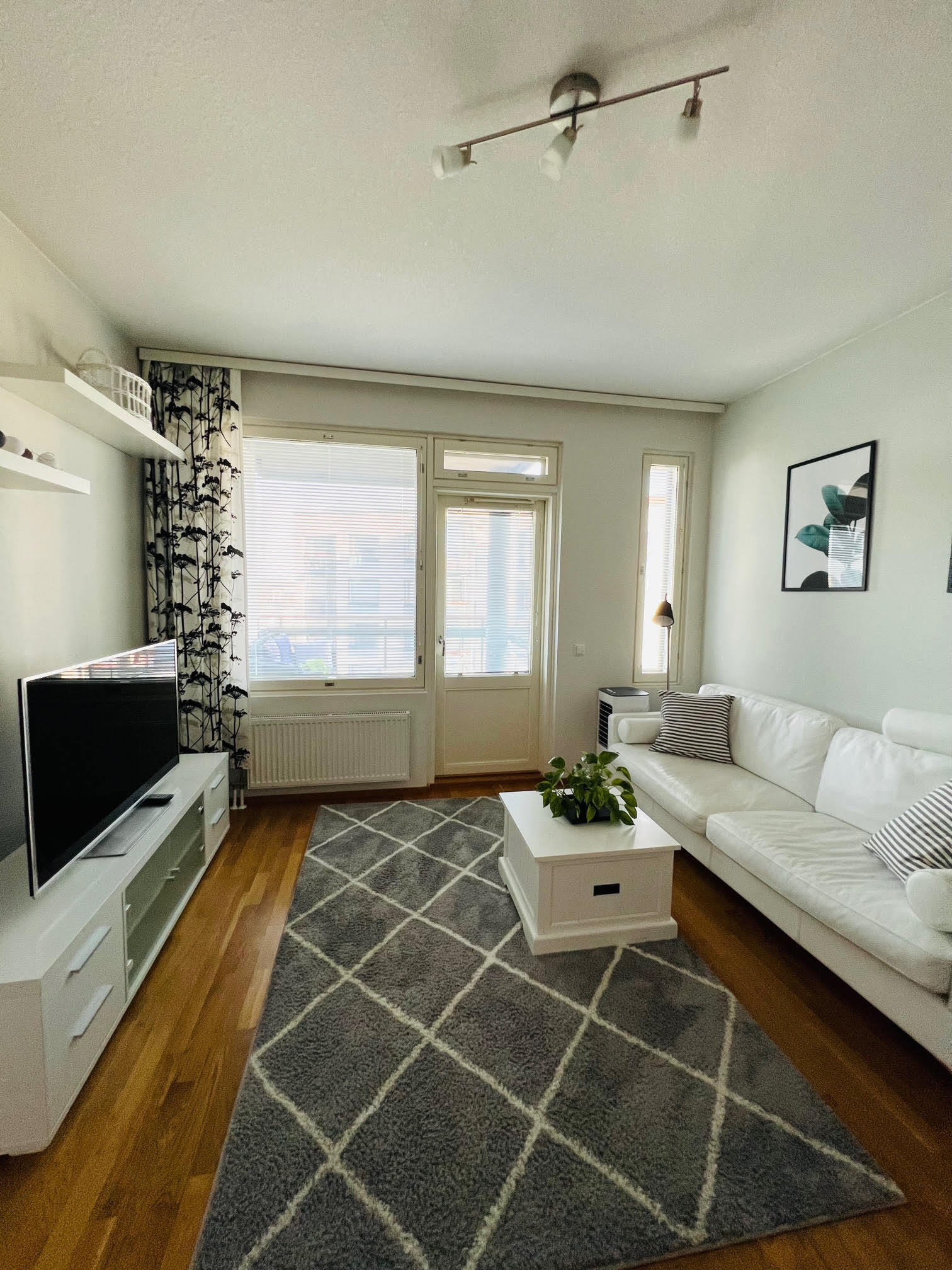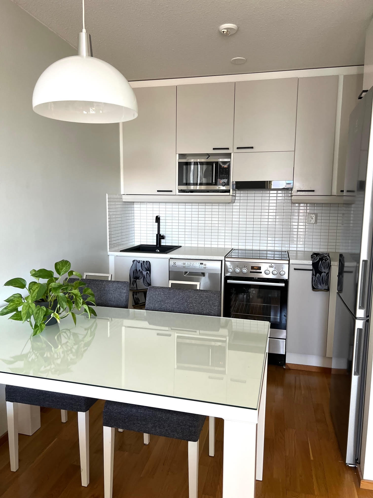 Kompakti kokonaisuus jossa nykyaikainen keittiö yhdistyy valoisaan olohuoneeseen josta käynti lasitetulle parvekkeelle. Kylpyhuone on siisti kokonaisuus jonne mahtuu myös pesukone.